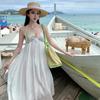 Falda Larga con Tirantes y Encaje Bie para Empalmar, Falda para la Playa, Verano para Mujer, Sin Mangas, Holgada, Falda Larga, Vestido Estilo Vacacional