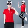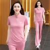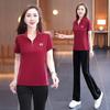 Traje Deportivo Casual para Mujer Verano 2025 Nuevo Seda de Hielo Delgada Manga Corta Talla Grande Correr Mamá Verano Conjunto de Dos Piezas
