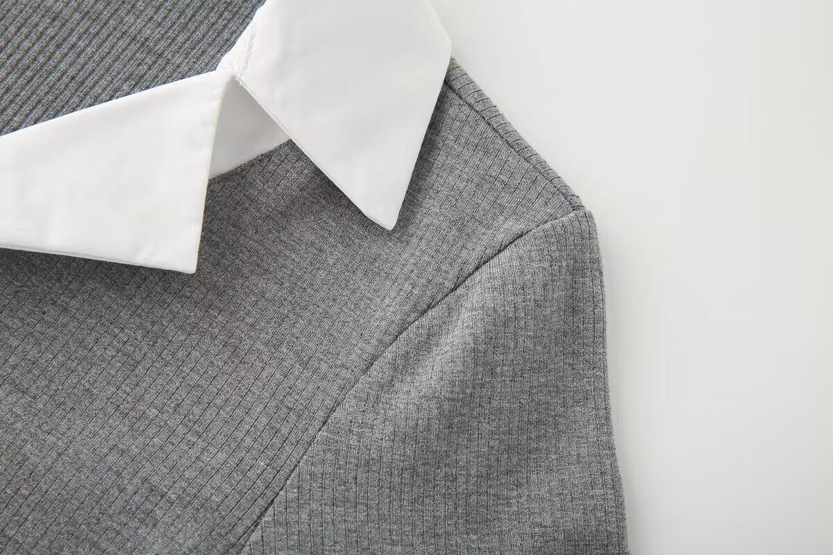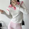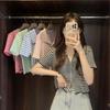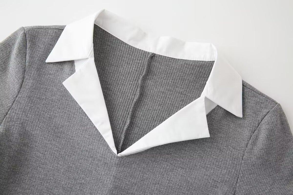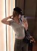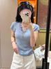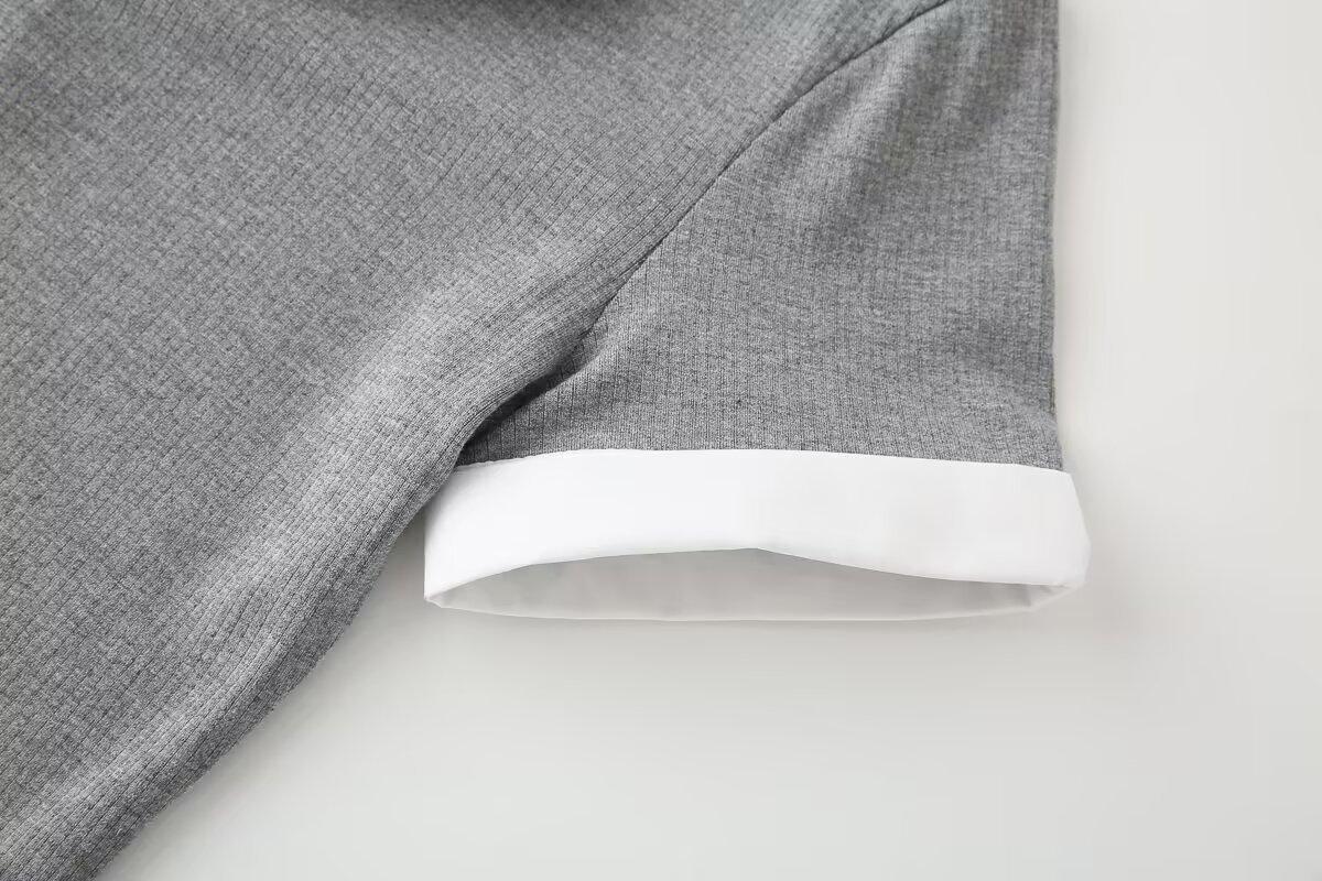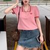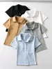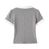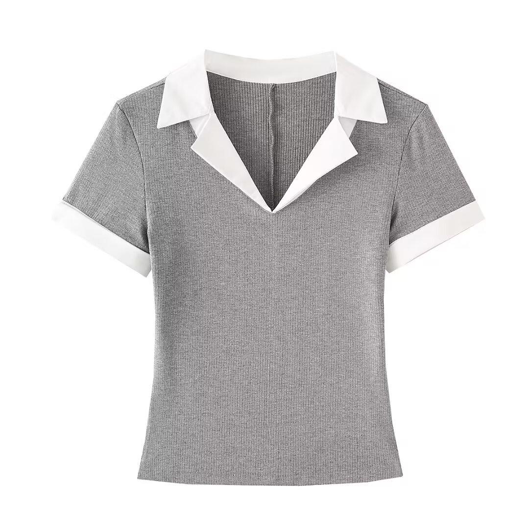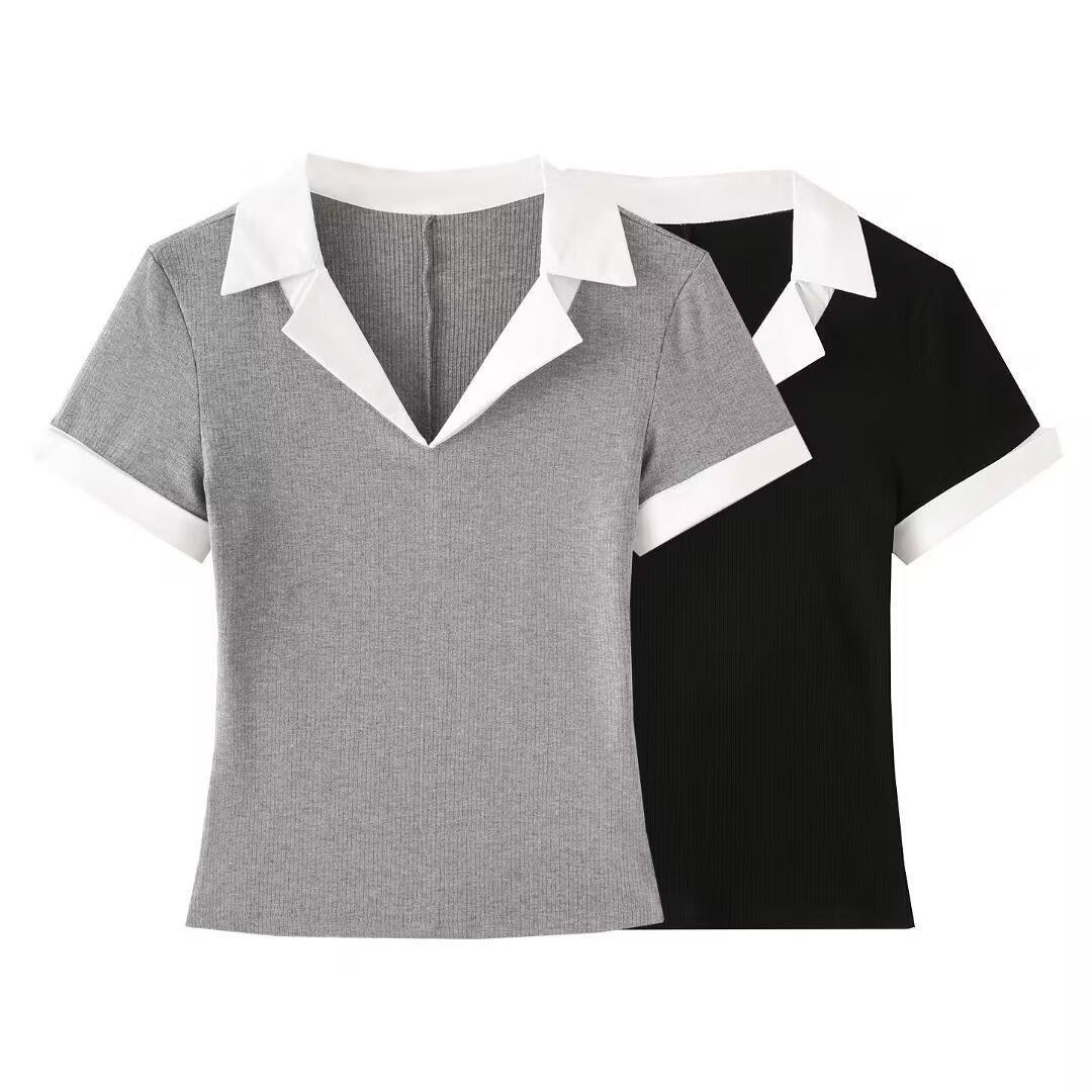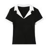 Playera de Manga Corta con Solapa de Color en Contraste Slim Elástica para Mujer Verano 2025 Versátil Reductor de Edad Camiseta Base Top