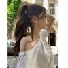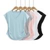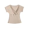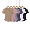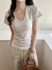 Camiseta Sexy de Chica Caliente con Cuello en V Profundo y Manga Corta para Mujer 2025 Nueva Moda Versátil Suelta Color Puro Top Básico al Por Mayor
