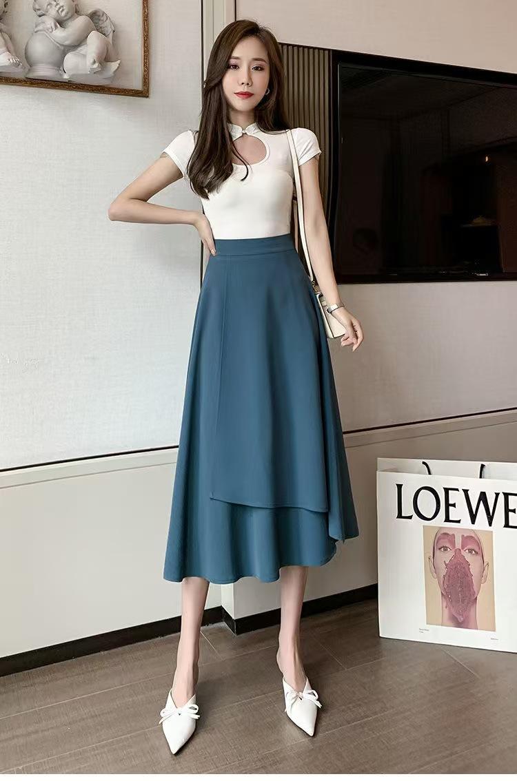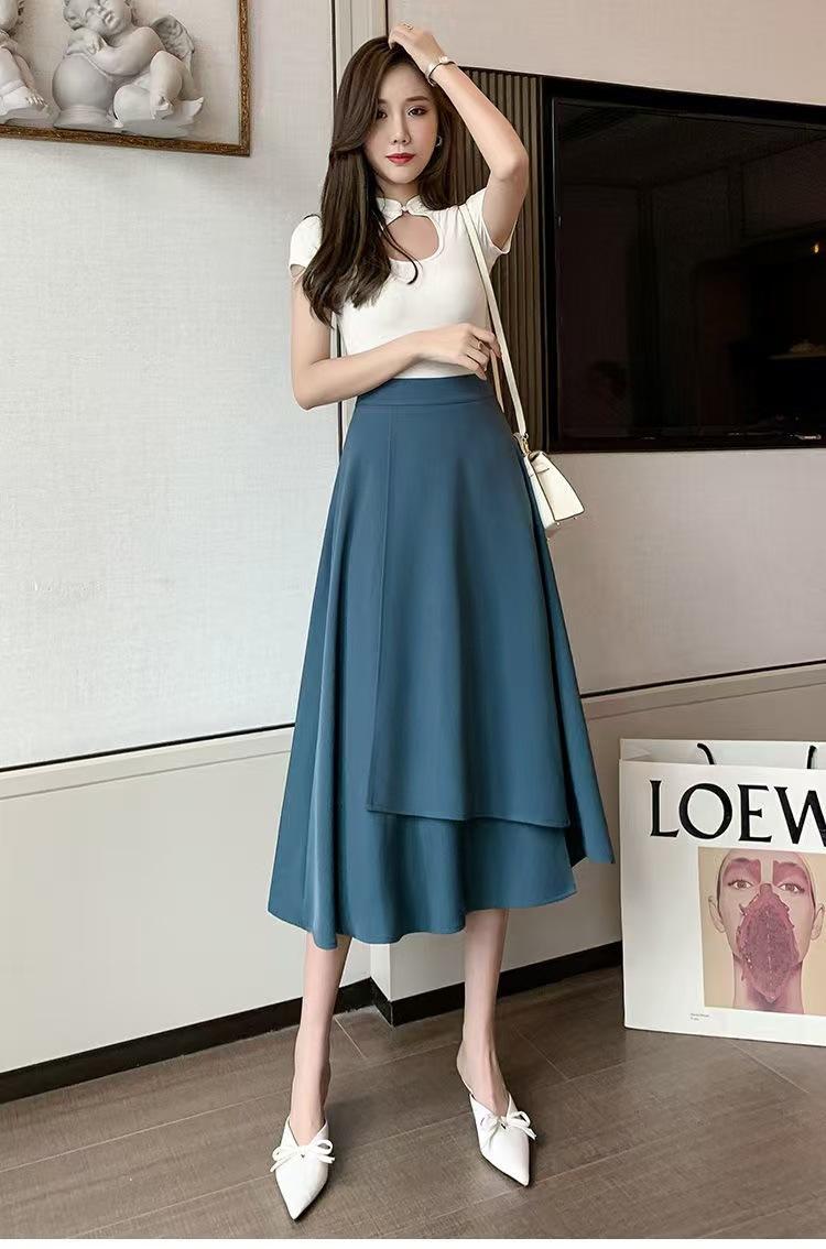 Falda Asimétrica Línea A de Largo Medio Estilo Nuevo Primavera Verano 2025, Silueta Adelgazante y Cubre-Carnes, Falda Elegante Versátil para Mujer