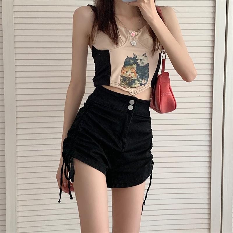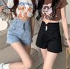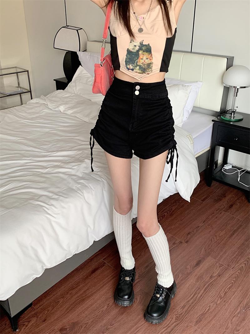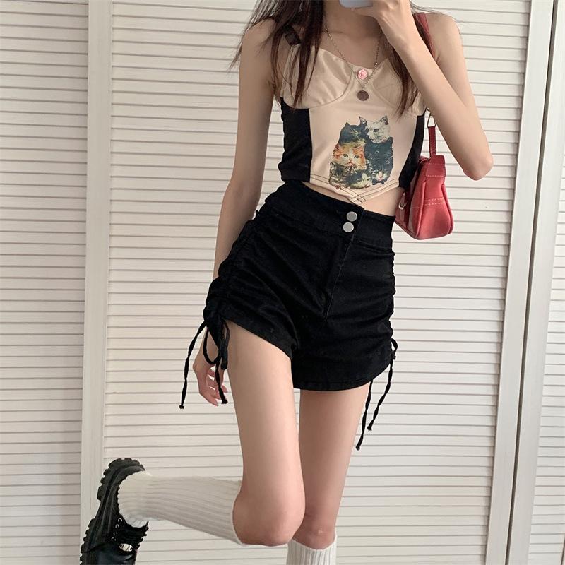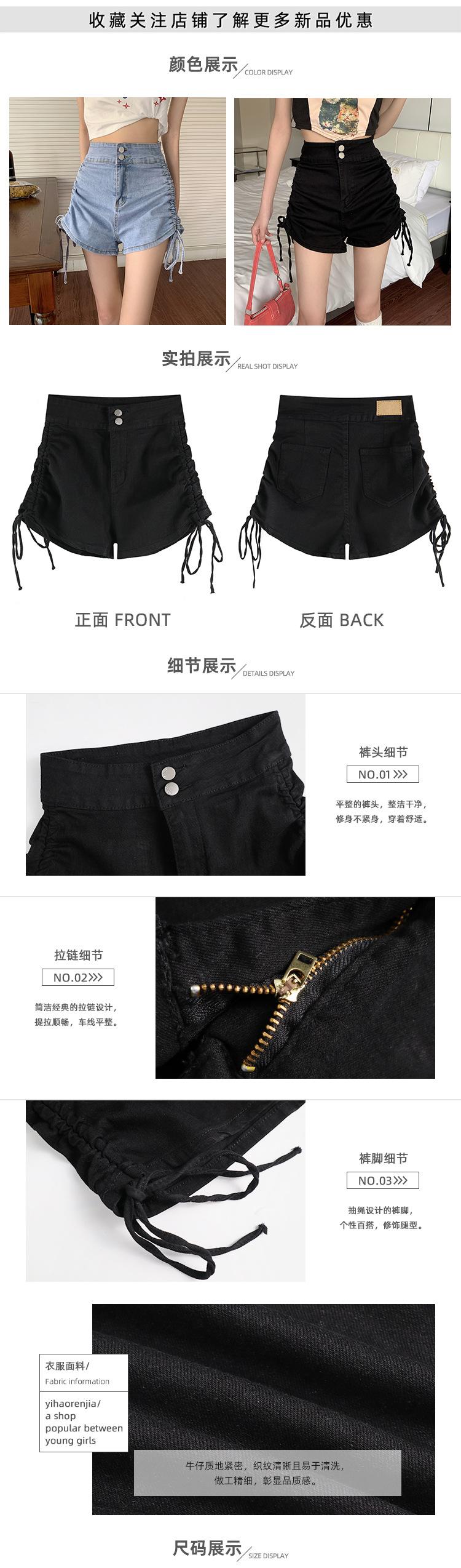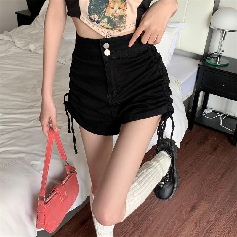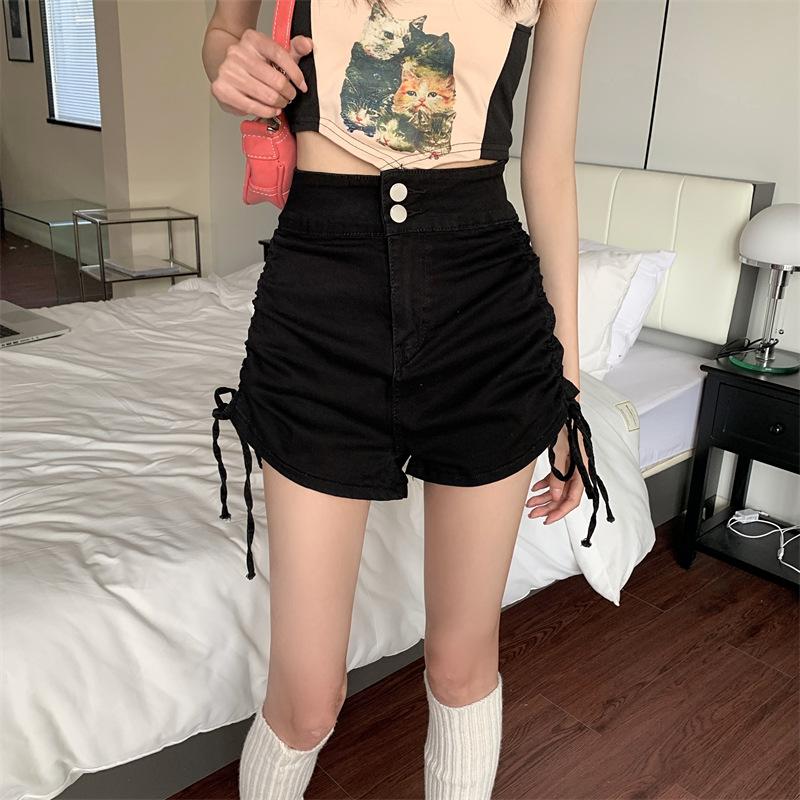 Shorts de Mezclilla Negros con Cordón para Mujer Verano 2024 Nuevos Cintura Alta Slim Moda Pantalones Cortos Hot Estilo Sexy Shorts Ins