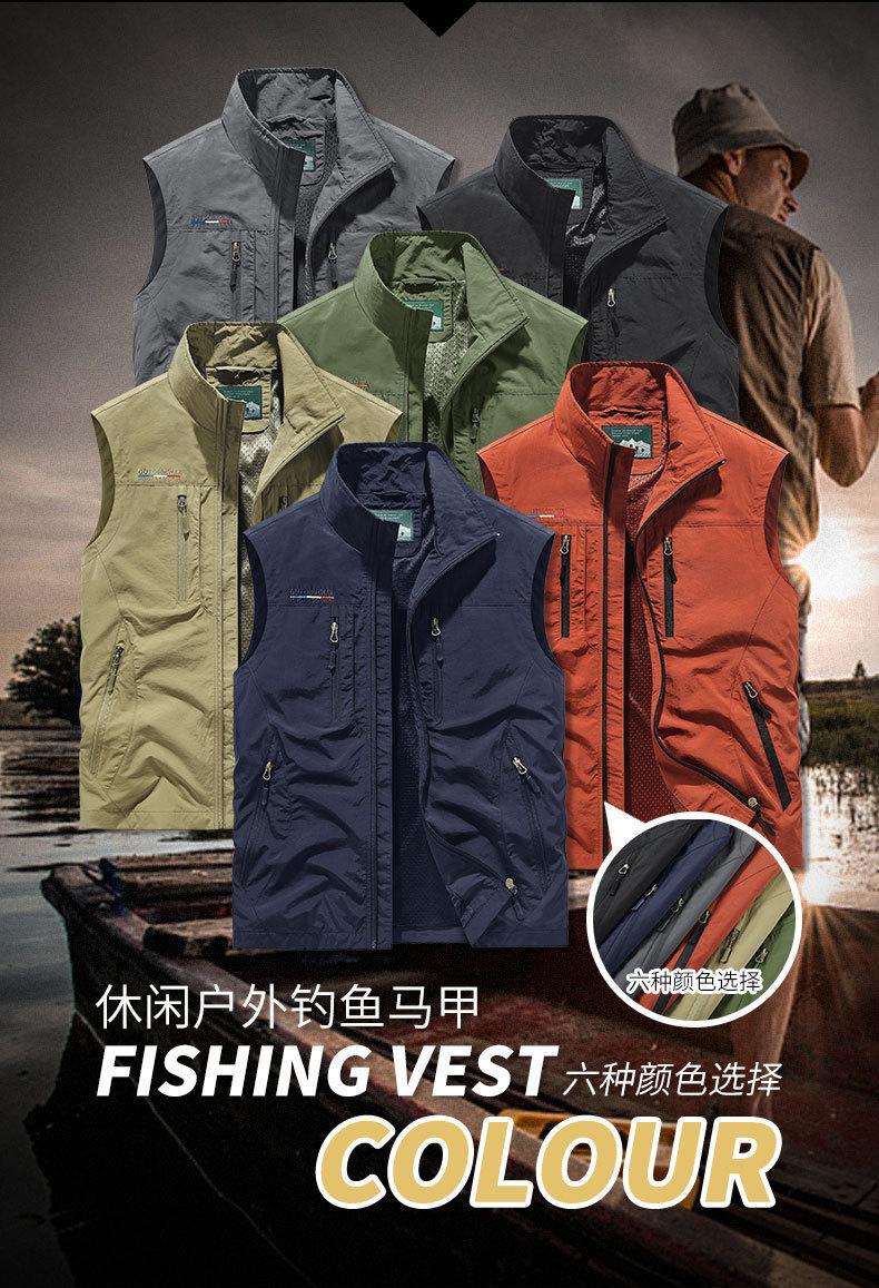 Chaleco taslon para hombre de fotografía de secado rápido con múltiples bolsillos para pesca al aire libre primavera/otoño verano tejido transpirable 3908