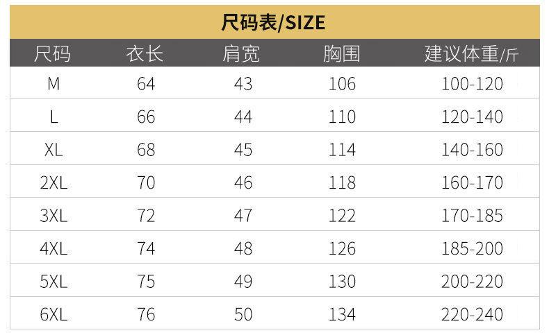 M, L, XL, 2XL, 3XL, 4XL, 5XL, 6XL