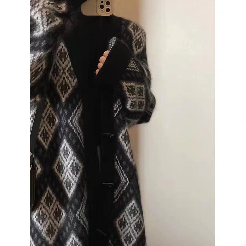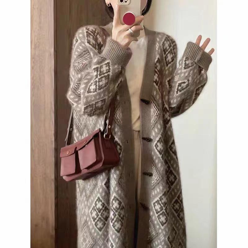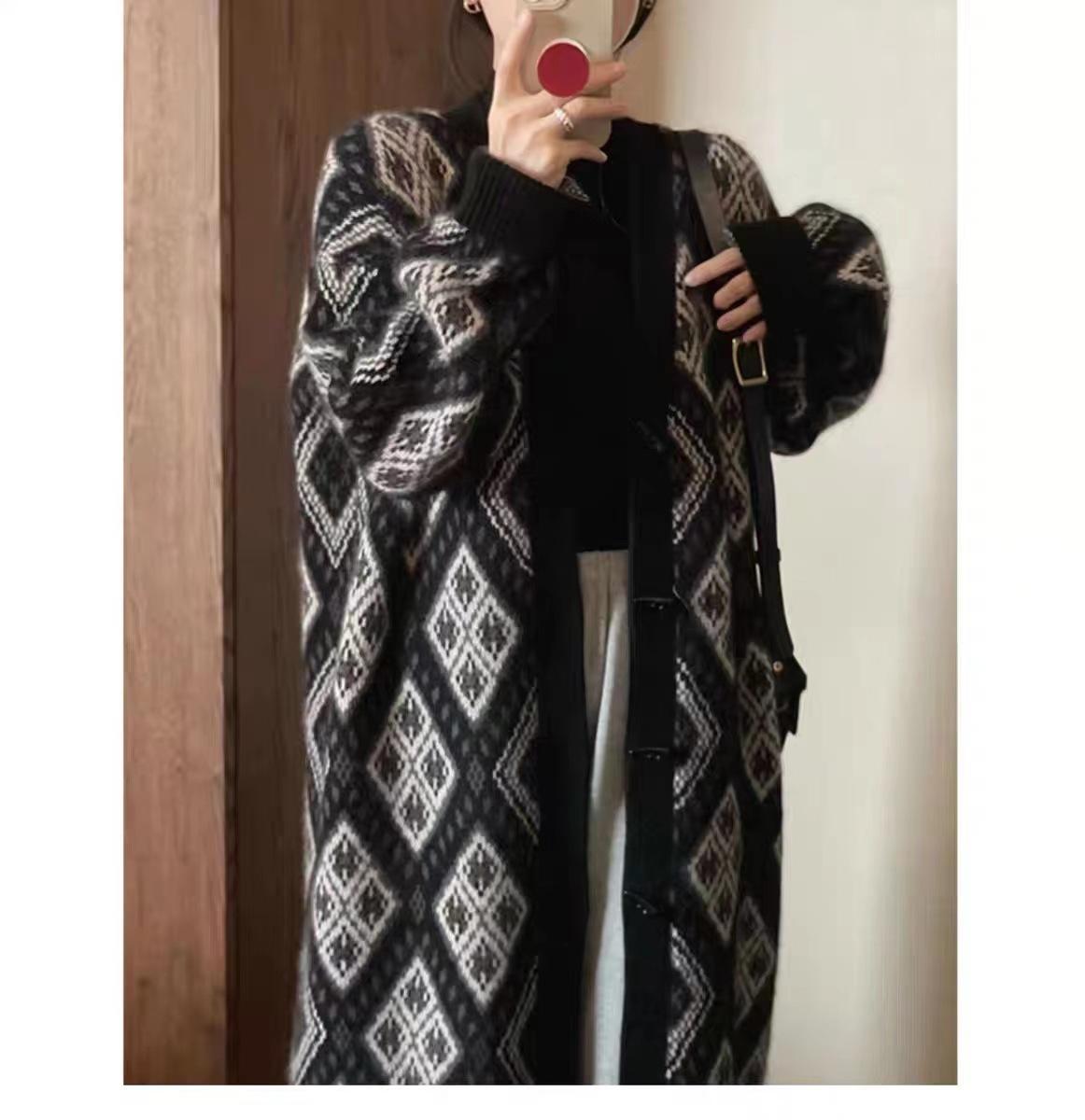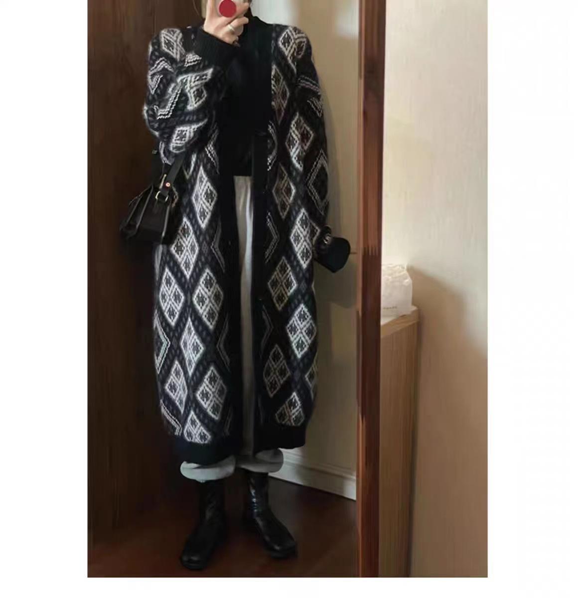 Suéter de punto para mujer 2023 otoño e invierno nueva moda jacquard largo medio grueso abrigo suéter coreano top de mujer