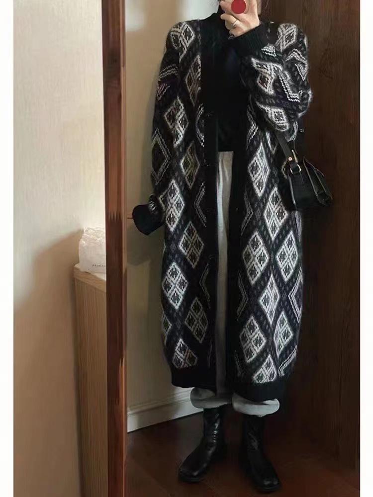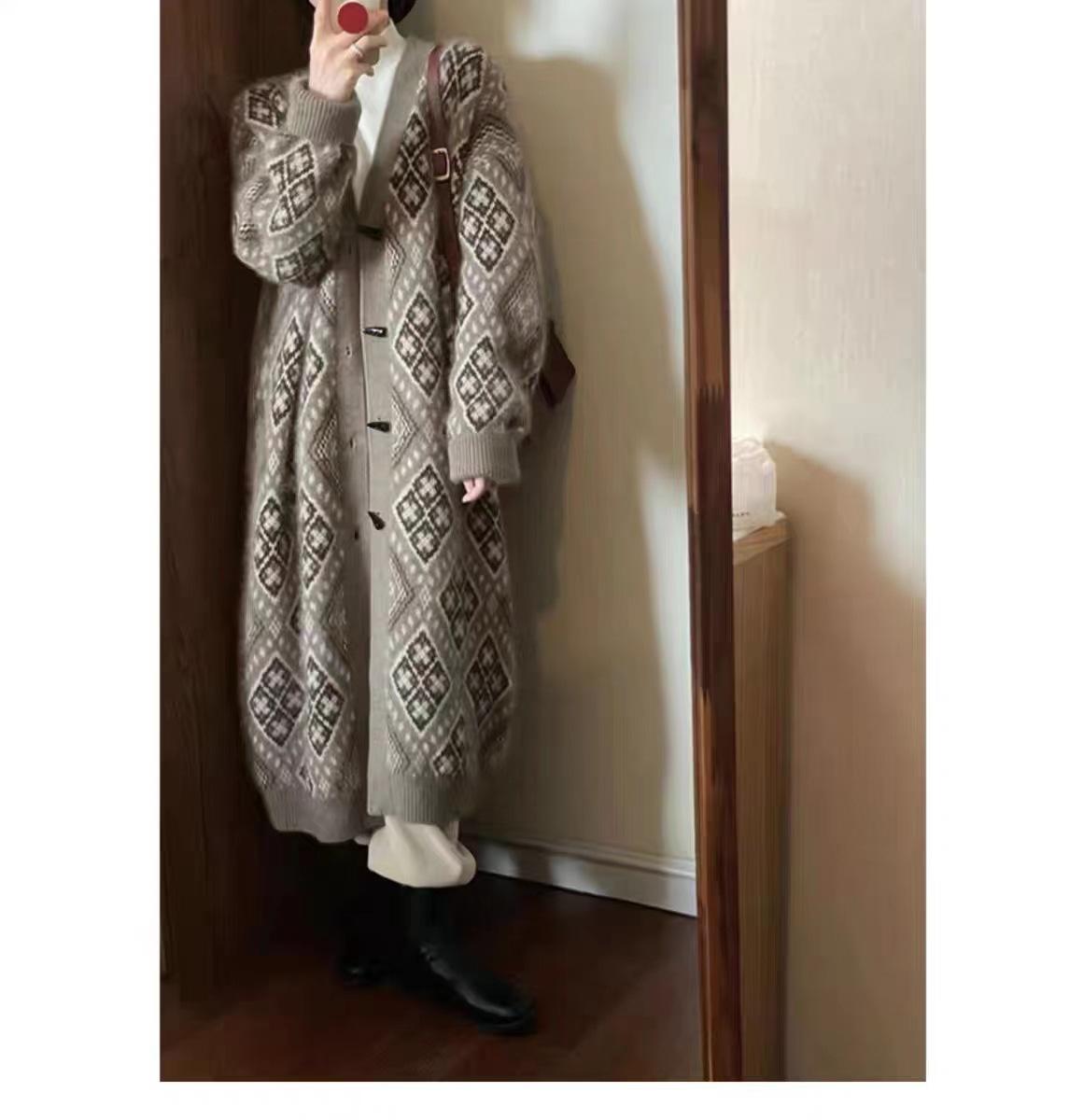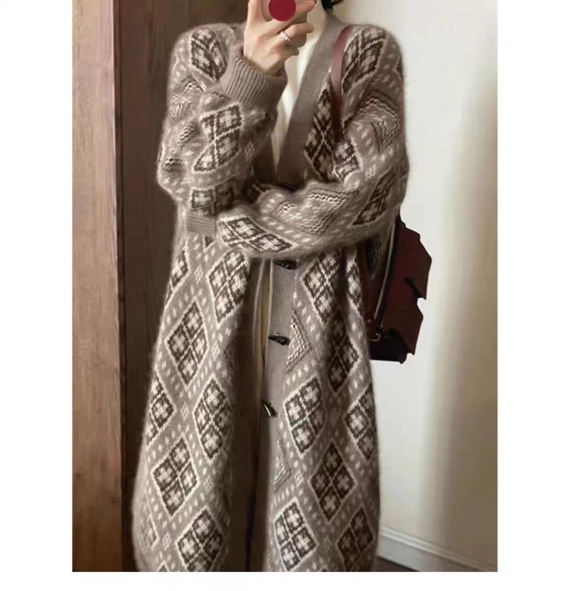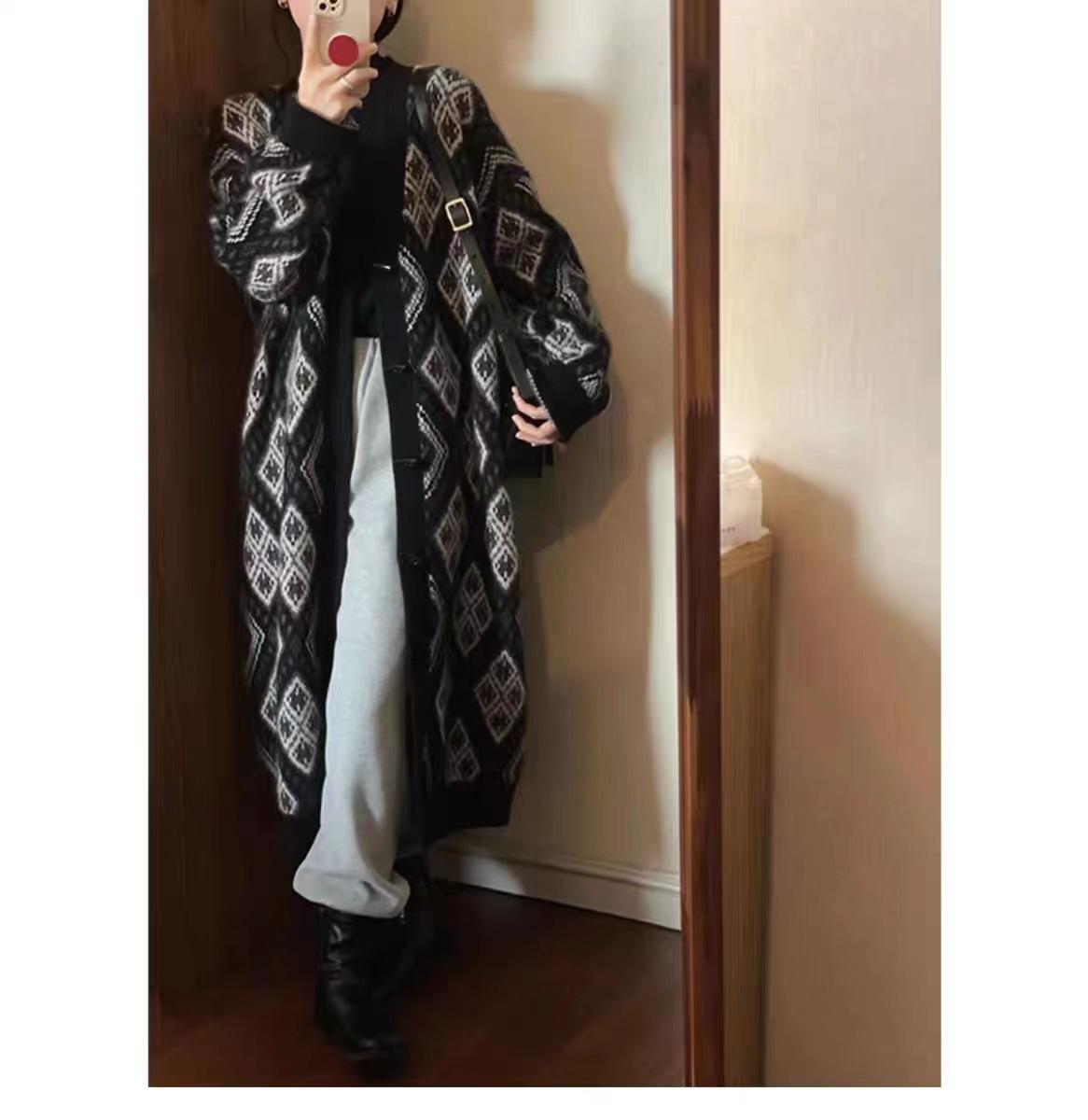 Suéter de punto para mujer 2023 otoño e invierno nueva moda jacquard largo medio grueso abrigo suéter coreano top de mujer