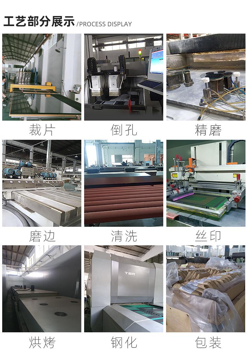 Tecnología: serigrafía de vidrio, perforación, rectificado de bordes especiales CNC, borde recto, borde redondo, biselado, etc.
