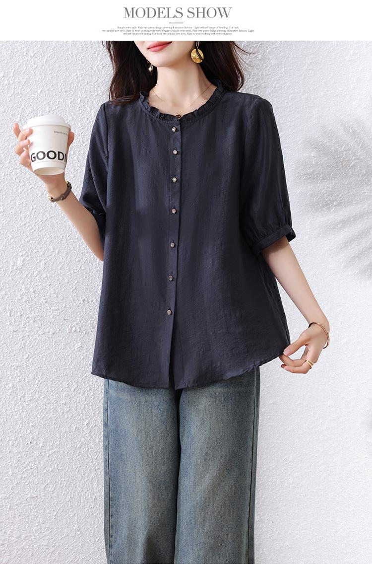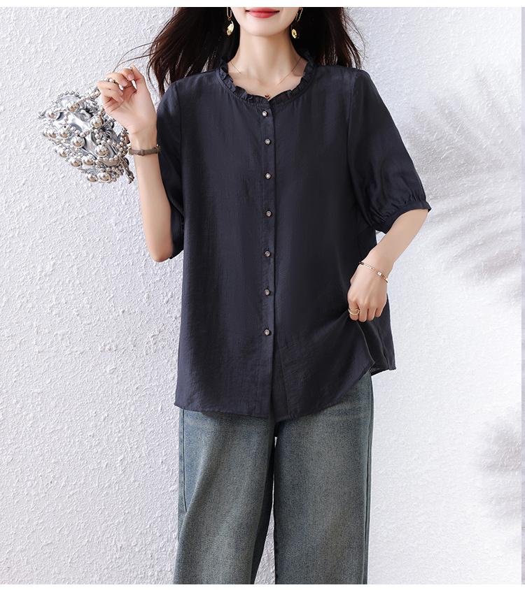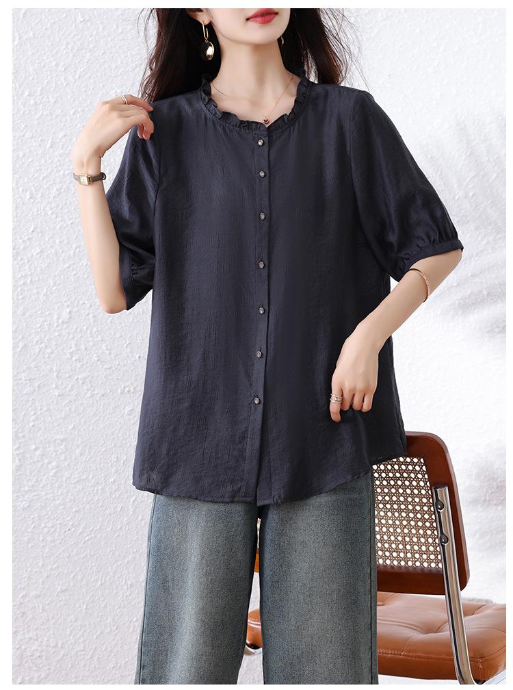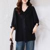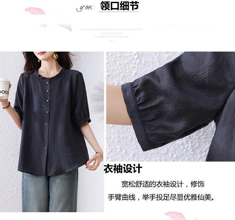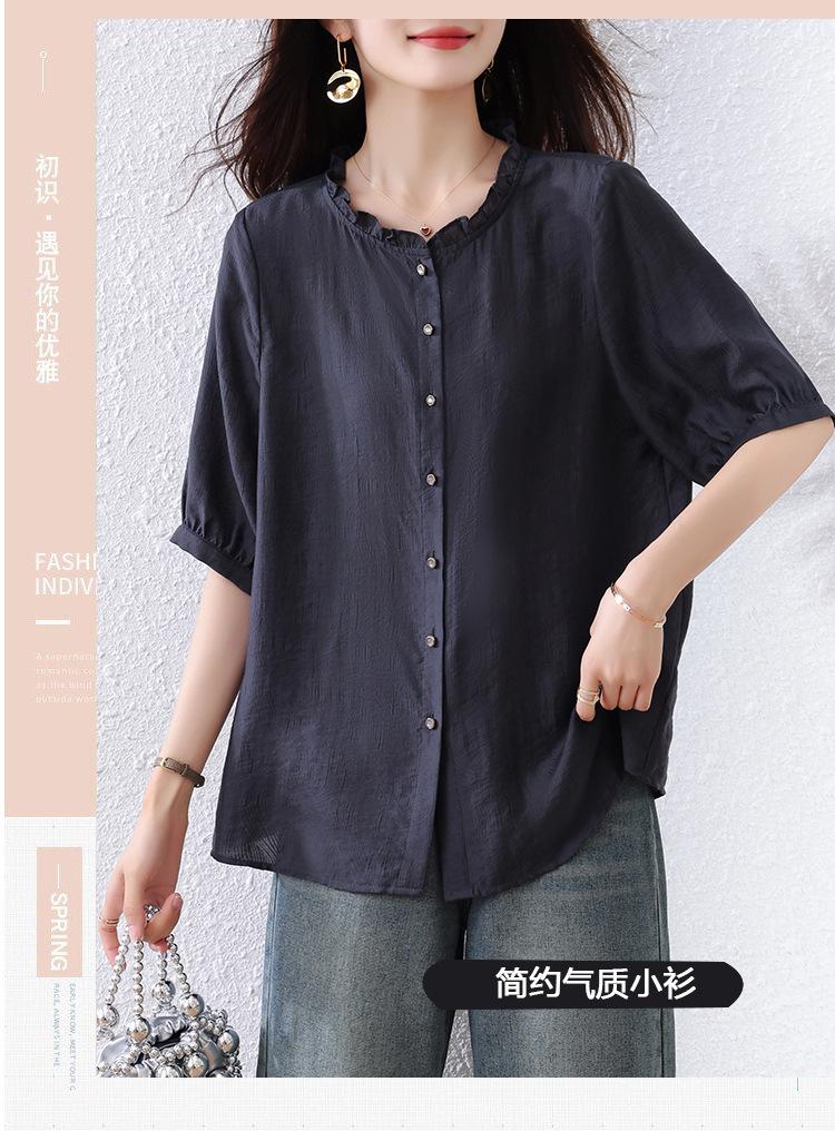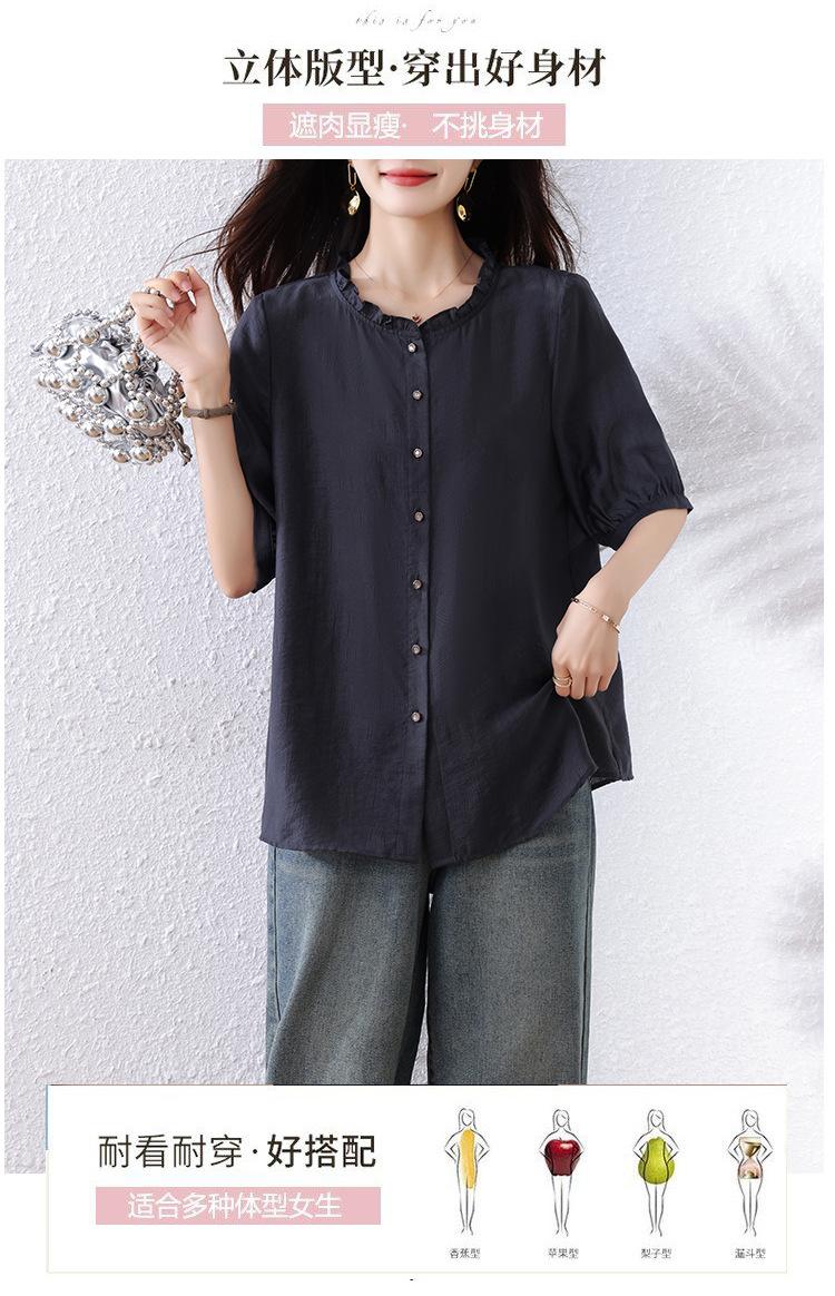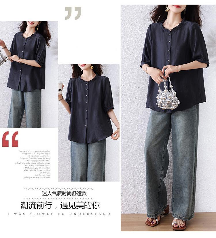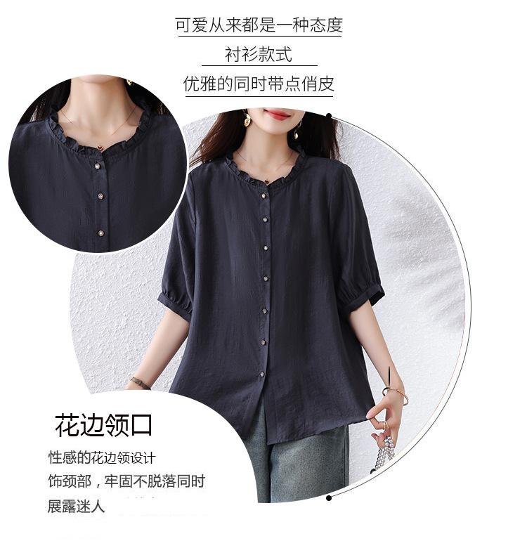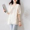Foto real de camisa de manga corta Verano 2025 Nueva ropa de mujer Talla grande mm Retro Elegante Top de mujer con cuello de encaje