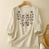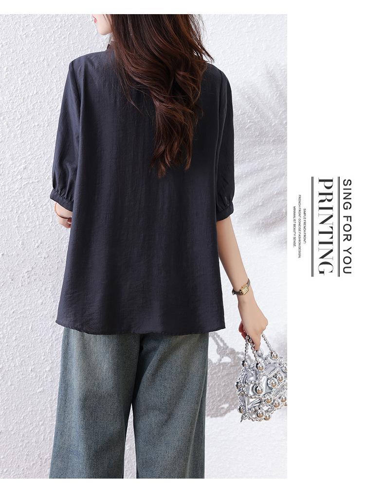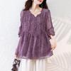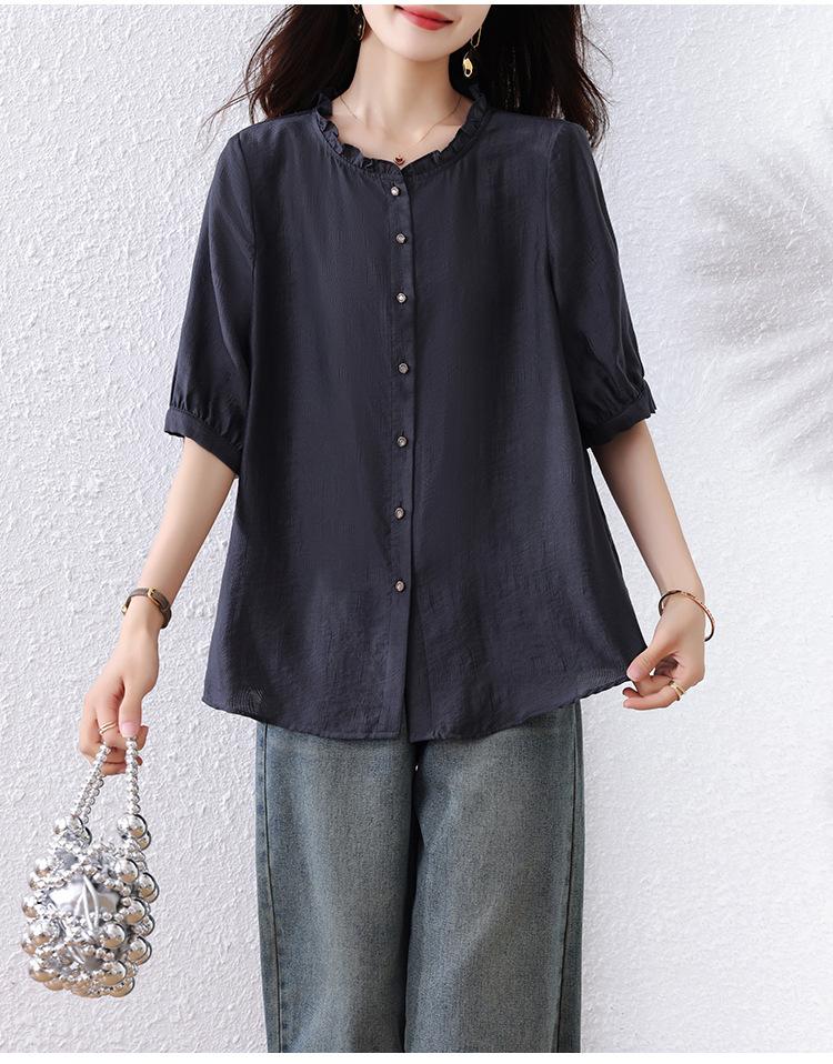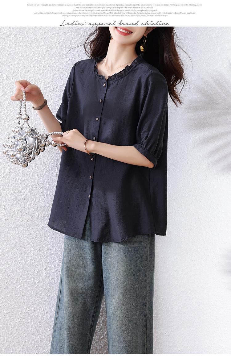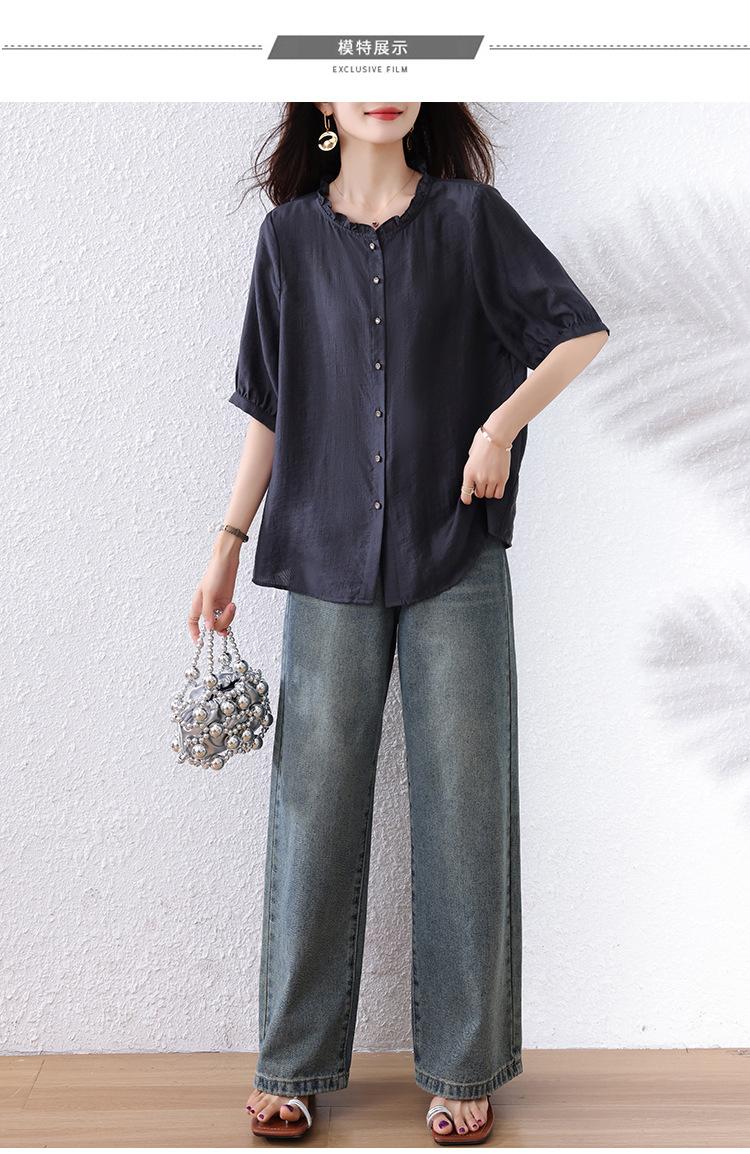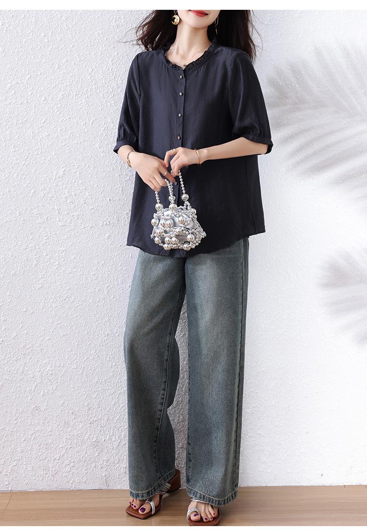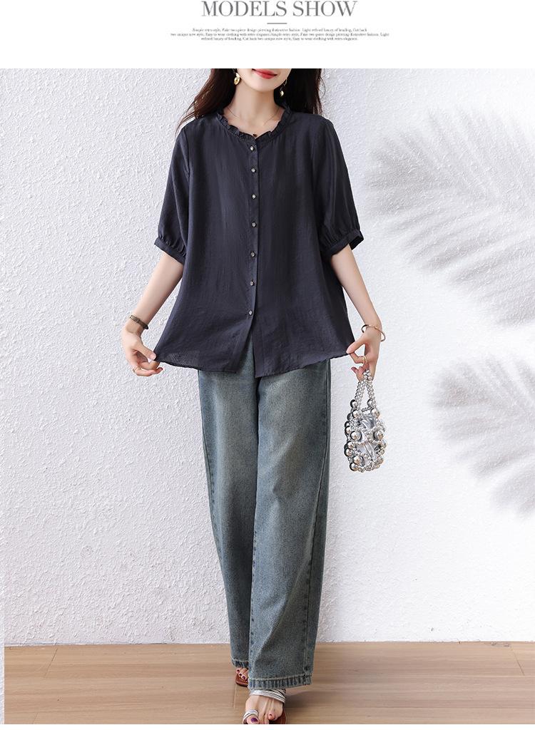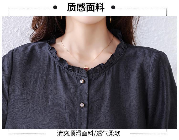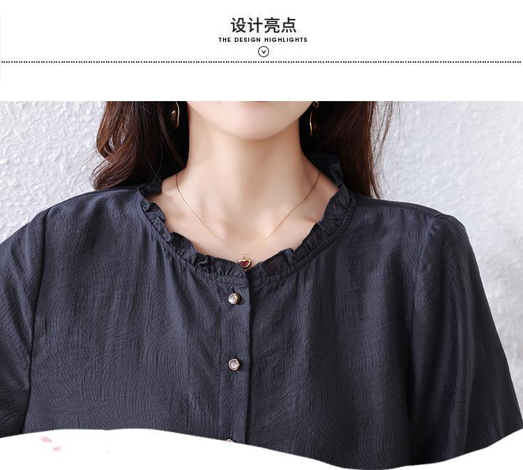 Foto real de camisa de manga corta Verano 2025 Nueva ropa de mujer Talla grande mm Retro Elegante Top de mujer con cuello de encaje