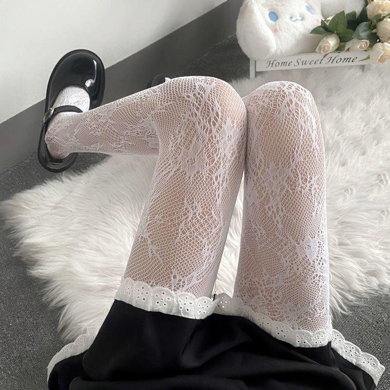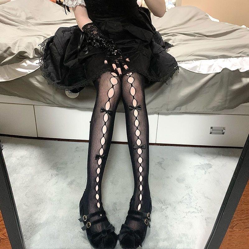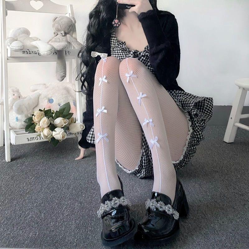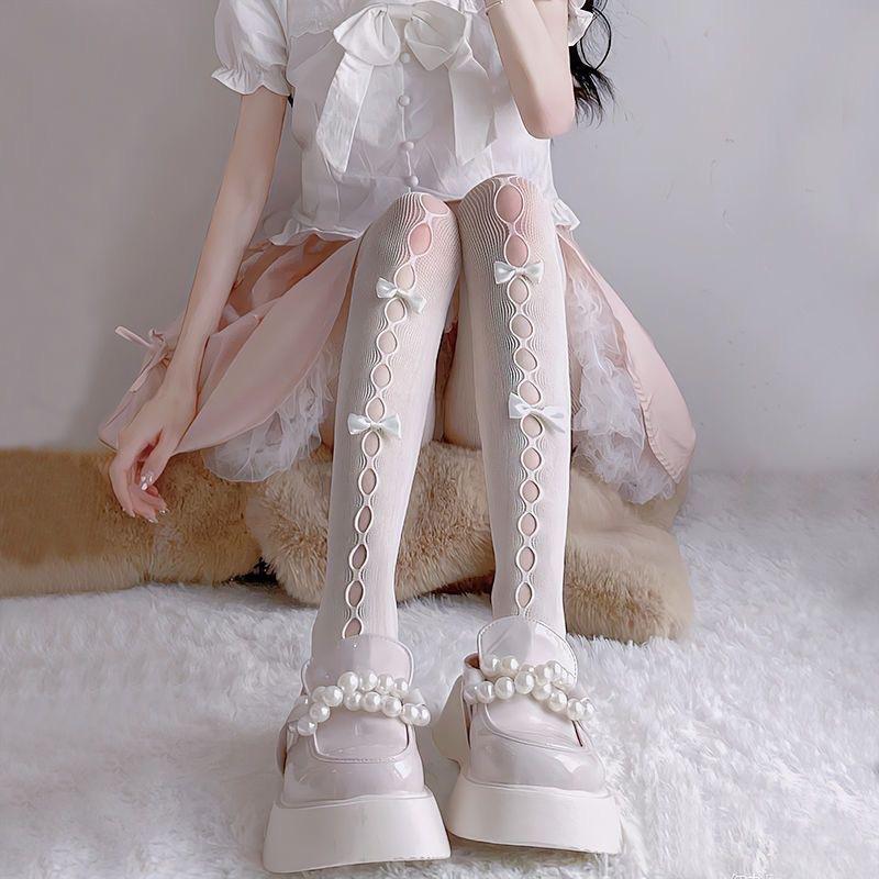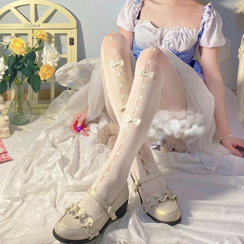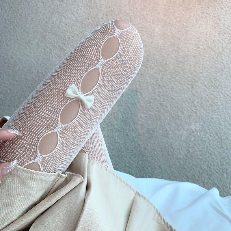 Calcetines de red huecos con lazo Lolita estrictamente seleccionados, pantalones de Lolita de encaje, calcetines blancos puros Jk para mujer, finos
