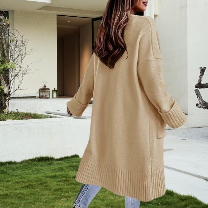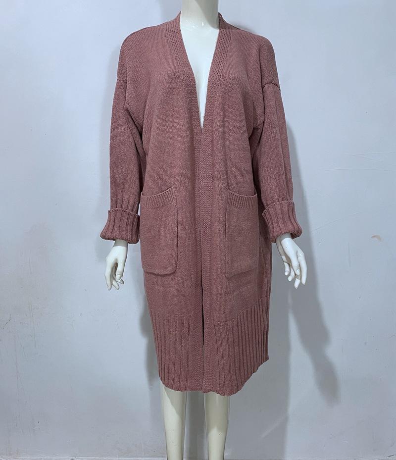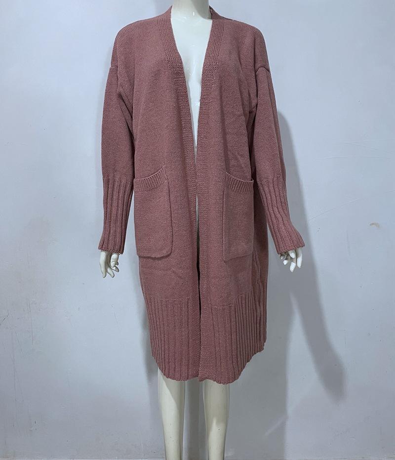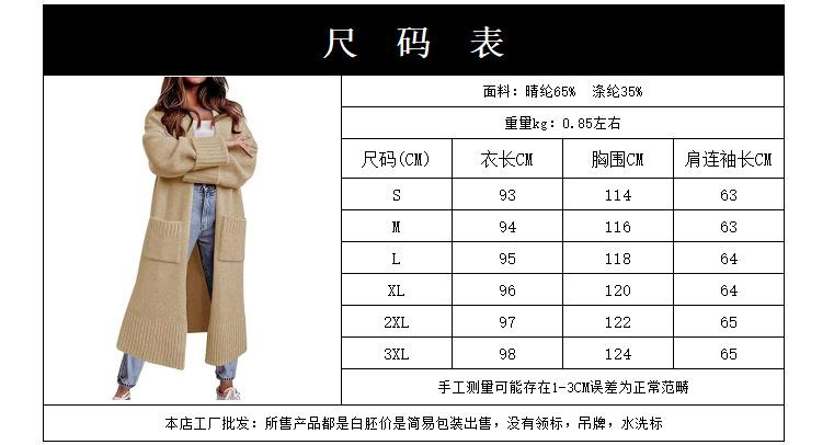 Amazon Suéter Largo de Punto para Mujer Otoño e Invierno Nuevo Comercio Exterior Transfronterizo Europeo y Americano Suelto con Bolsillo Cárdigan Suéter Abrigo