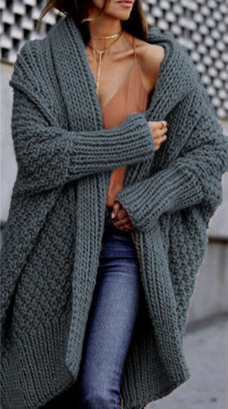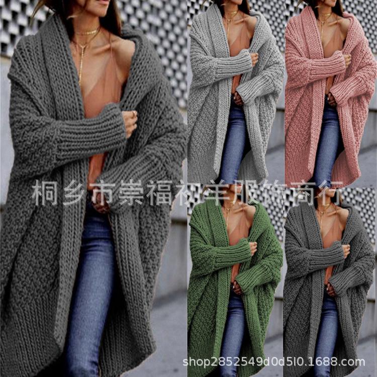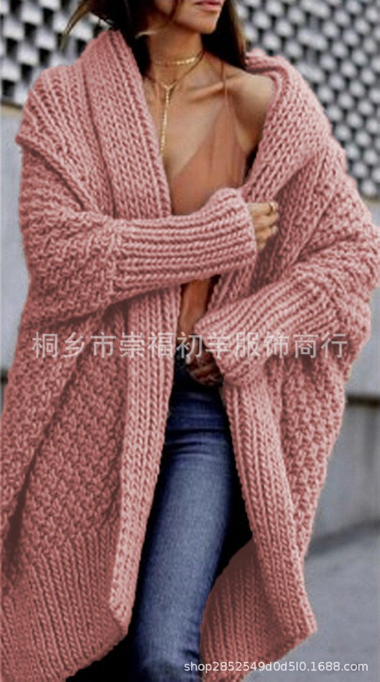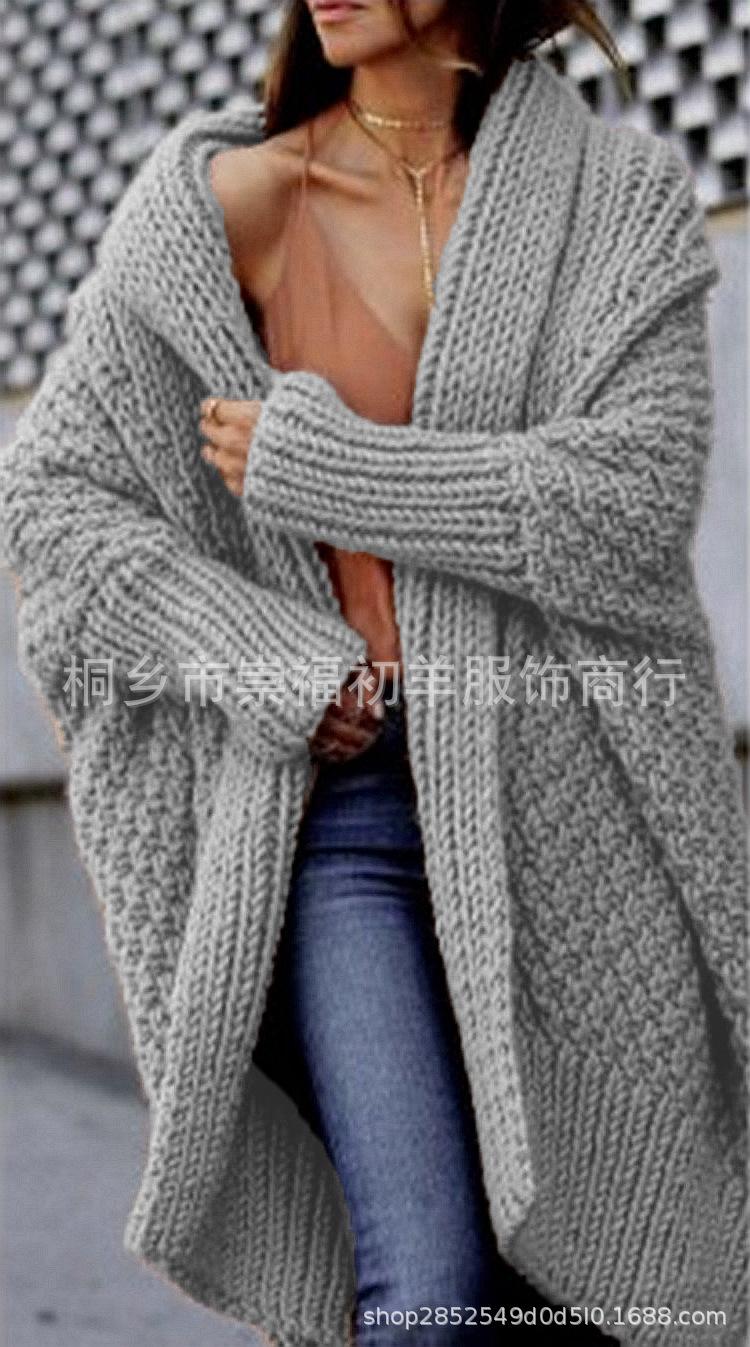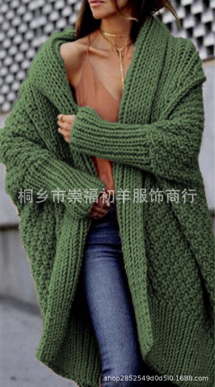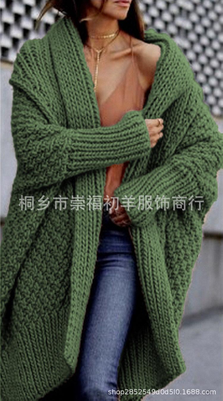 Cárdigan de Punto para Mujer de Otoño e Invierno Europeo y Americano de Comercio Exterior Cárdigan Nuevo Transfronterizo Suéter Grueso Amazon Abrigo Largo de Punto para Mujer