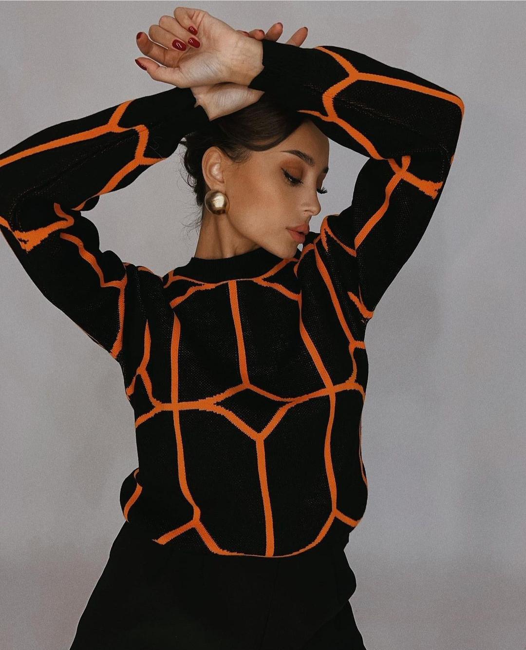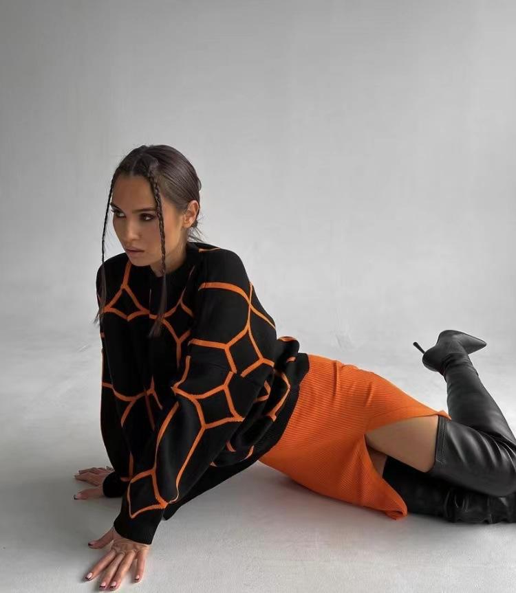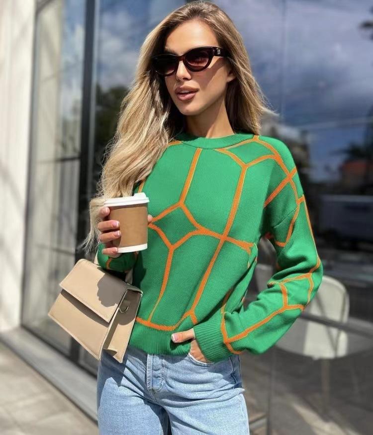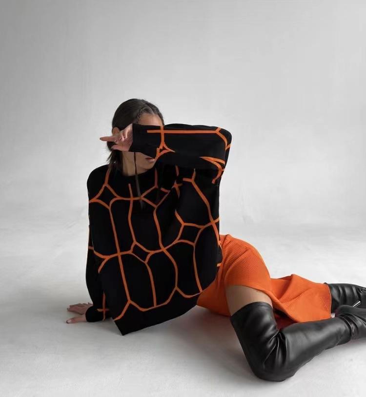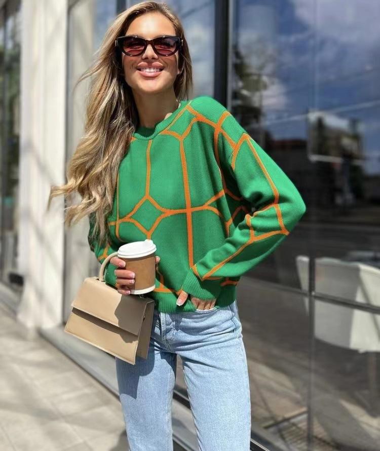Ropa de Mujer de Exportación Europea y Americana 2025 Jersey de Cuello Redondo Figura Geométrica Tejido Aliexpress Amazon Estación Independiente Suéter