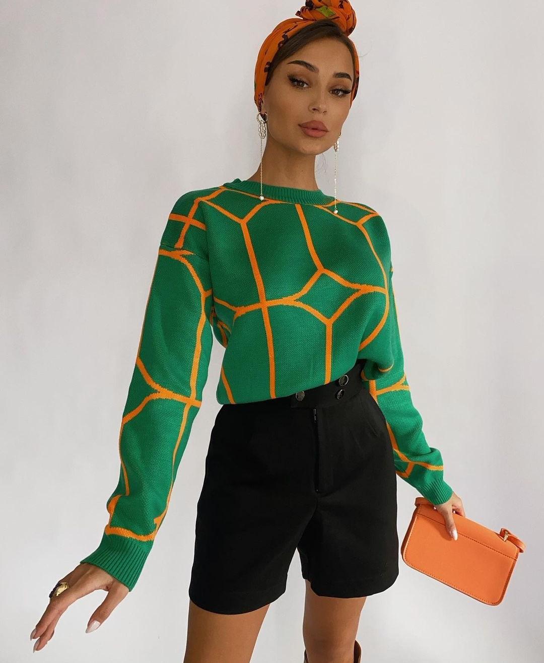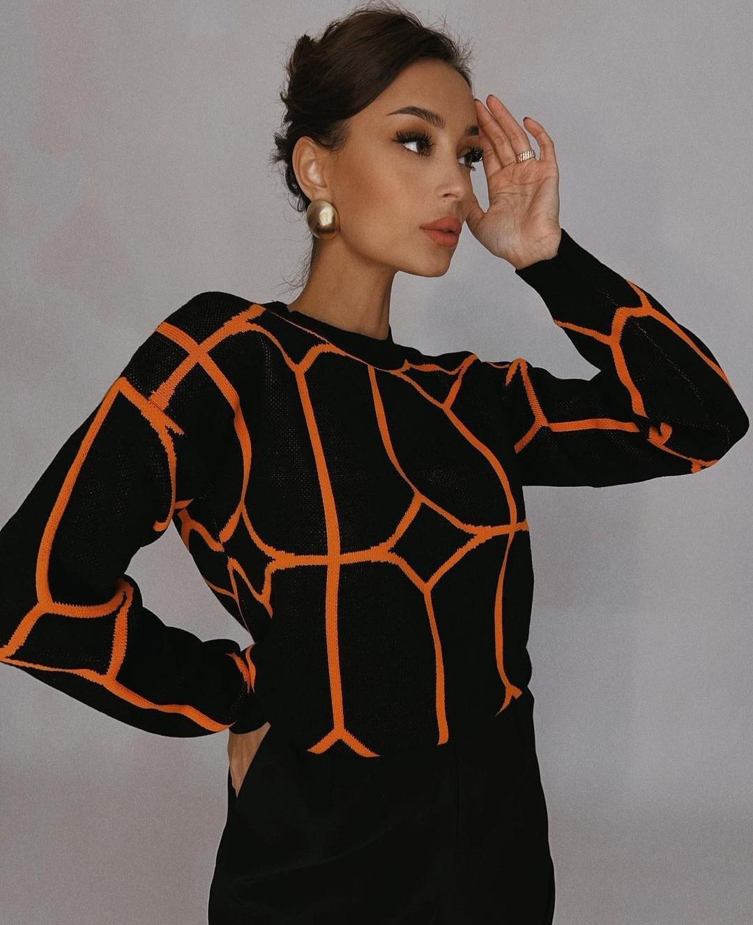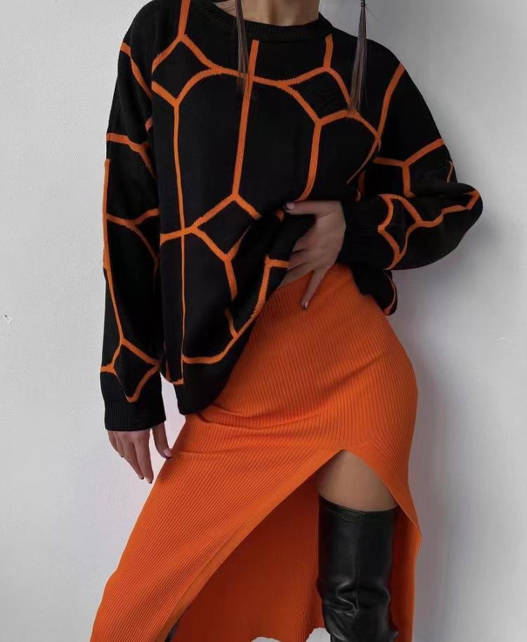 Ropa de Mujer de Exportación Europea y Americana 2025 Jersey de Cuello Redondo Figura Geométrica Tejido Aliexpress Amazon Estación Independiente Suéter