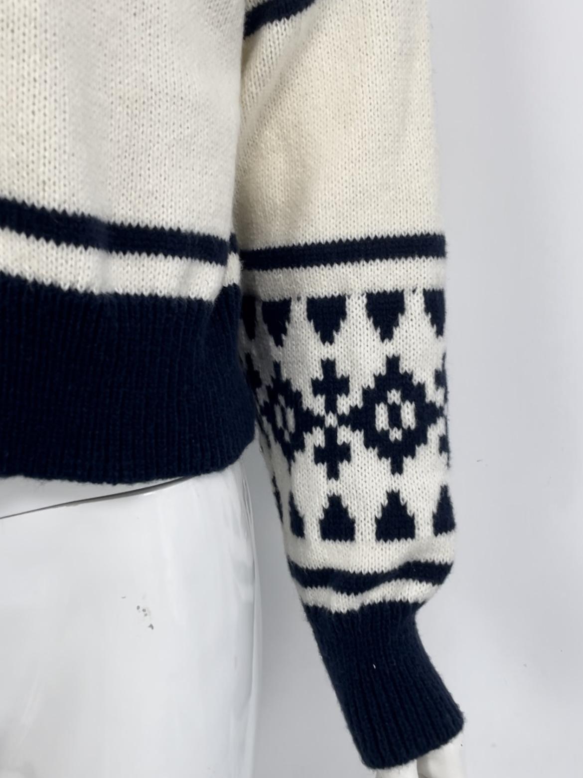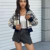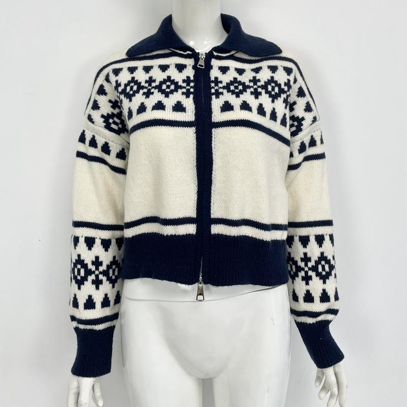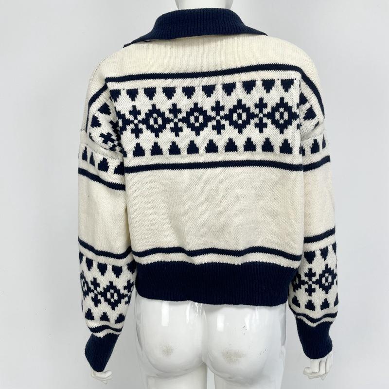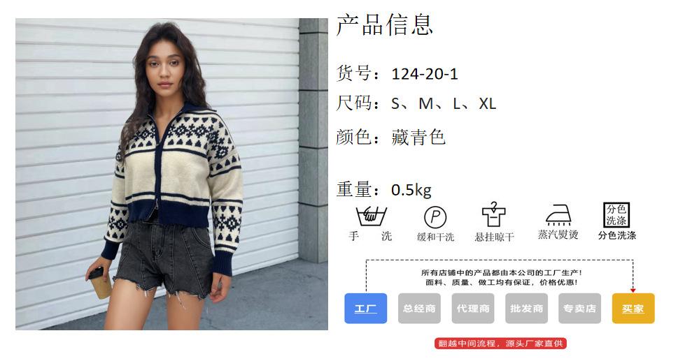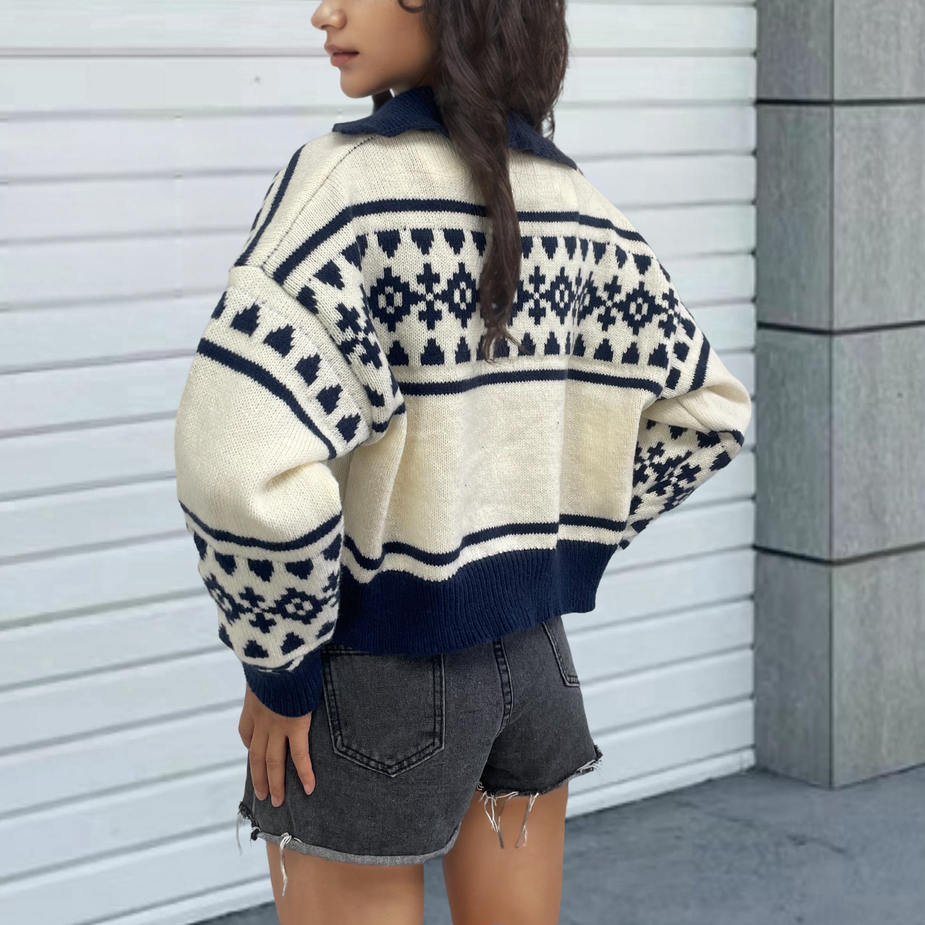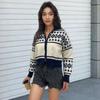 Cárdigan de punto con cremallera para comercio exterior transfronterizo de Amazon, chaqueta de suéter jacquard geométrico con color de solapa europeo y americano para mujer