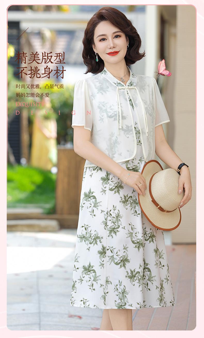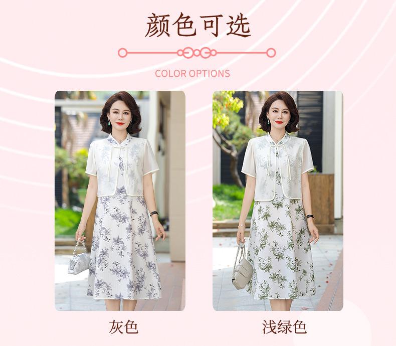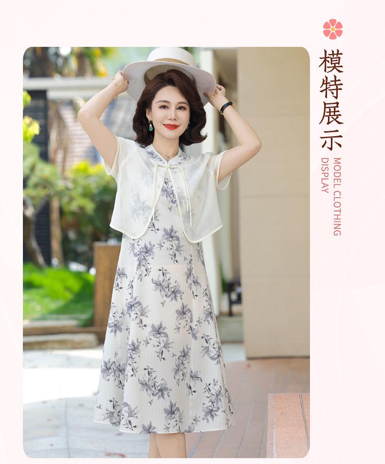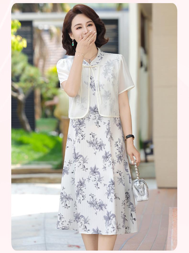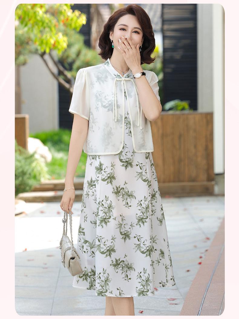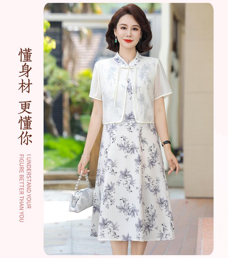 Vestido de Verano para Madre Nuevo Vestido de Estilo Chino Dama 2025 Nuevo Verano para Mujeres de Mediana Edad Estilo Occidental Falda Estilo Nacional