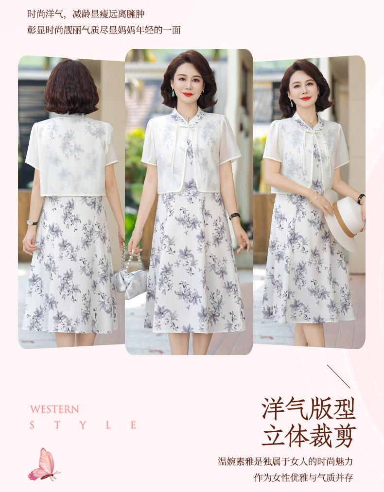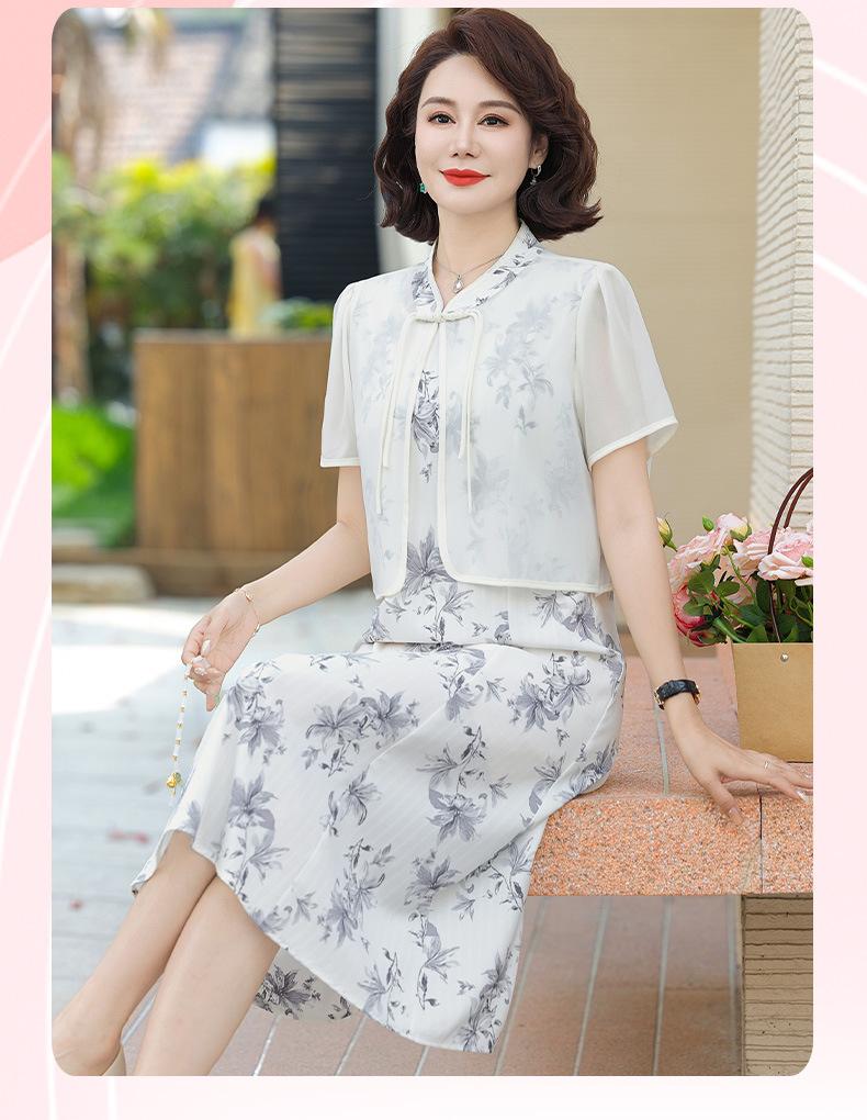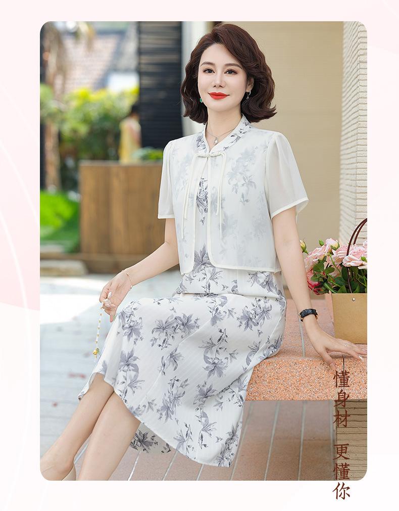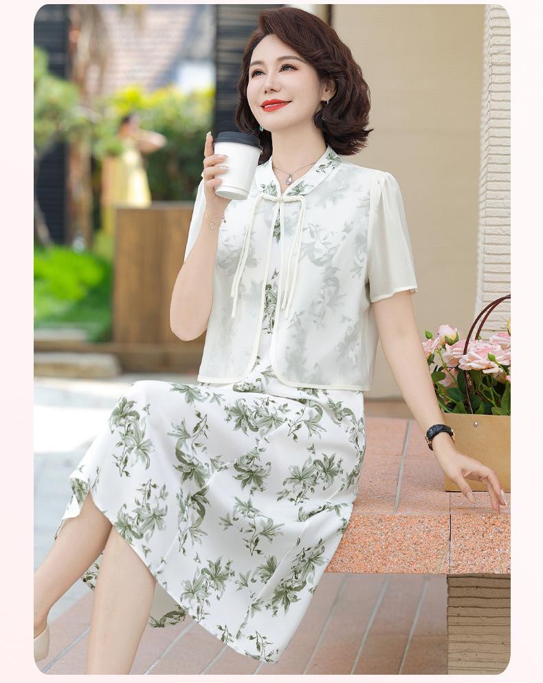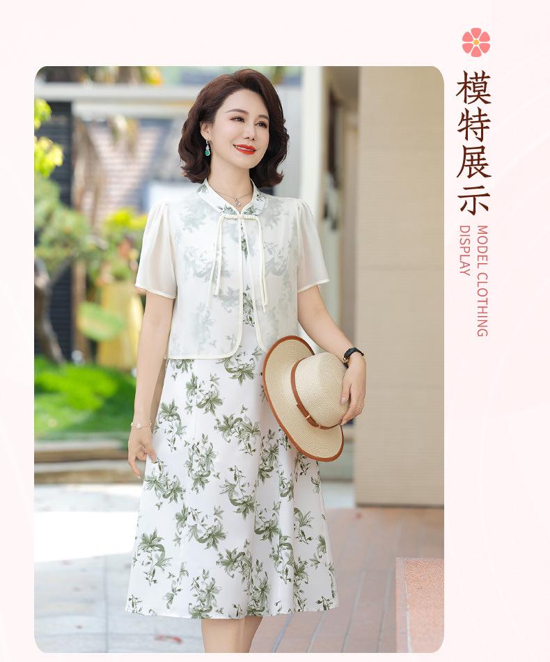 Vestido de Verano para Madre Nuevo Vestido de Estilo Chino Dama 2025 Nuevo Verano para Mujeres de Mediana Edad Estilo Occidental Falda Estilo Nacional