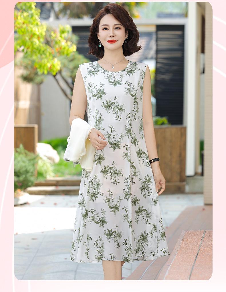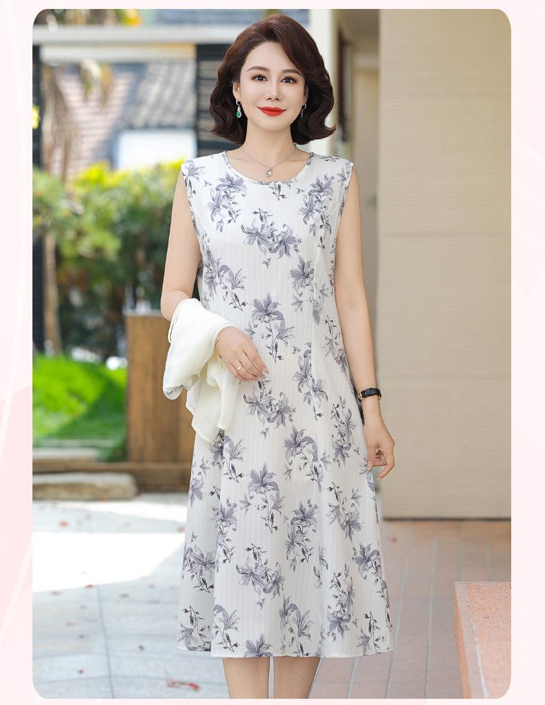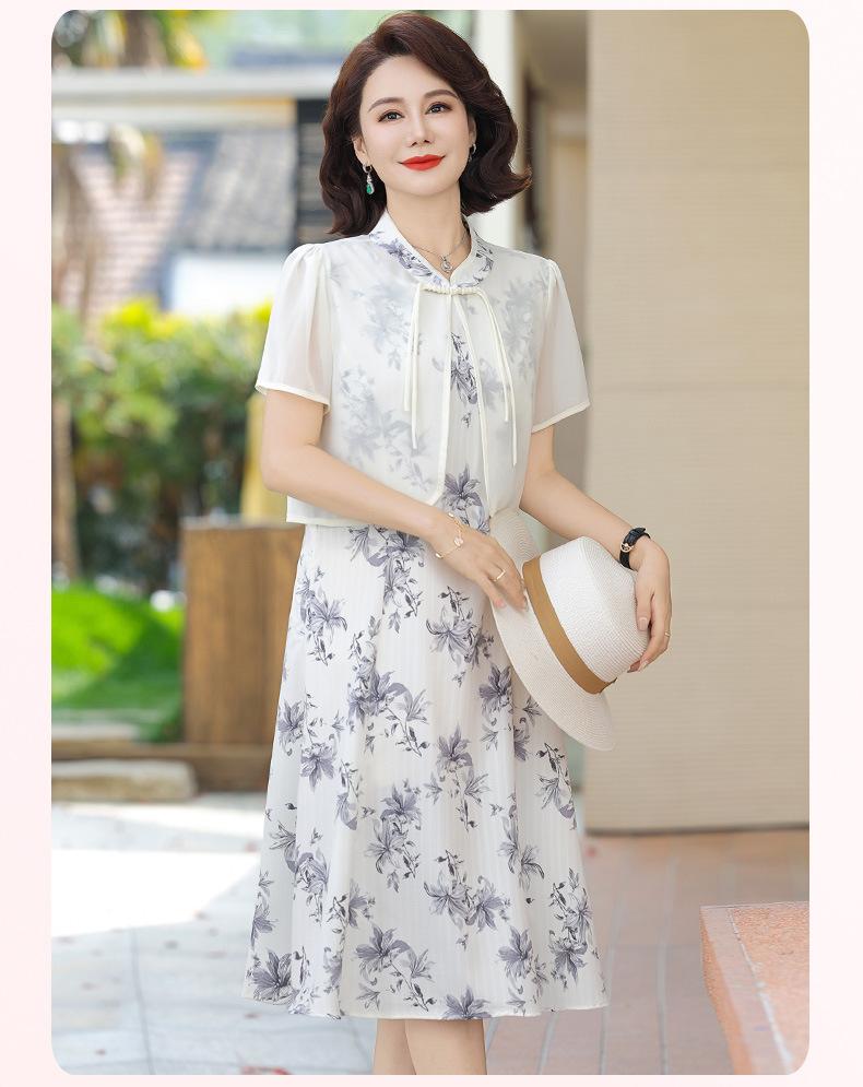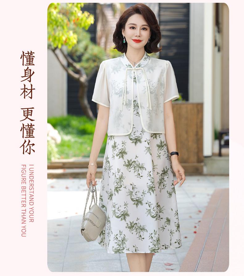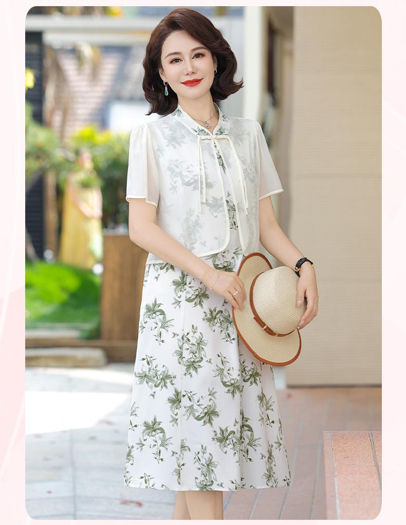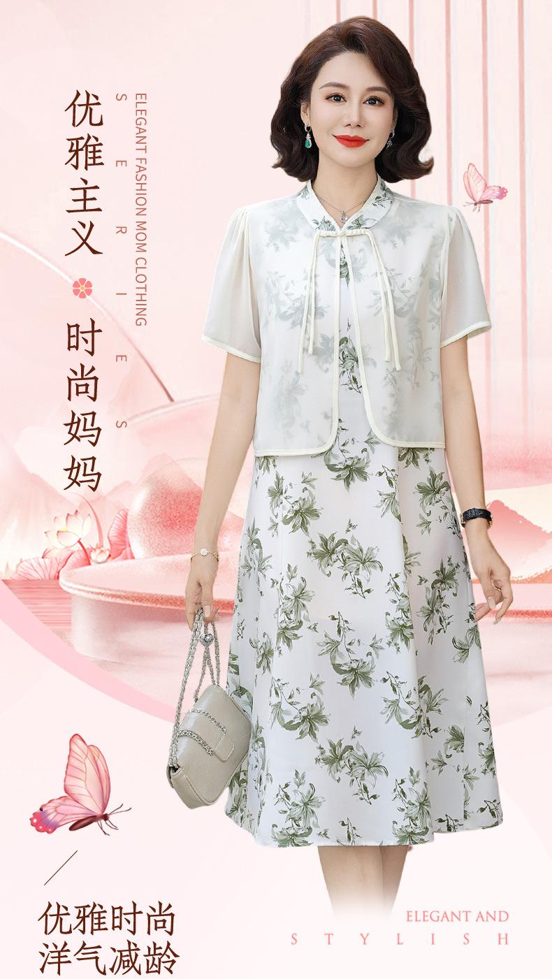 Vestido de Verano para Madre Nuevo Vestido de Estilo Chino Dama 2025 Nuevo Verano para Mujeres de Mediana Edad Estilo Occidental Falda Estilo Nacional