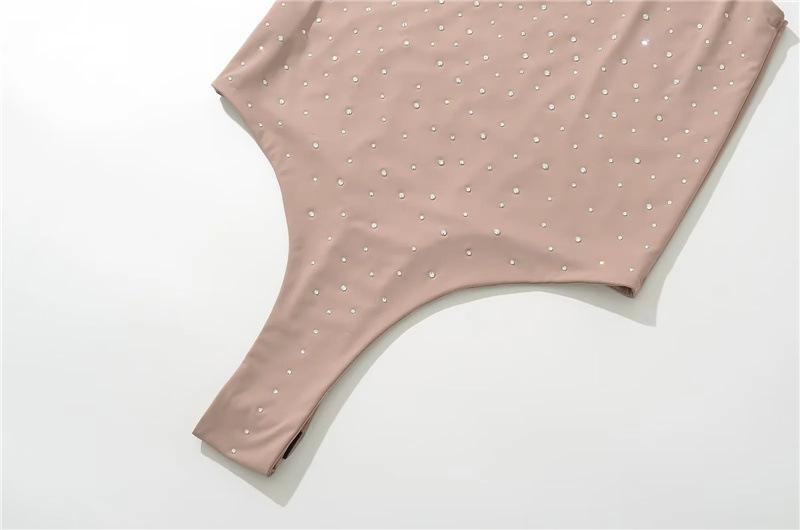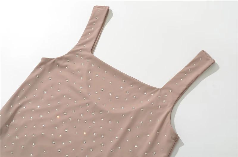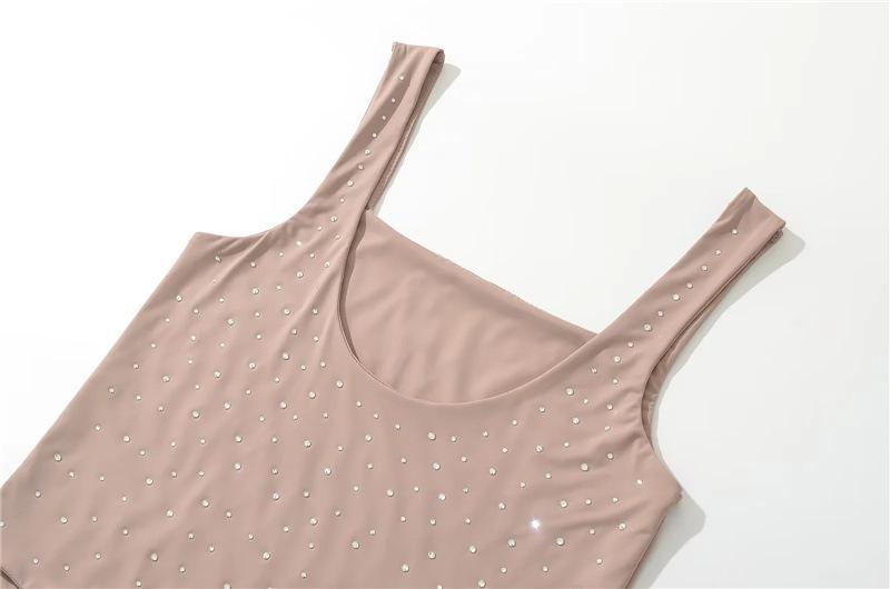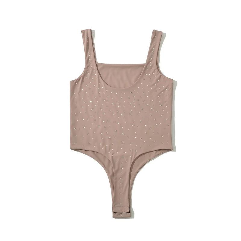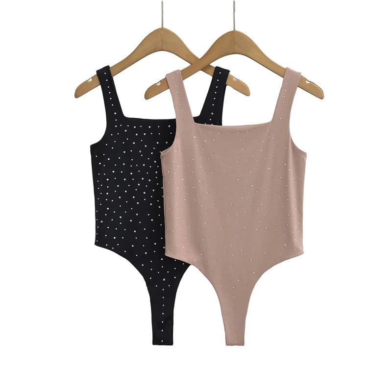 Ropa Europea y Americana Verano Slim Doble Capa Diamantes de Imitación Calientes Chaleco Mono Elástico Ajustado Sexy Interior Una Pieza Tirantes Finos