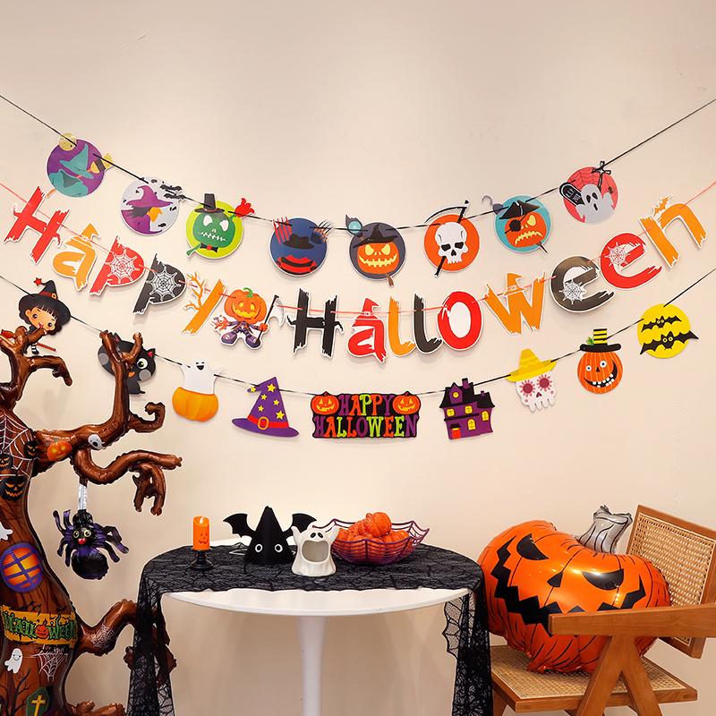Accesorios de decoración de Halloween, bandera, flor, vestido, clase, jardín de infantes, aula, escena, diseño, colgante