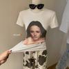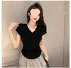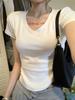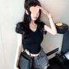 Pura Lujuria Chica Caliente Delgada Sexy Cuello en V Hombro Derecho Manga Corta Camiseta para Mujer 2025 Verano Nuevo Top Suelto Celebridad de Internet