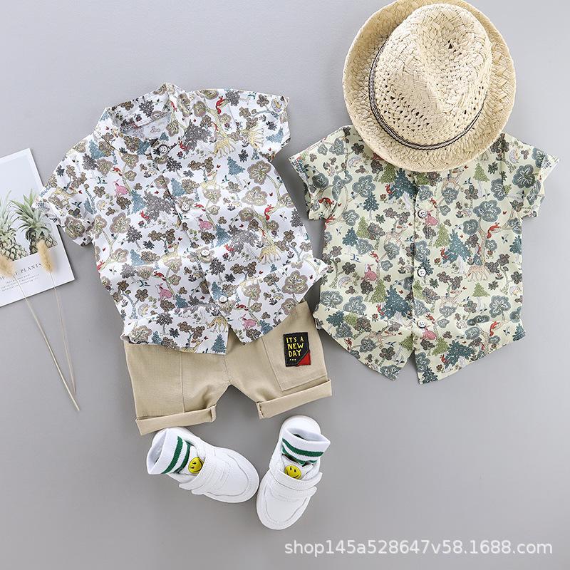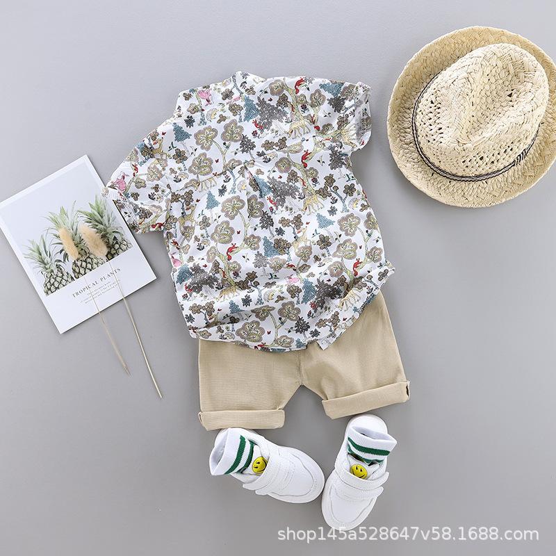 Traje de ropa de verano de manga corta para niños transfronterizo, ropa guapa para niños, ropa de verano para bebés y niños de dos piezas, ropa nueva para niños