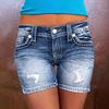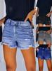 Amazon Transfronterizo Shorts de Mezclilla de Alta Elasticidad para Mujer con Flecos Deshilachados