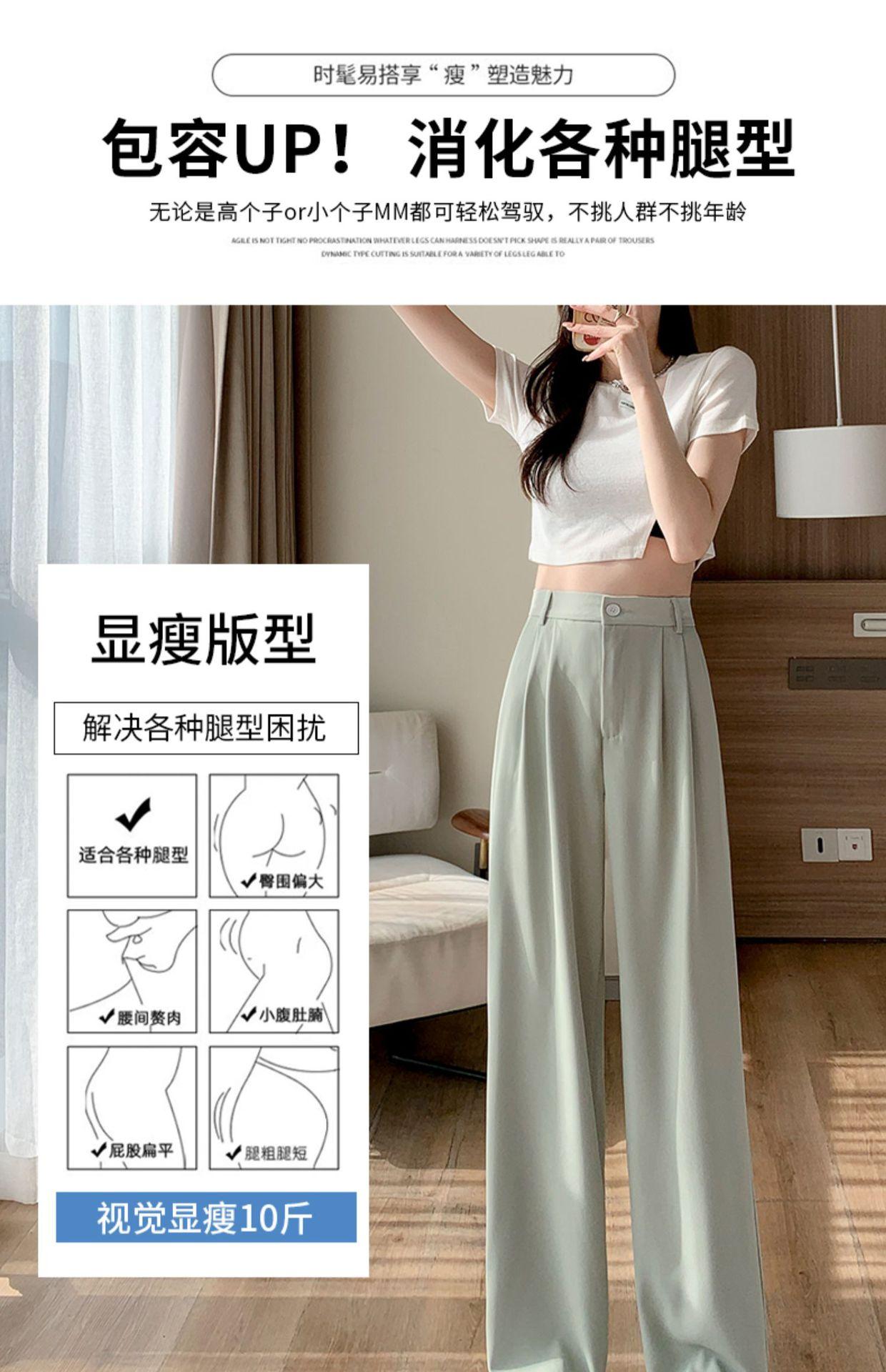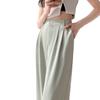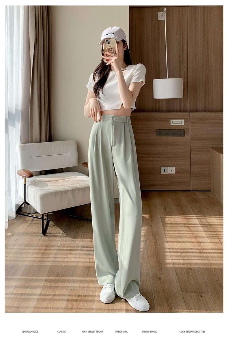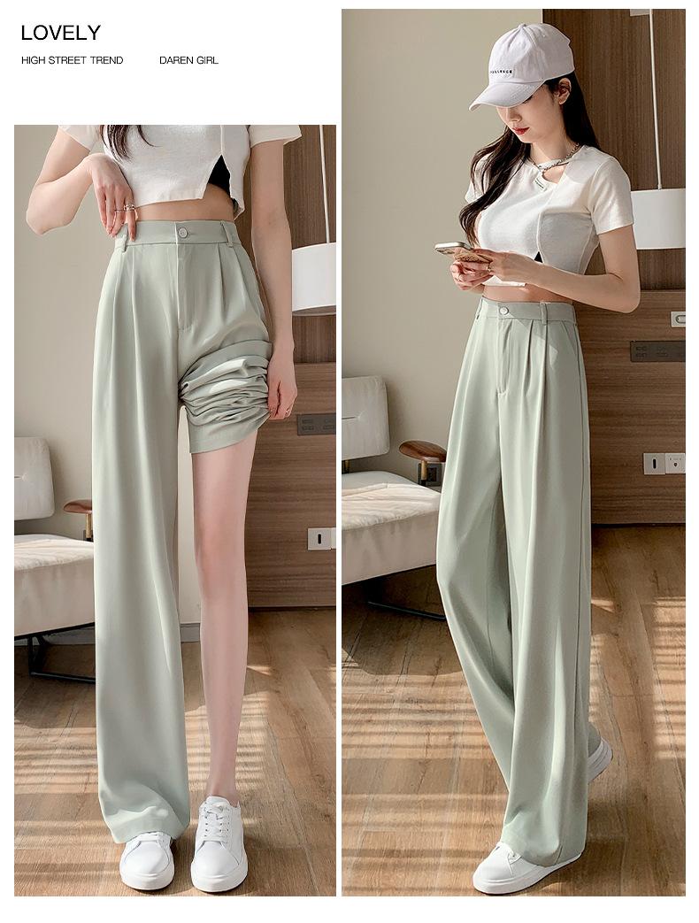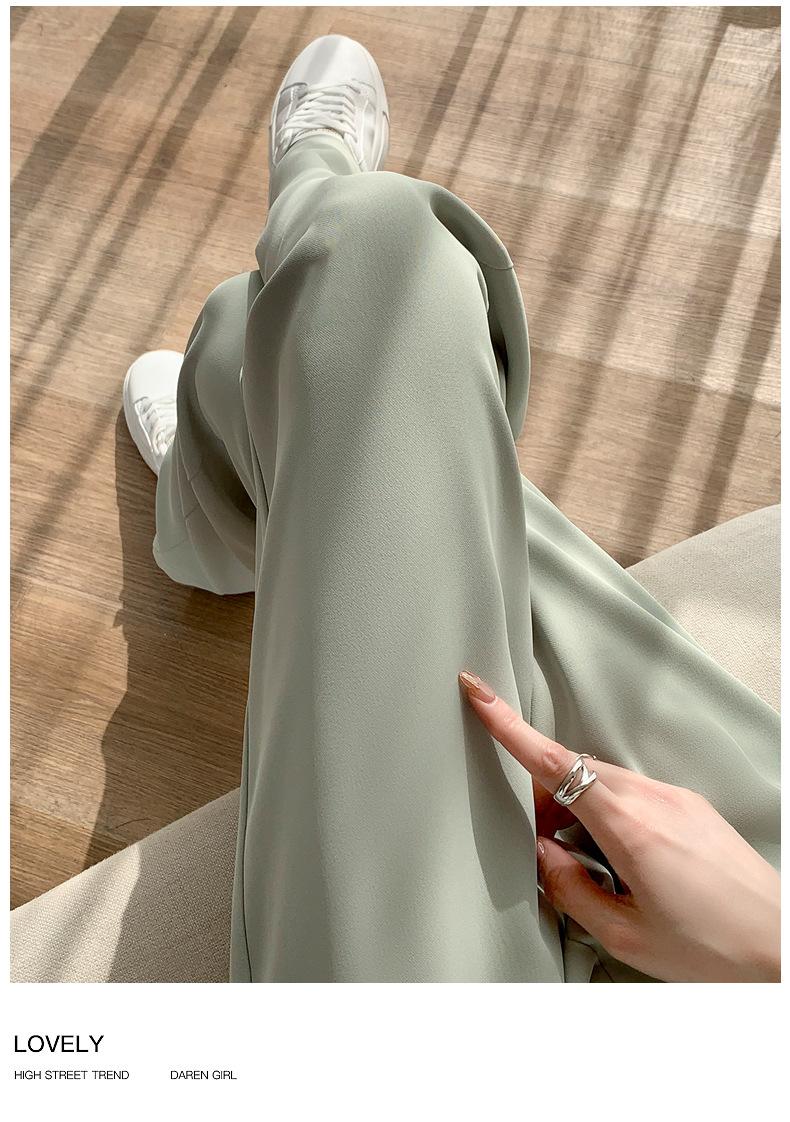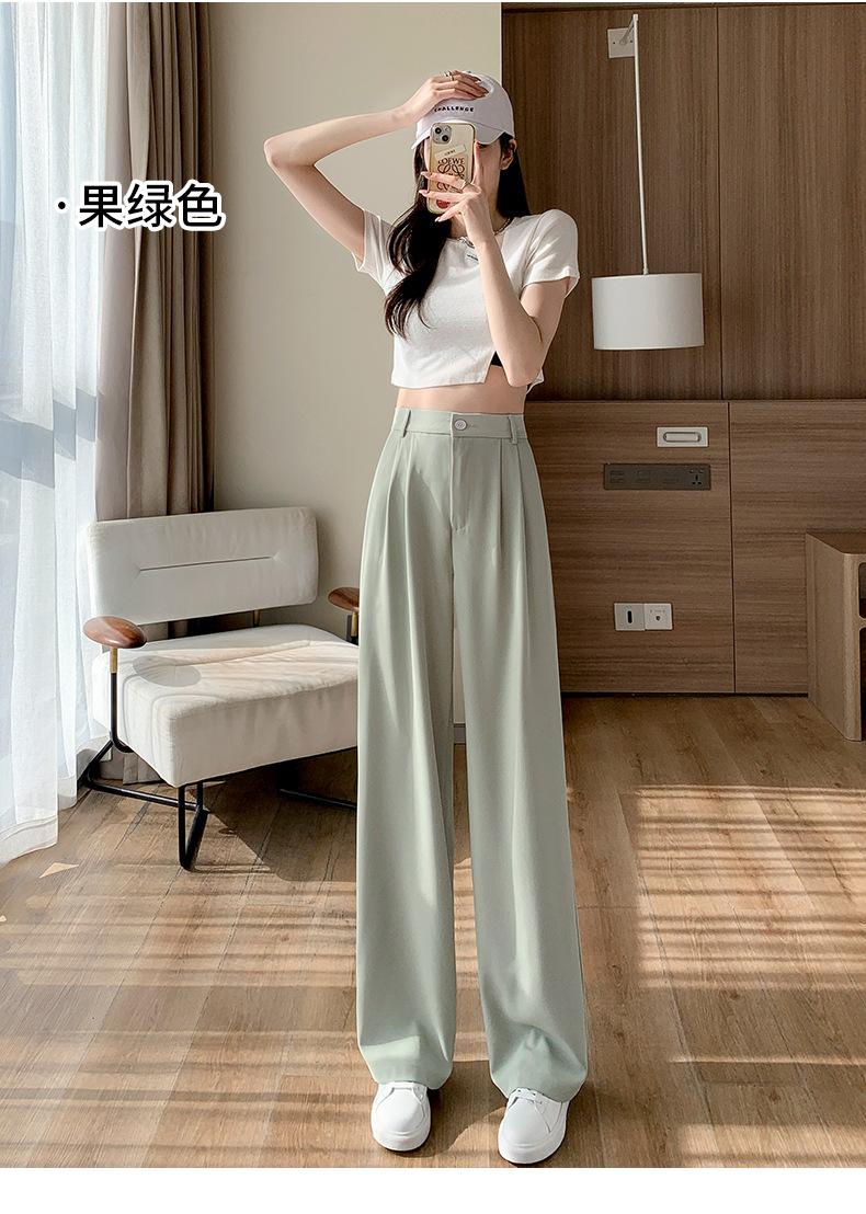 Traje Verano 2025 Pantalones de Pierna Ancha Pantalones de Verano de Seda Helada Pantalones de Traje Verdes Petites Drapeados de Cintura Alta para Mujer Primavera y Otoño