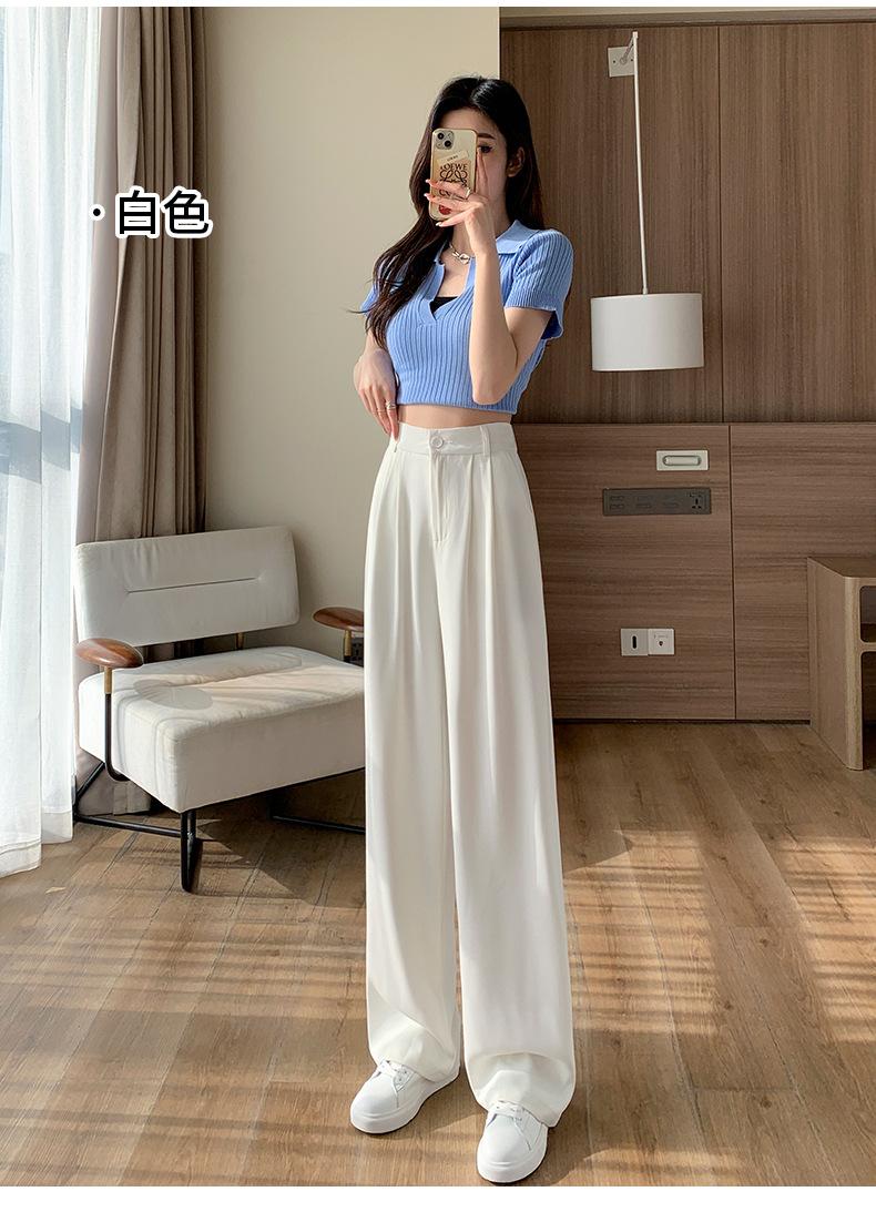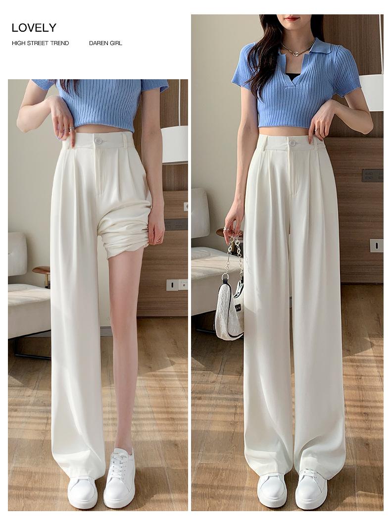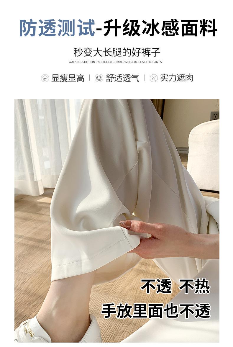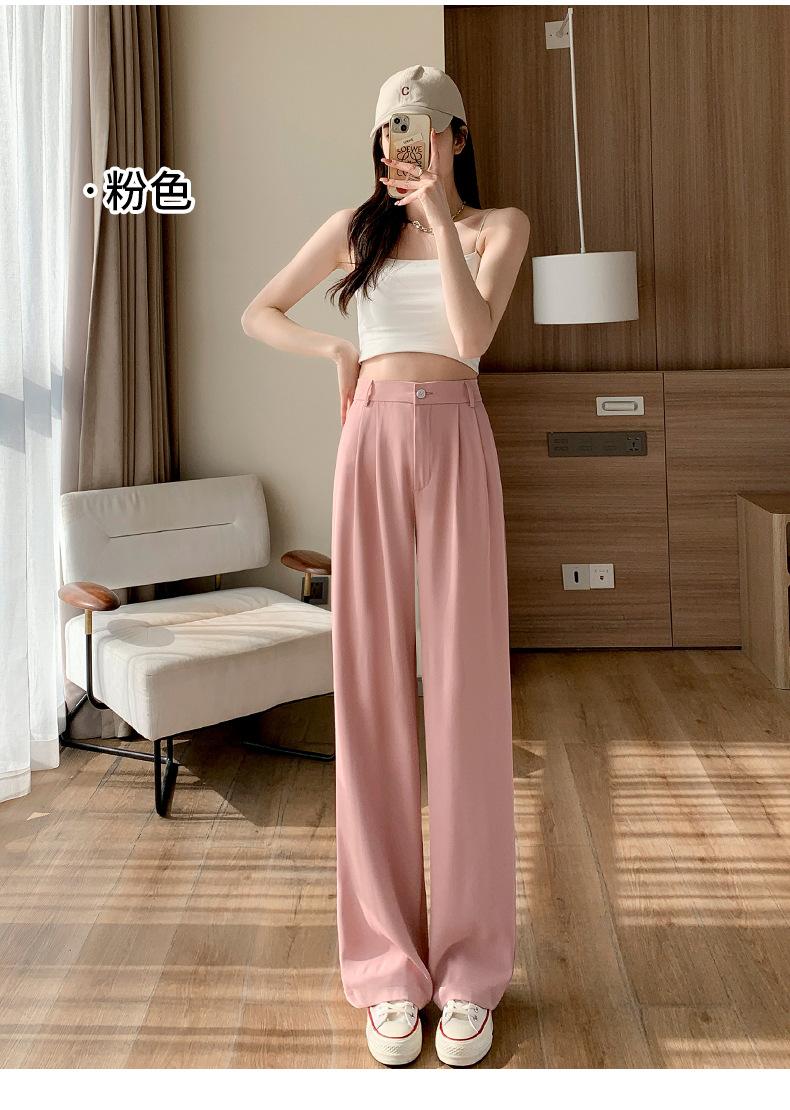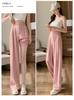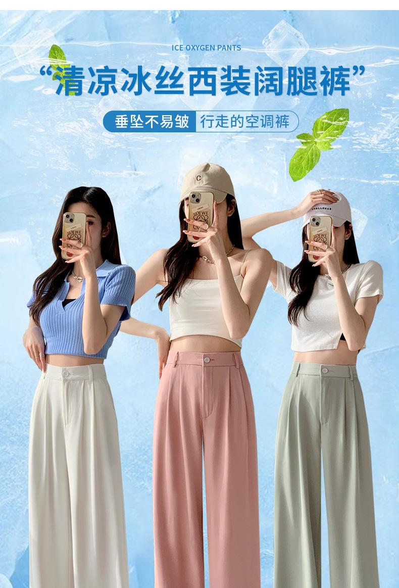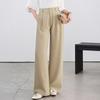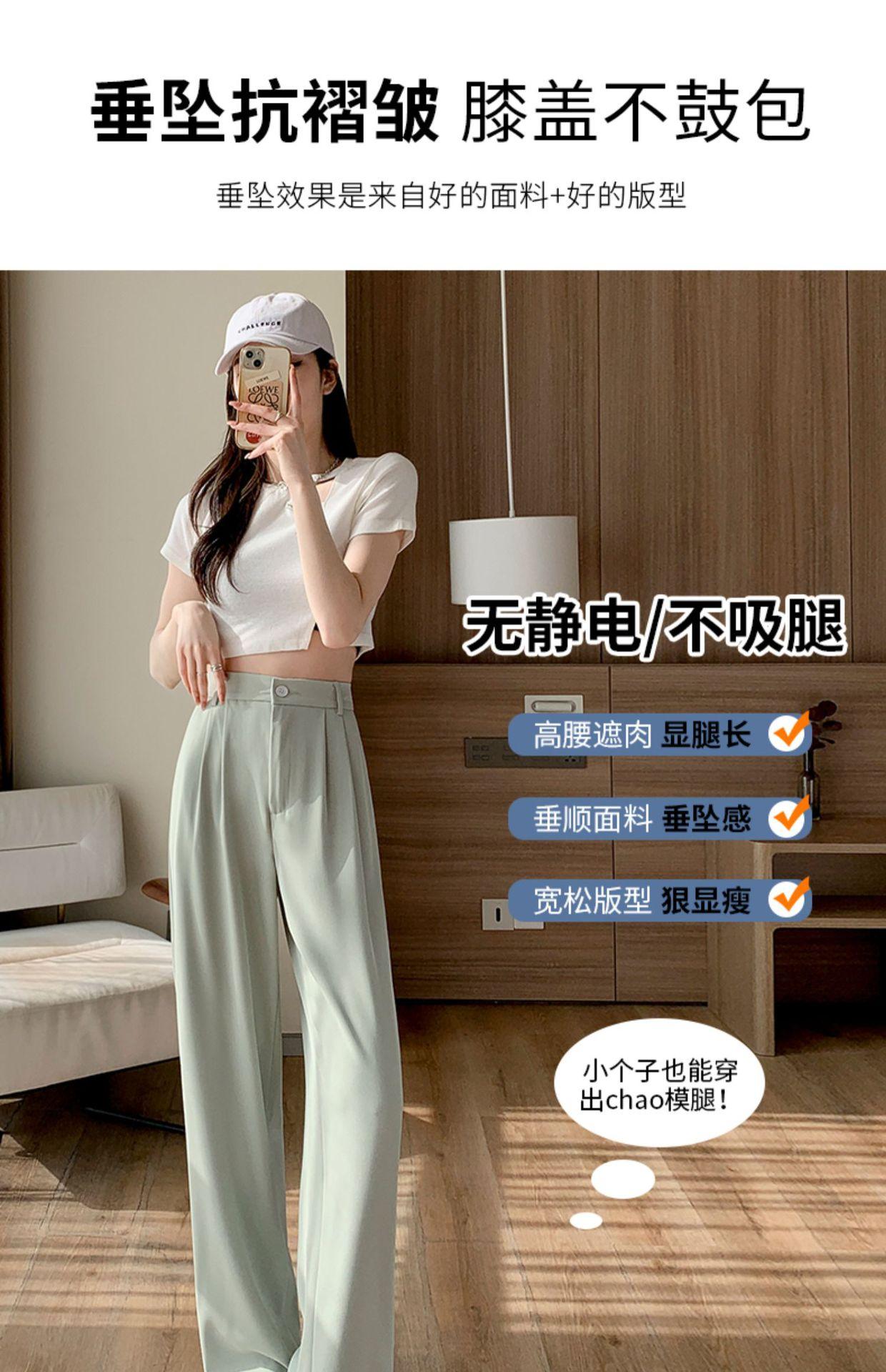 Traje Verano 2025 Pantalones de Pierna Ancha Pantalones de Verano de Seda Helada Pantalones de Traje Verdes Petites Drapeados de Cintura Alta para Mujer Primavera y Otoño