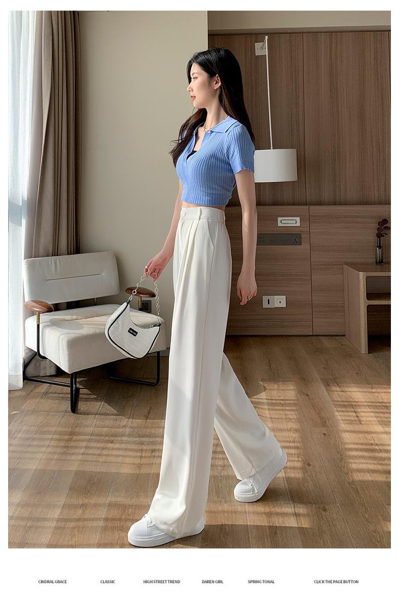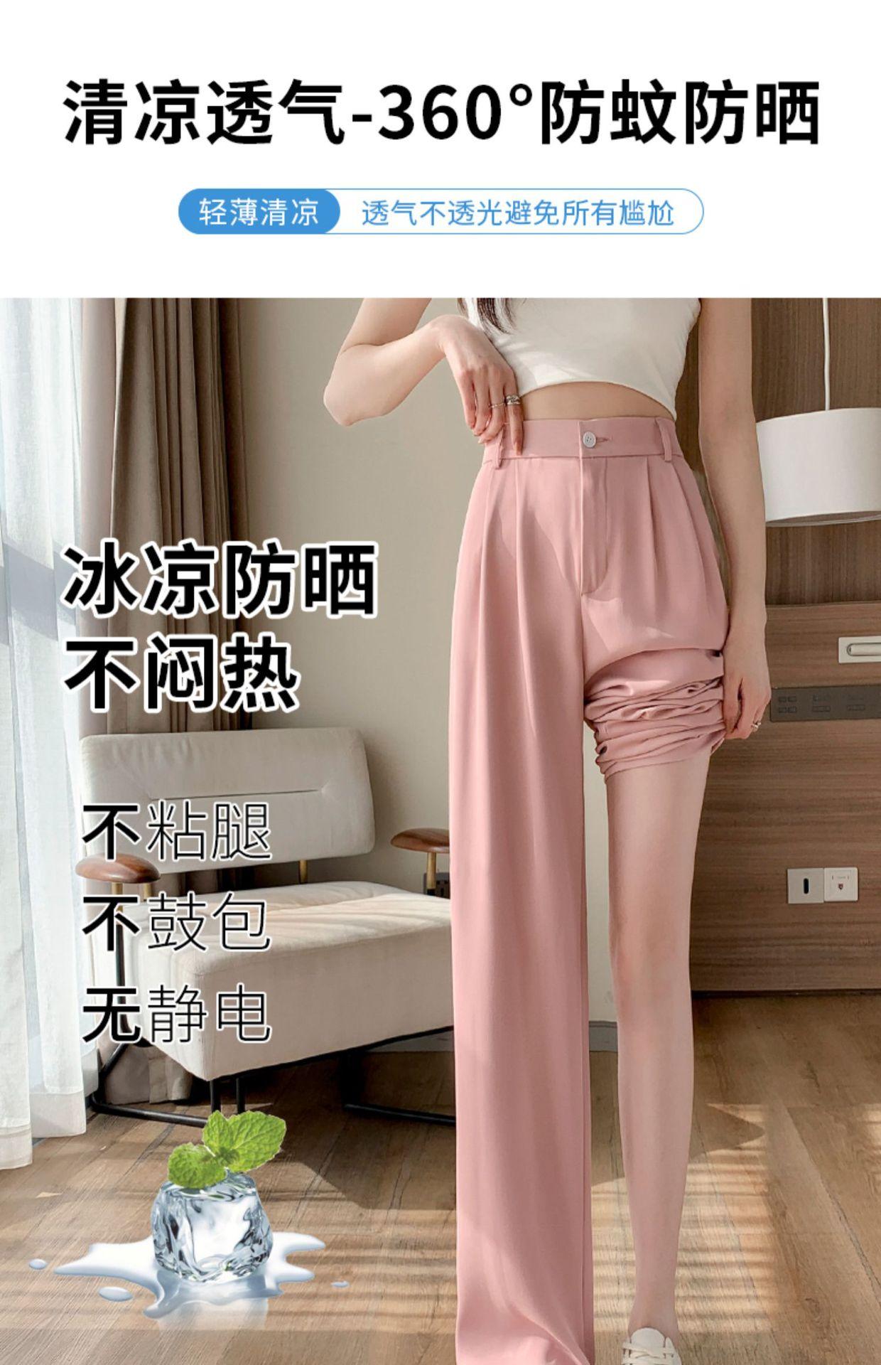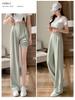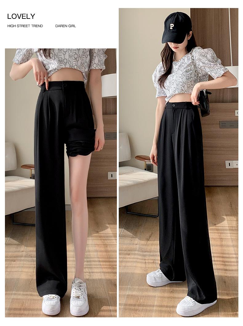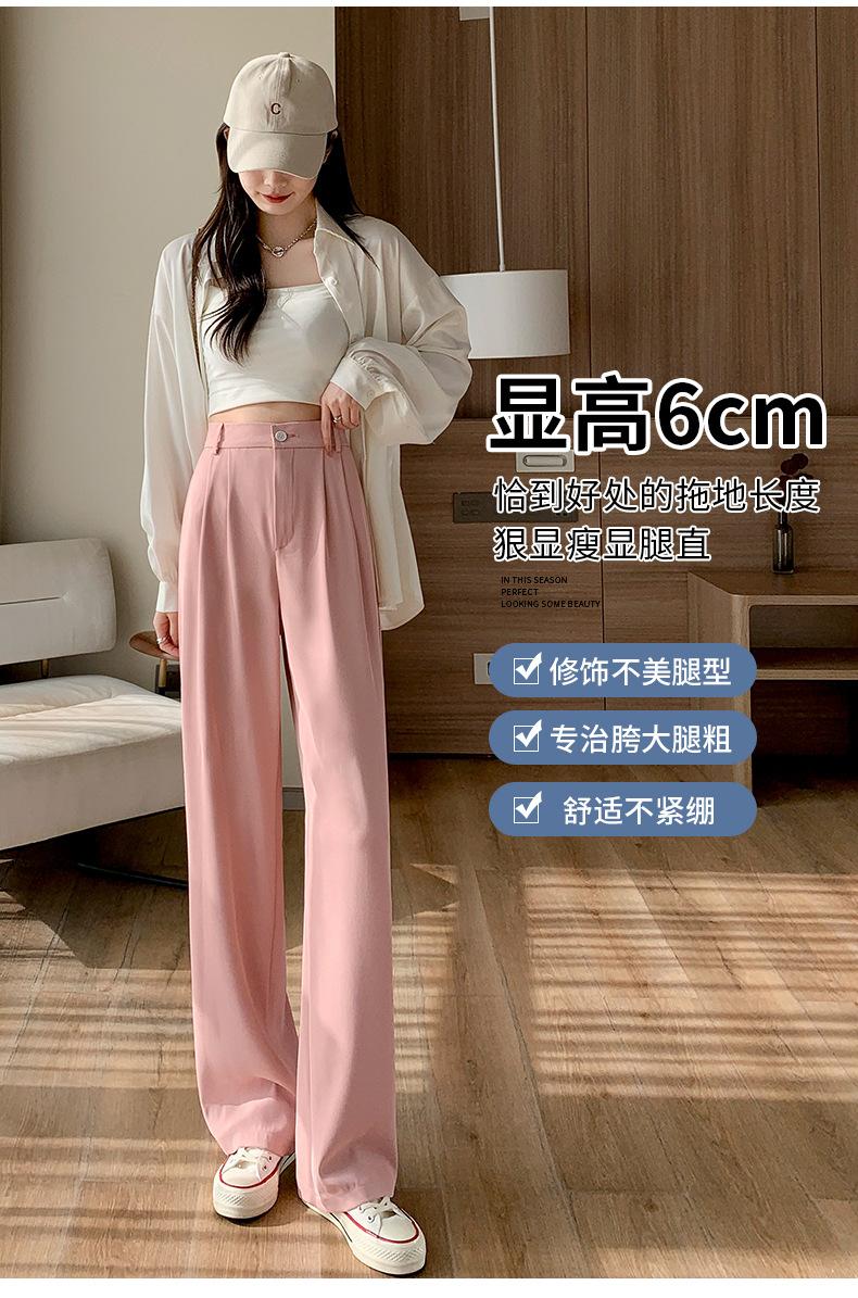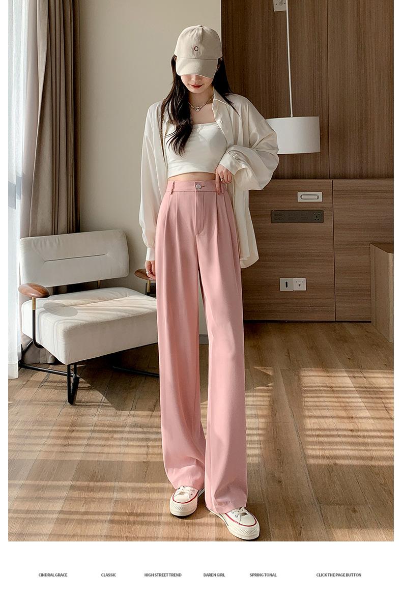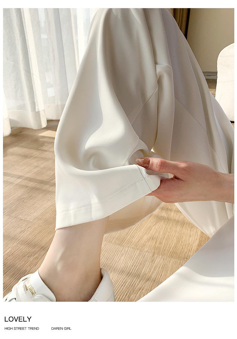 Traje Verano 2025 Pantalones de Pierna Ancha Pantalones de Verano de Seda Helada Pantalones de Traje Verdes Petites Drapeados de Cintura Alta para Mujer Primavera y Otoño