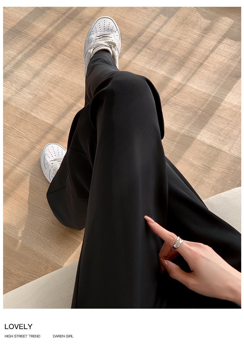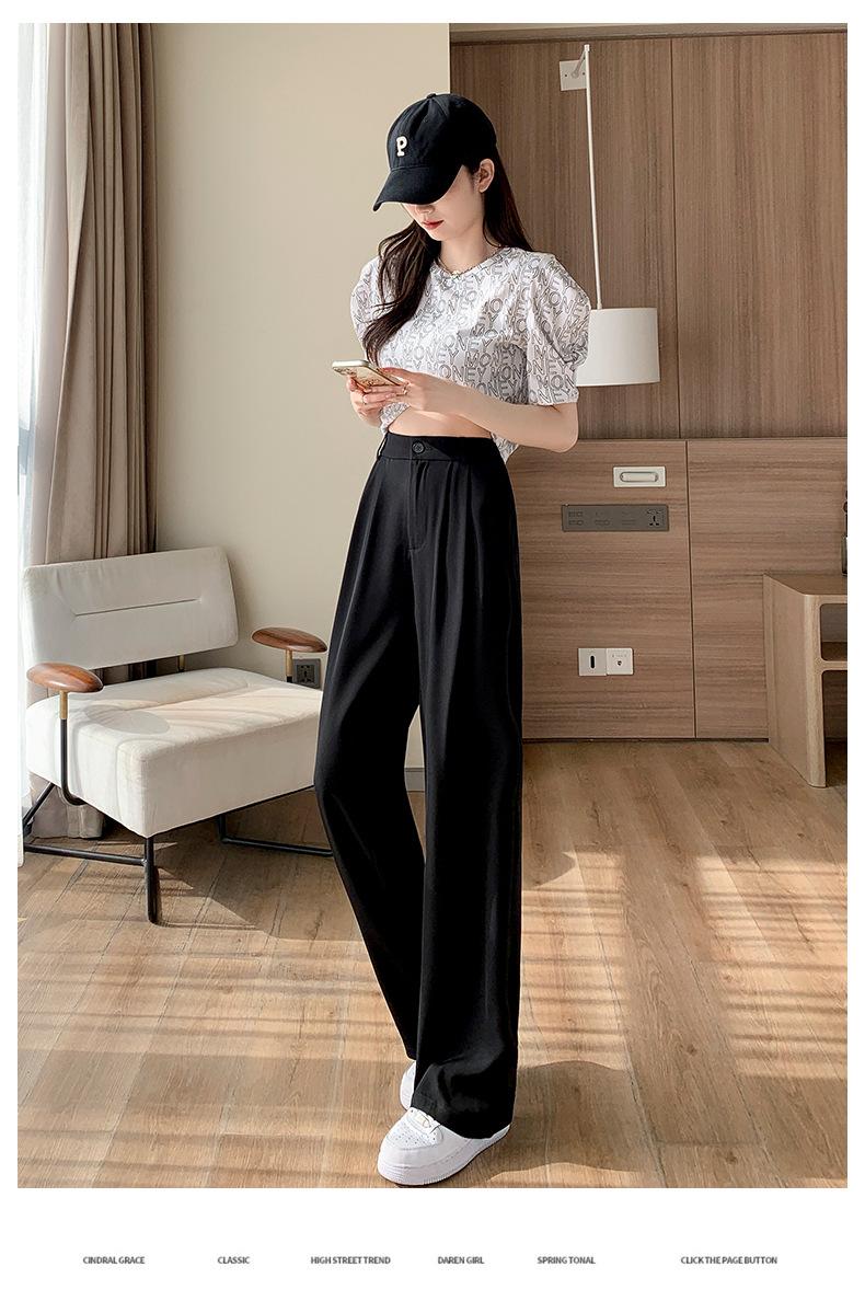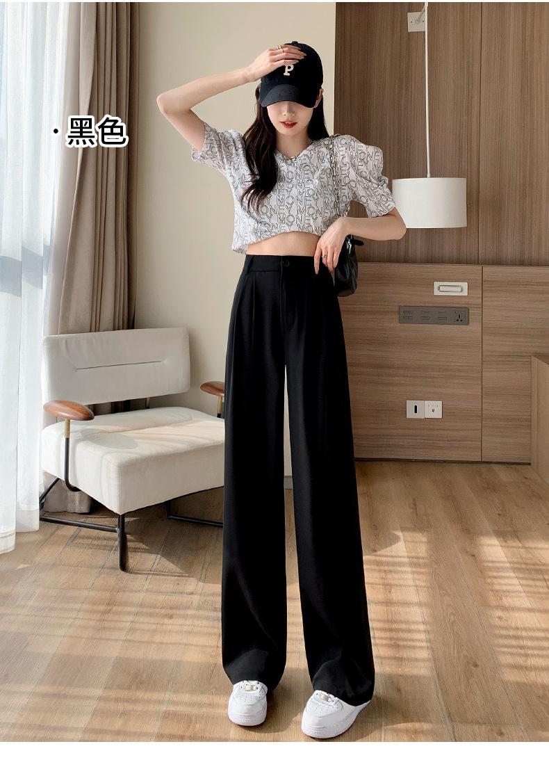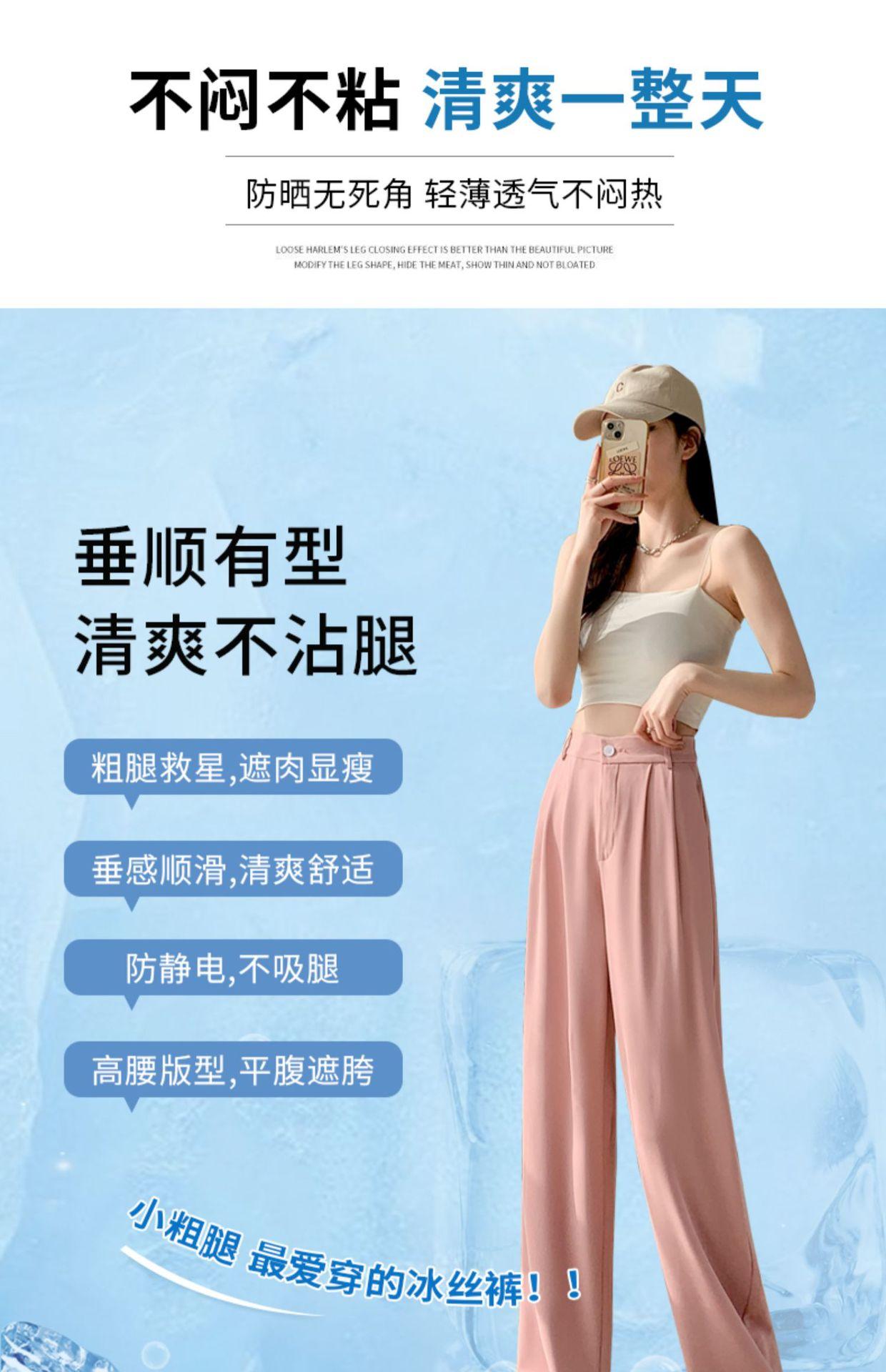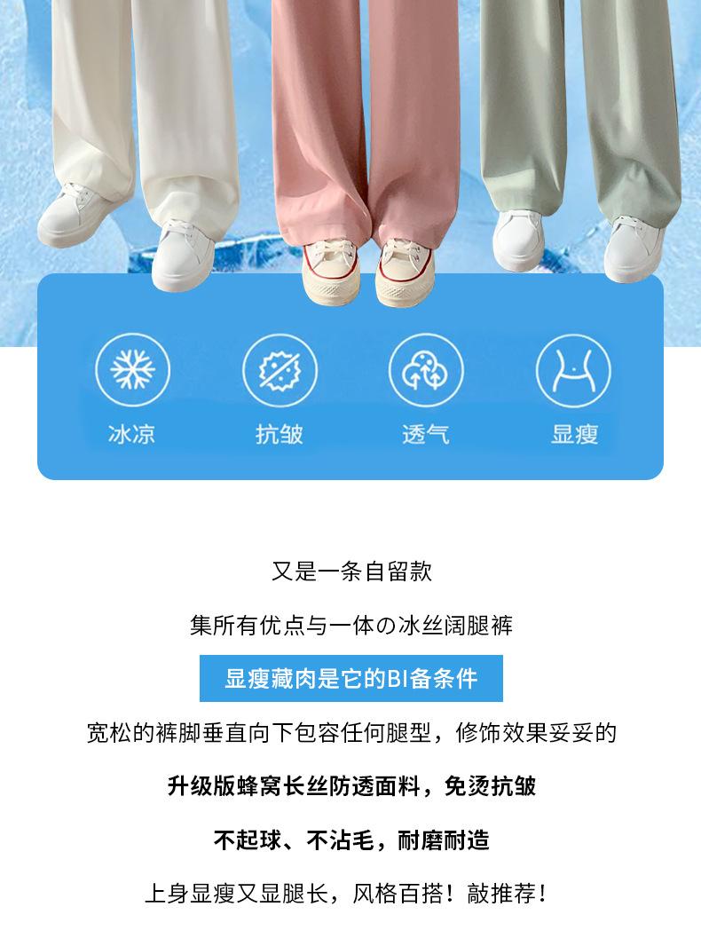 Traje Verano 2025 Pantalones de Pierna Ancha Pantalones de Verano de Seda Helada Pantalones de Traje Verdes Petites Drapeados de Cintura Alta para Mujer Primavera y Otoño