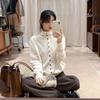 Cárdigan de Primavera y Otoño Nuevo Combinable Top Ropa Coreana Cuello Alto Gris Terciopelo de Mapache Suéter Tejido de Manga Larga para Mujer
