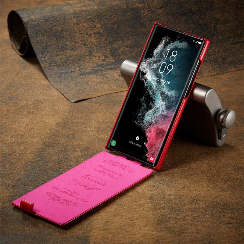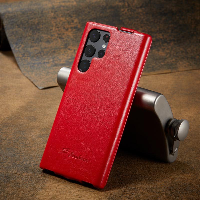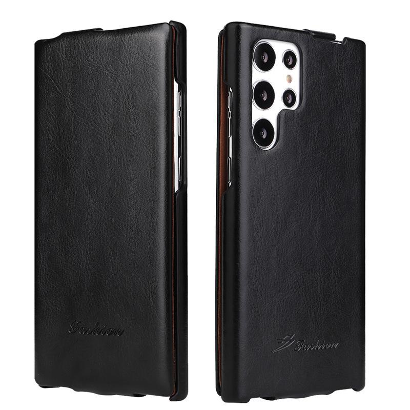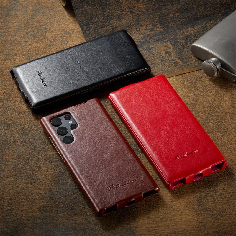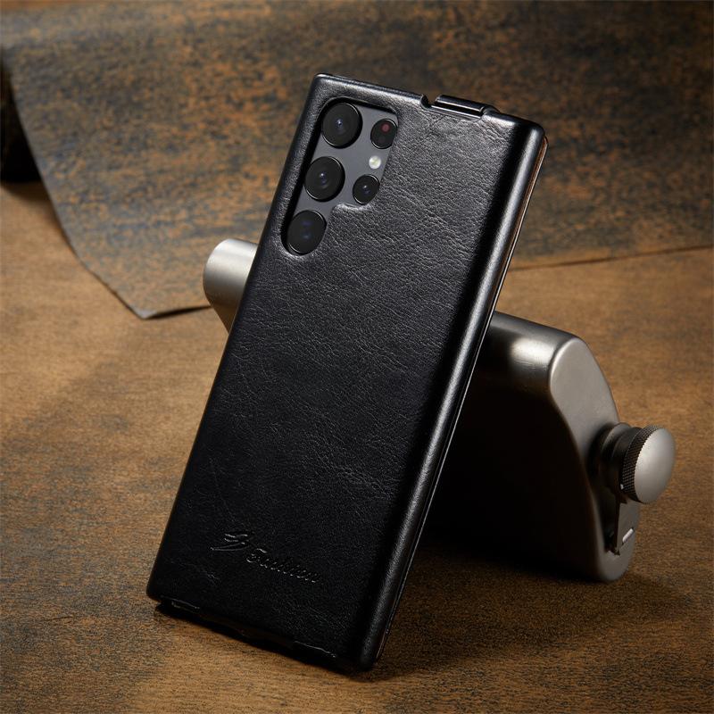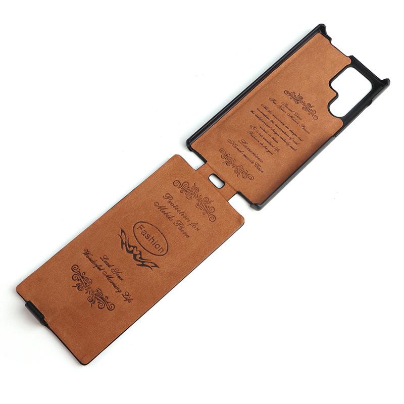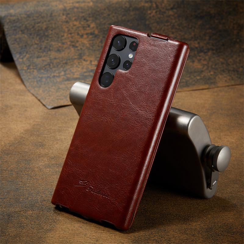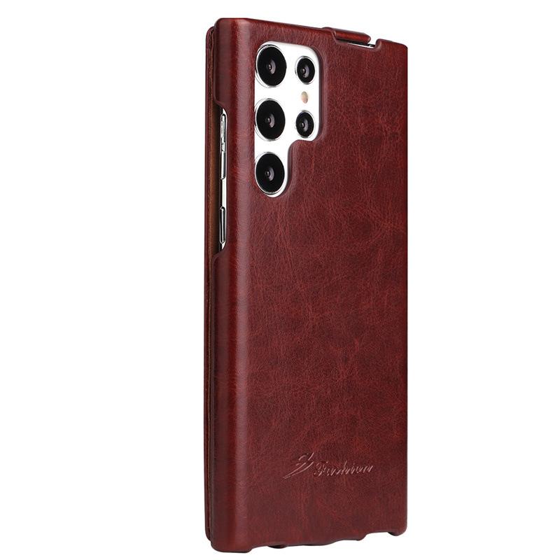 Aplicable a Samsung S22 patrón retro Caballo Loco funda de cuero tipo flip retro S22 Ultra funda protectora para negocios