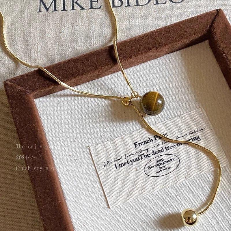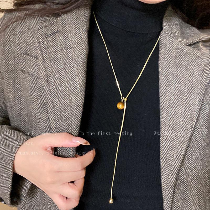 Collar de Borla de Piedra Ojo de Tigre Maillard para Mujer Otoño e Invierno Moda Retro Cadena para Sudadera Diseño de Nicho Cadena para Suéter