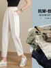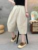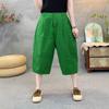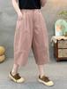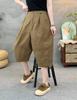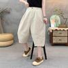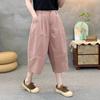 Verano Nuevo Empalme Artístico Casual Pantalones Anchos Pierna Ancha Holgados Adelgazantes Versátiles Color Sólido Algodón Pantalones Harem Pantalones Recortados de Mujer