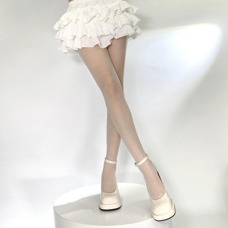 Medias de Seda Jacquard Nuevas Blanco Leche Fondo Lunar Negro Corazón Seda Hilada Sexy Calcetines JK Primavera y Verano Pantimedias Finas Mujeres
