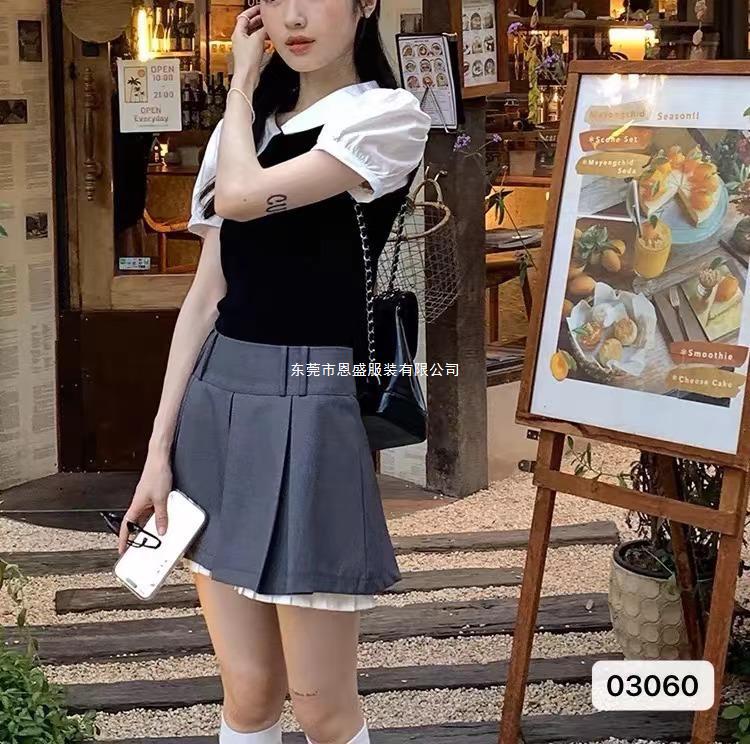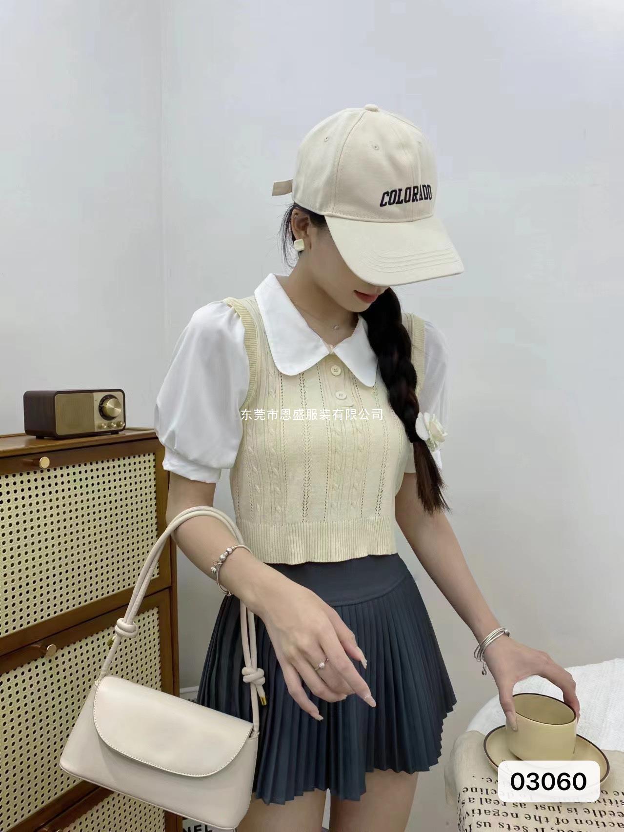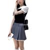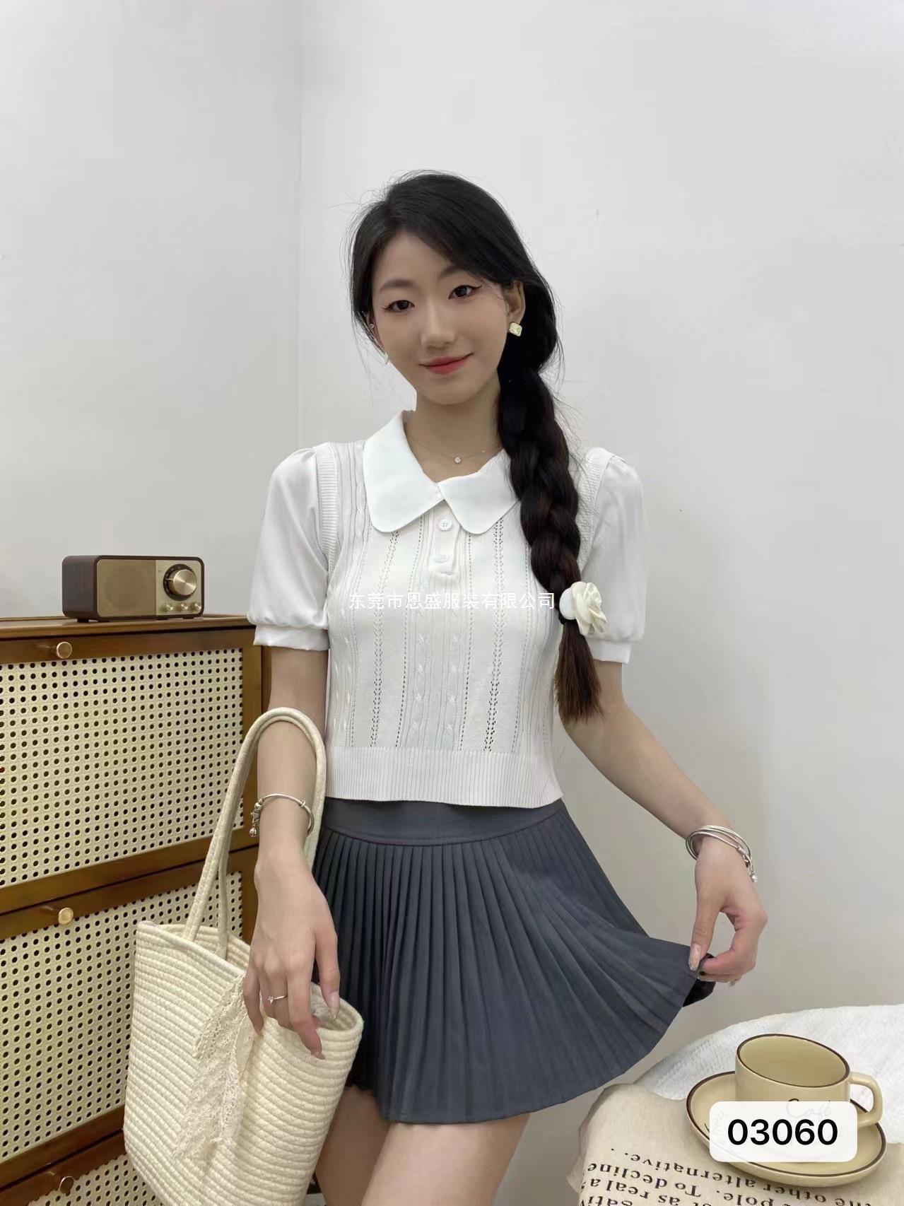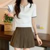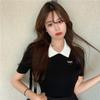 2024 Verano Nuevo Estilo Coreano Elegante Corto Falso Dos Piezas Diseño Camisa Cuello Polo Nicho Camisa de Manga Corta para Mujer