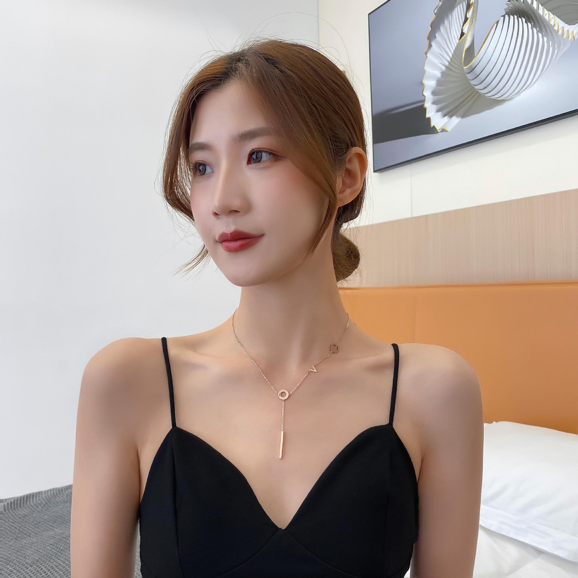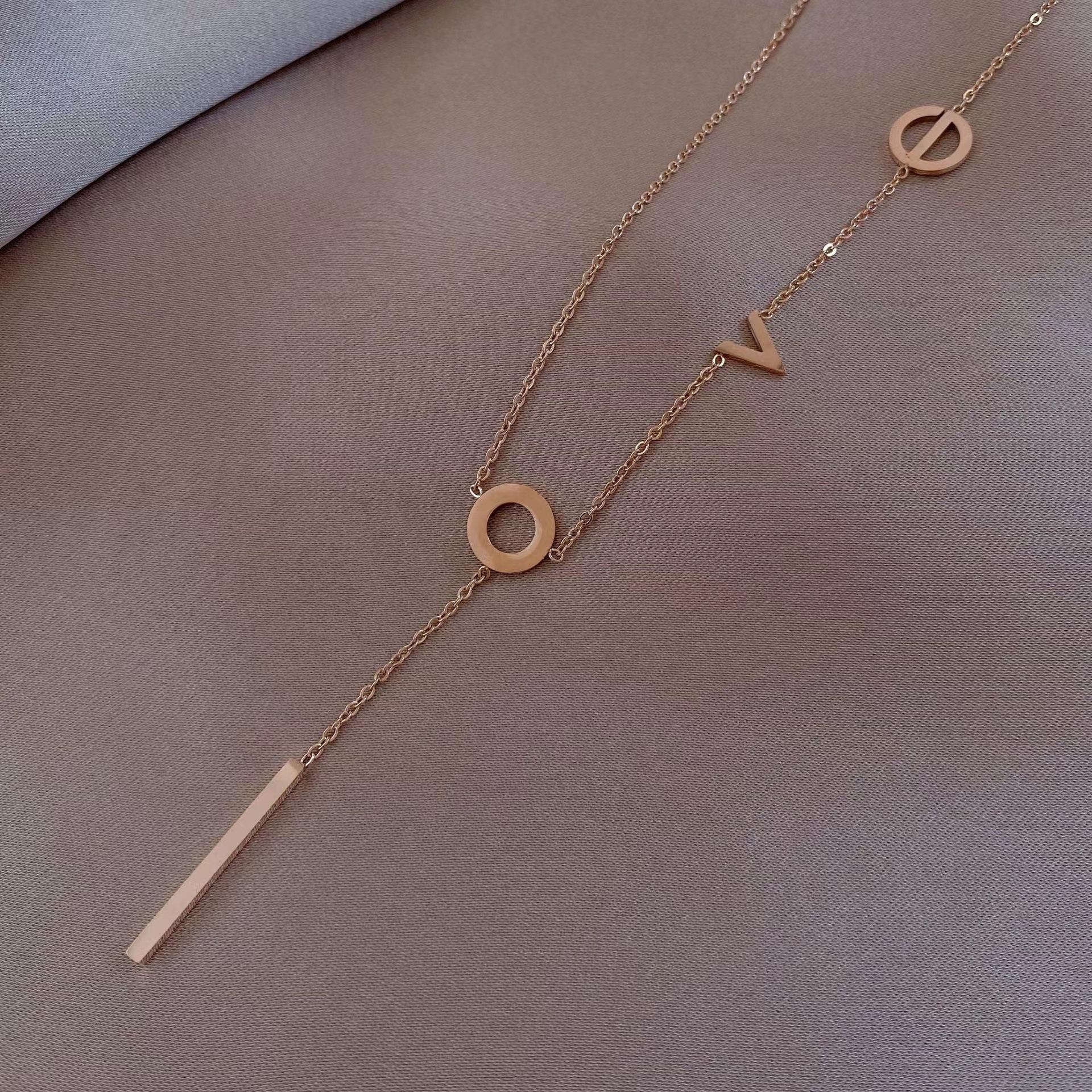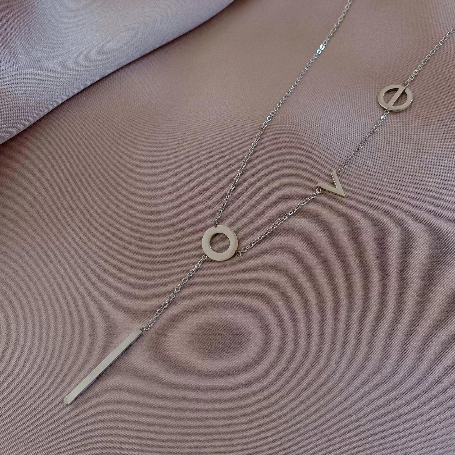 Collar de acero de titanio para mujer, estilo japonés-coreano, letra de amor, diseño pequeño, moda de celebridades de Internet, joyería elegante y sencilla, cadena de clavícula.