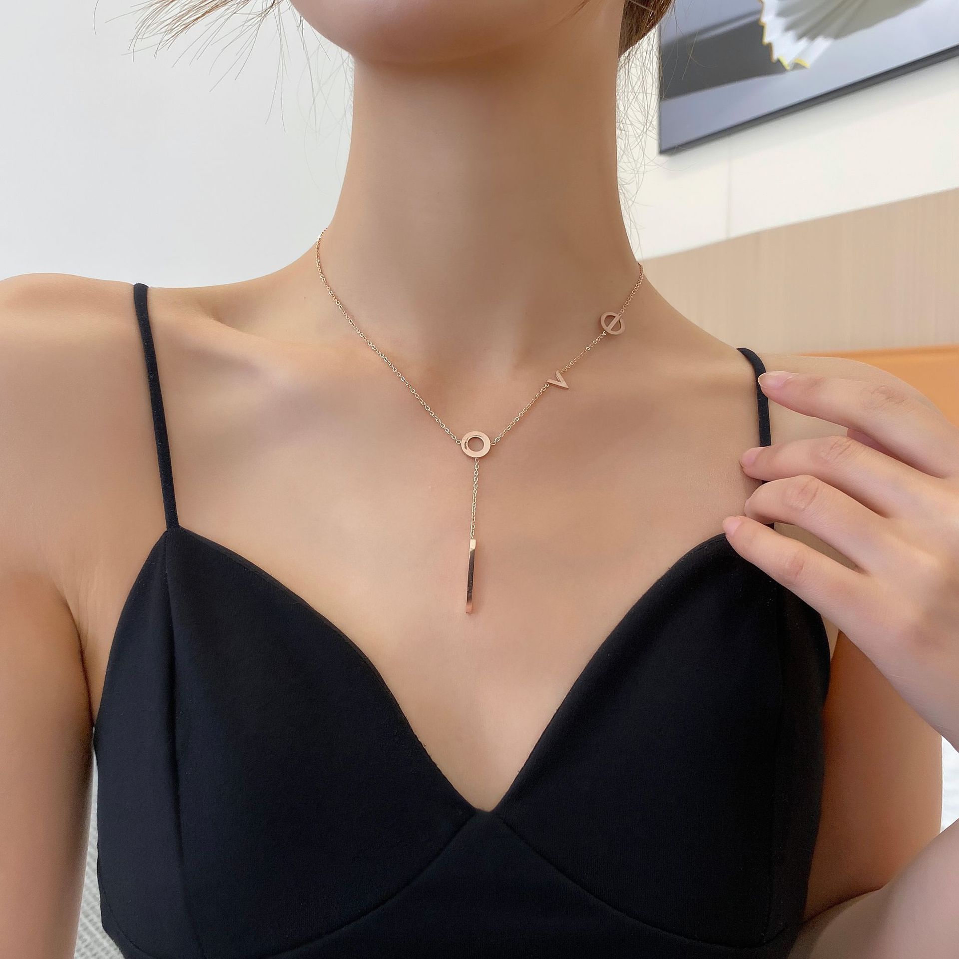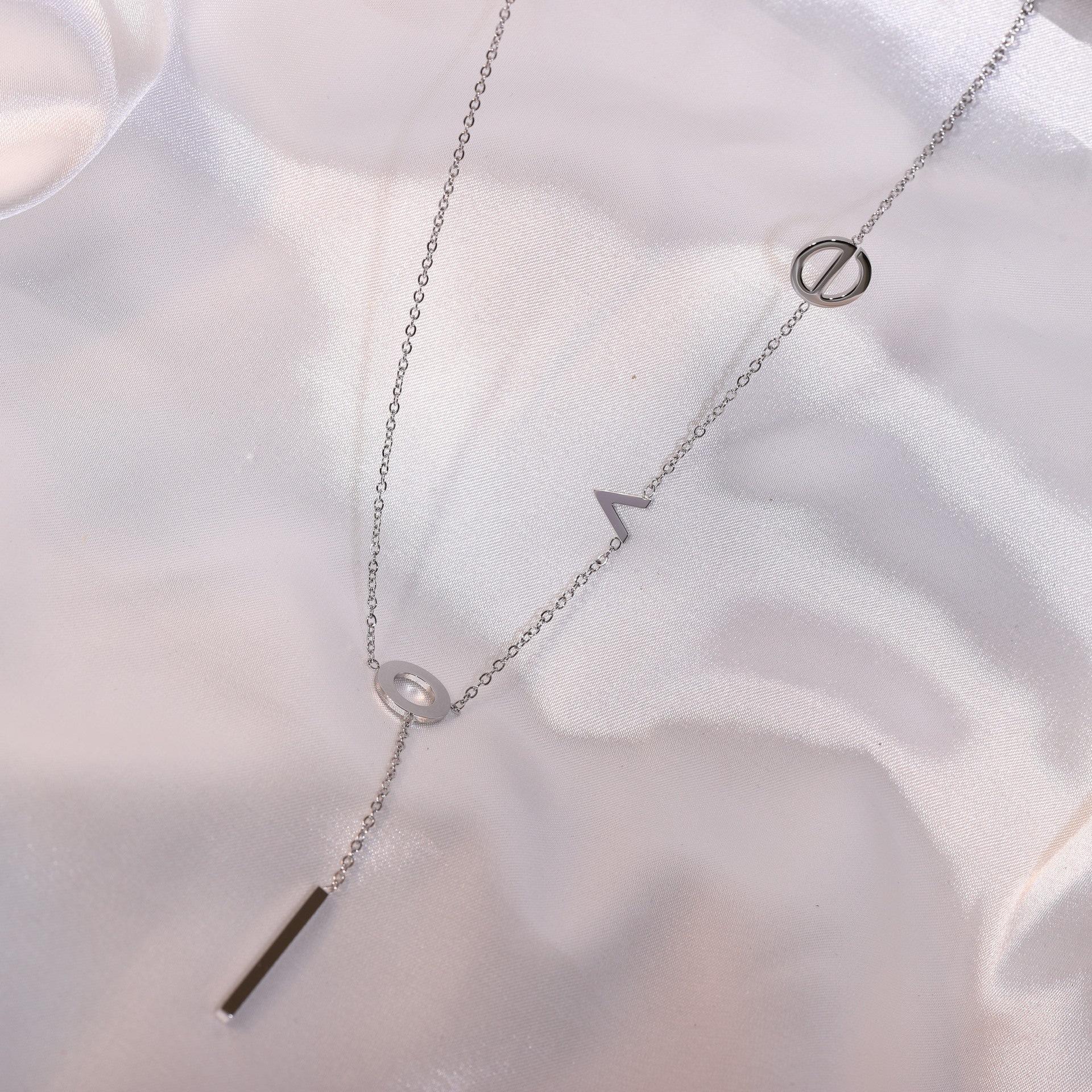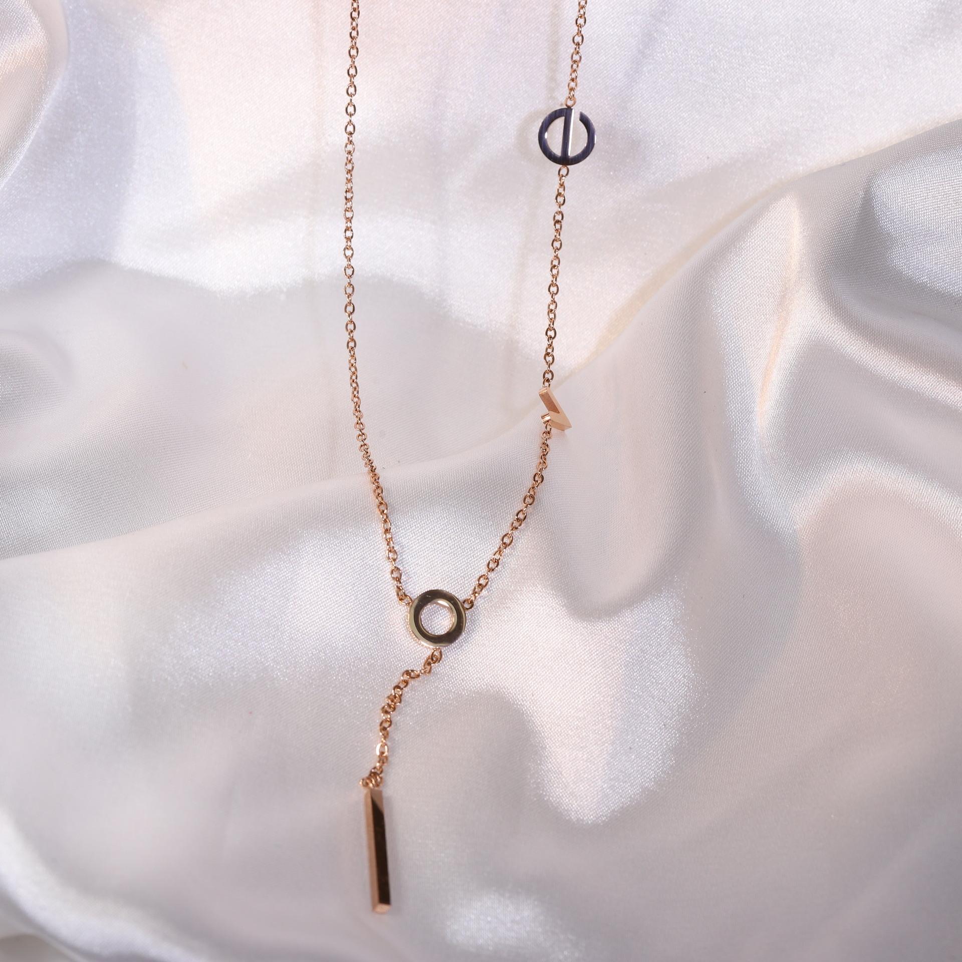 Collar de acero de titanio para mujer, estilo japonés-coreano, letra de amor, diseño pequeño, moda de celebridades de Internet, joyería elegante y sencilla, cadena de clavícula.