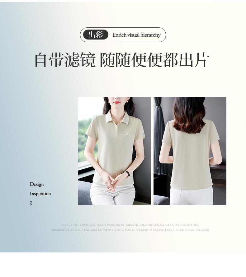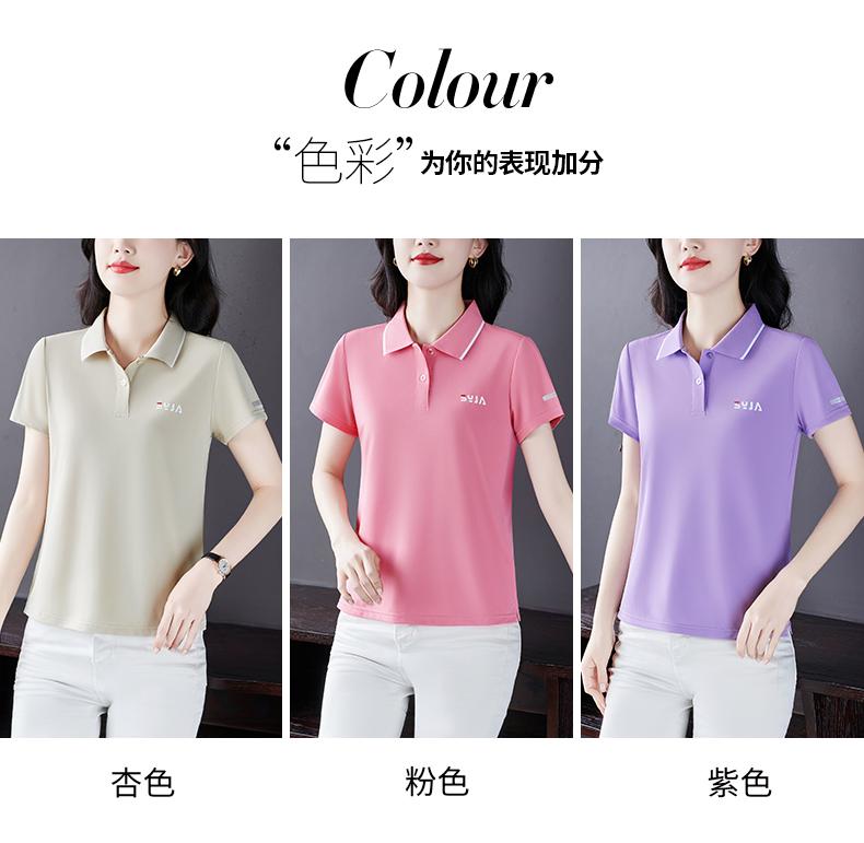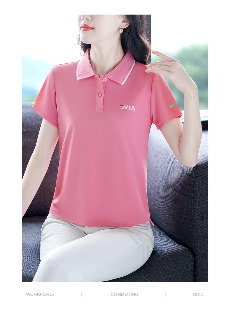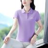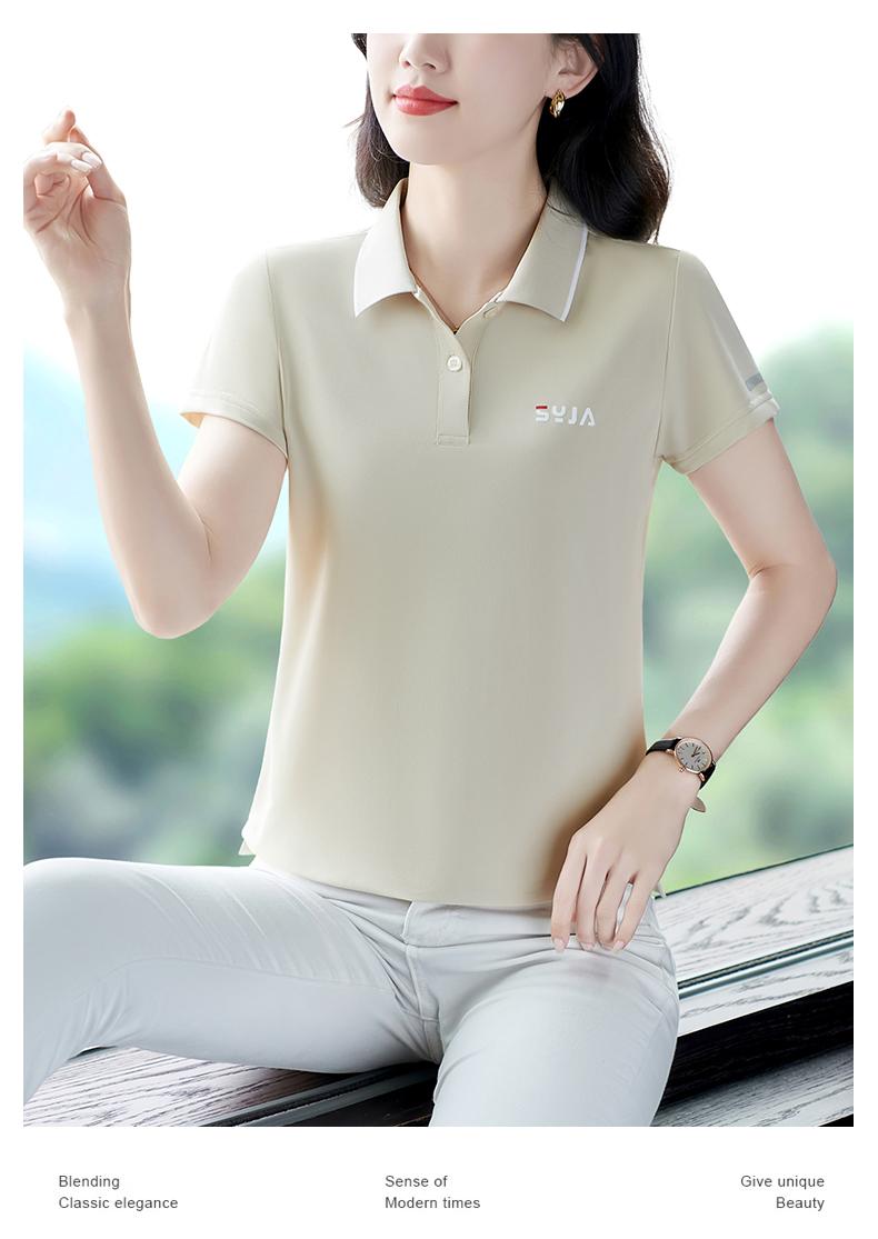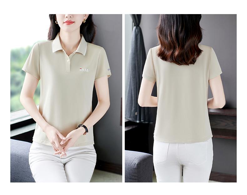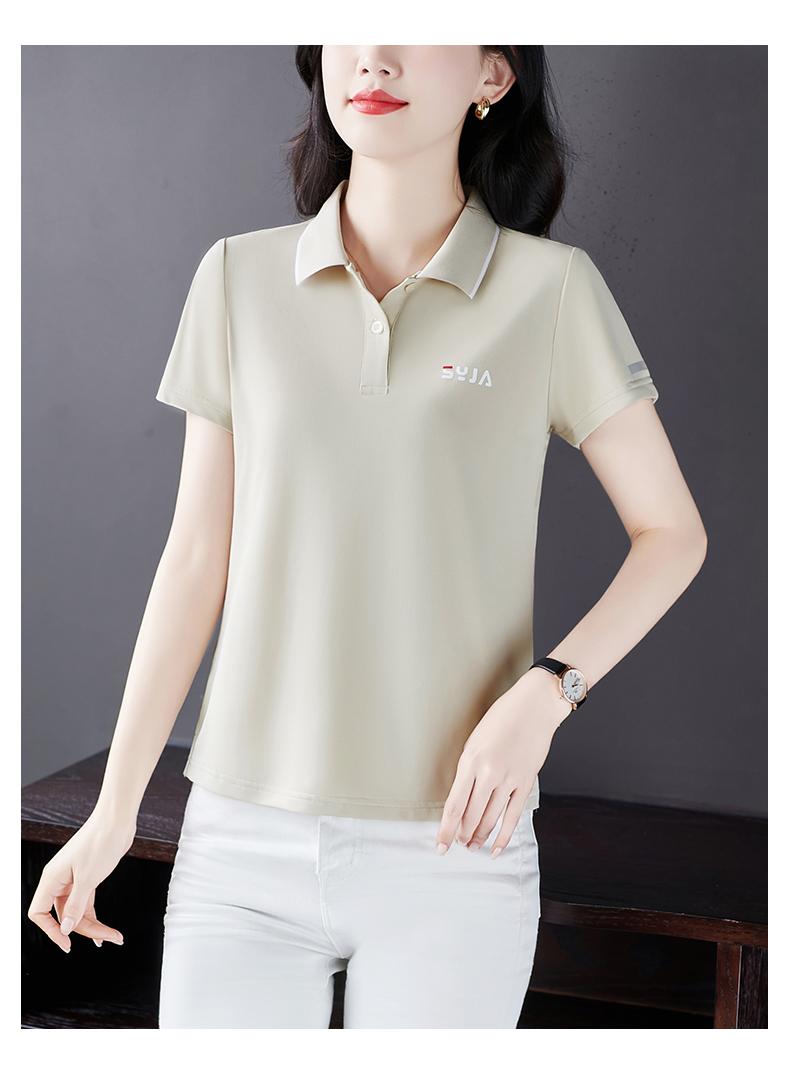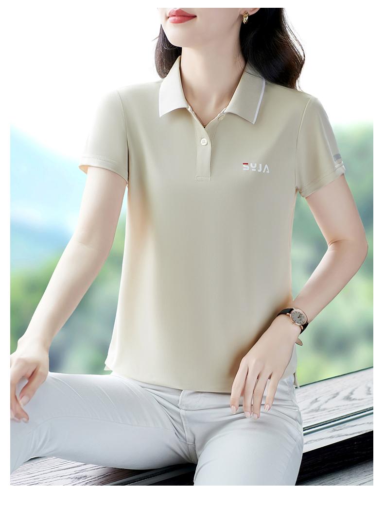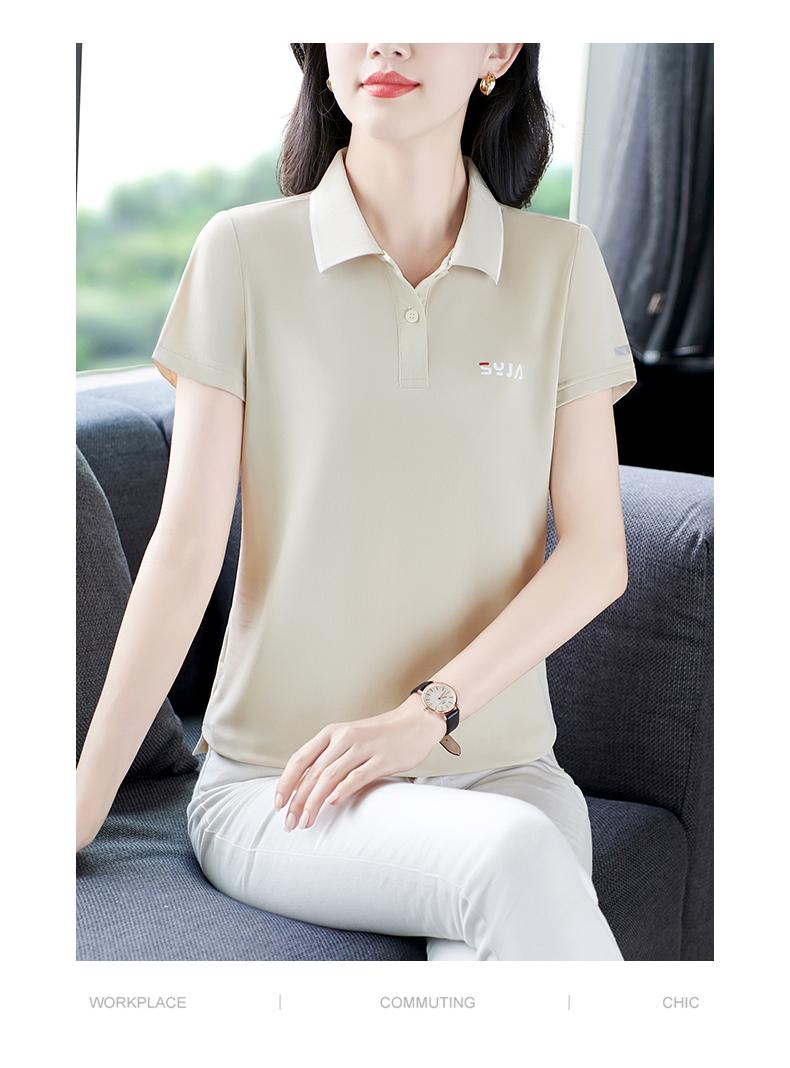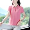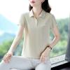 Playera de Manga Corta de Seda de Hielo de Alta Gama para Mujer Verano 2024 Nueva Versátil Holgada Polo de Madre Solapa Top Elegante a la Moda