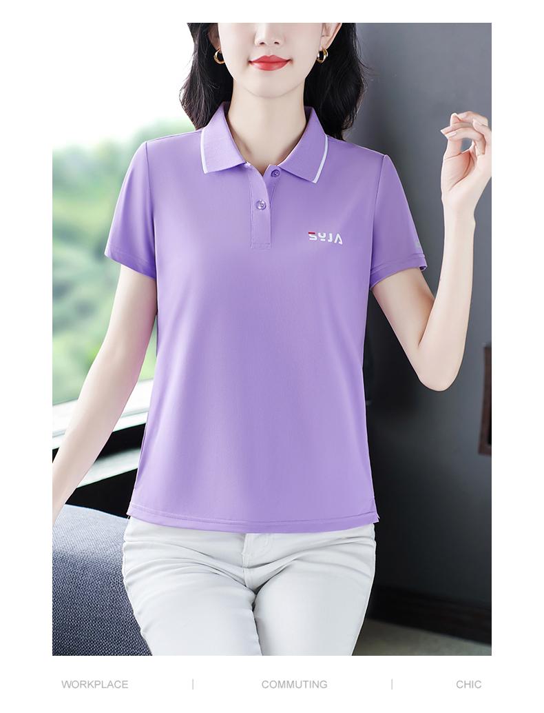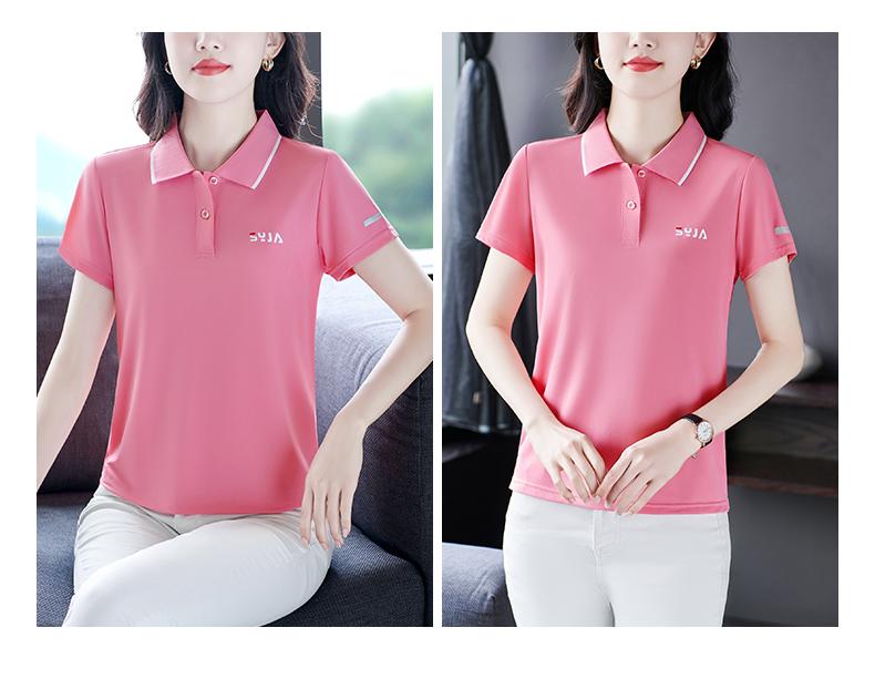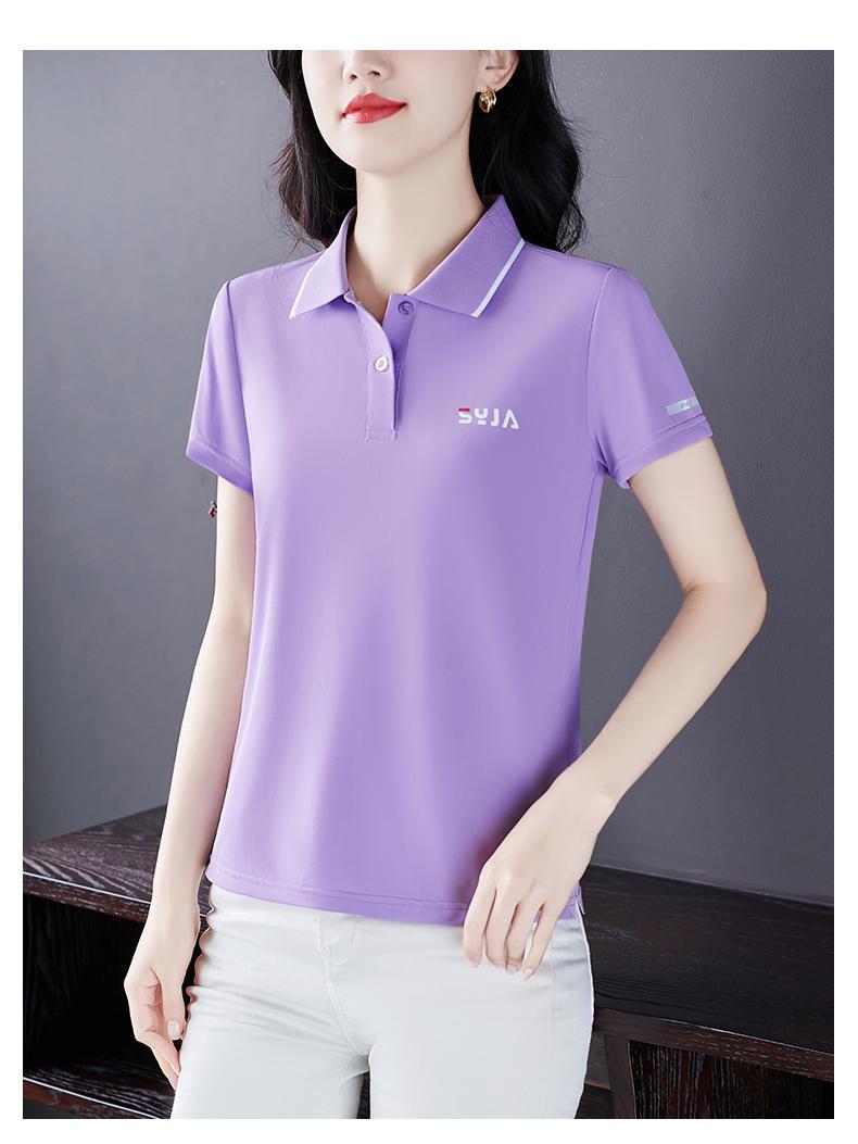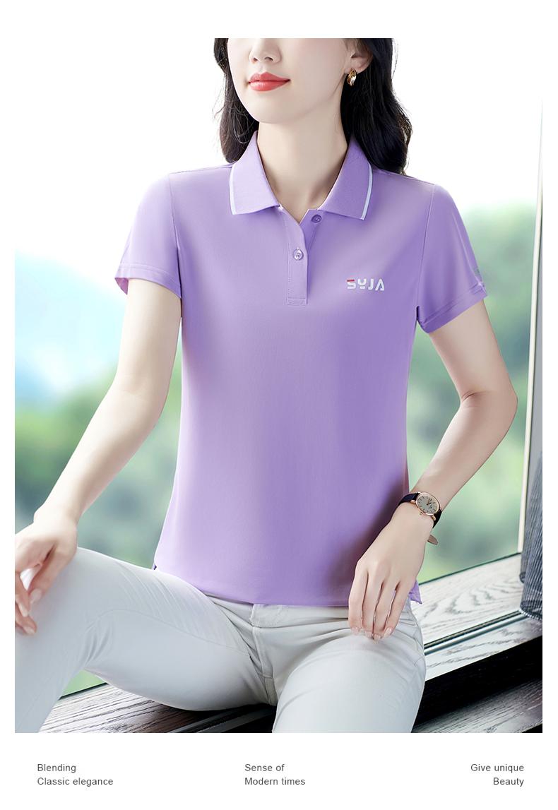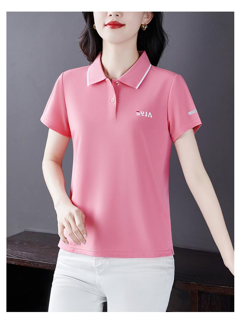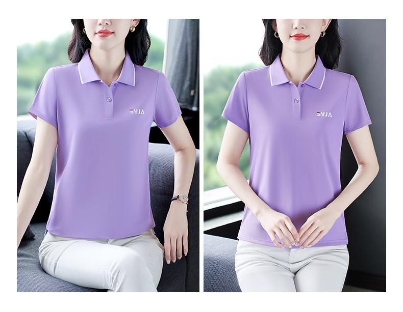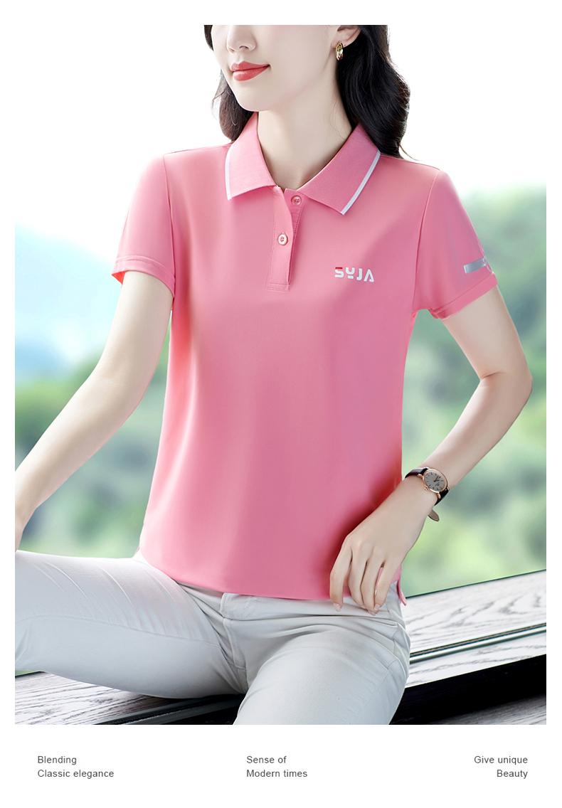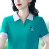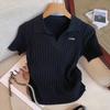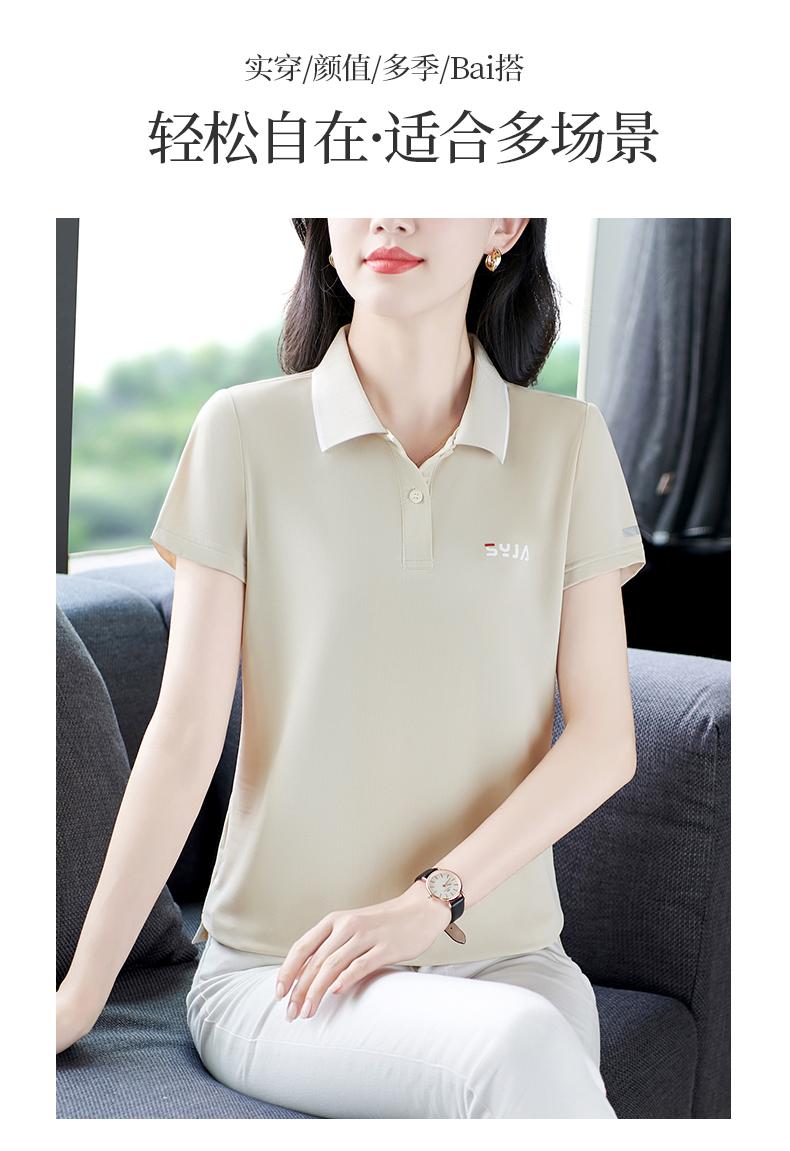 Playera de Manga Corta de Seda de Hielo de Alta Gama para Mujer Verano 2024 Nueva Versátil Holgada Polo de Madre Solapa Top Elegante a la Moda