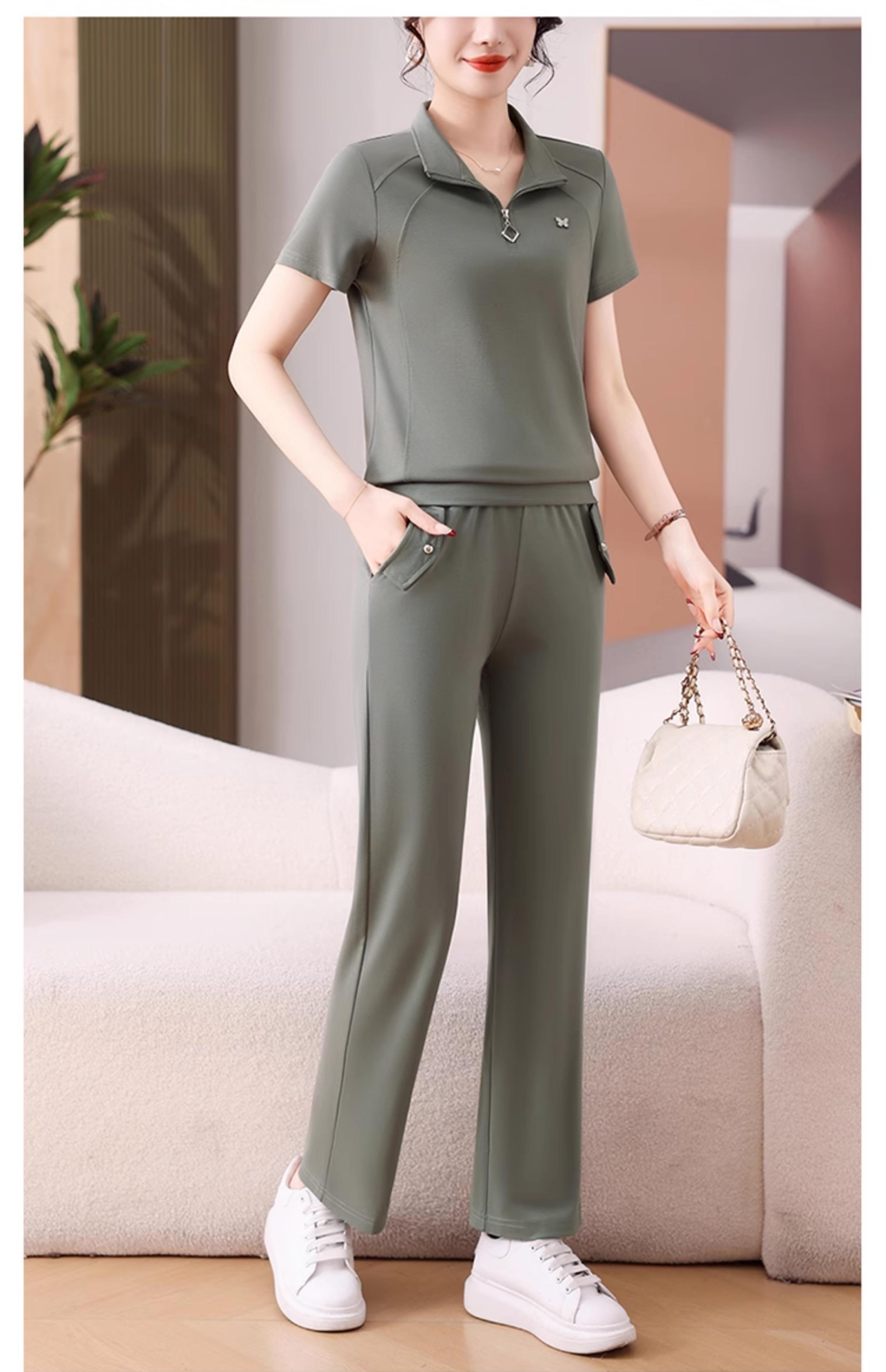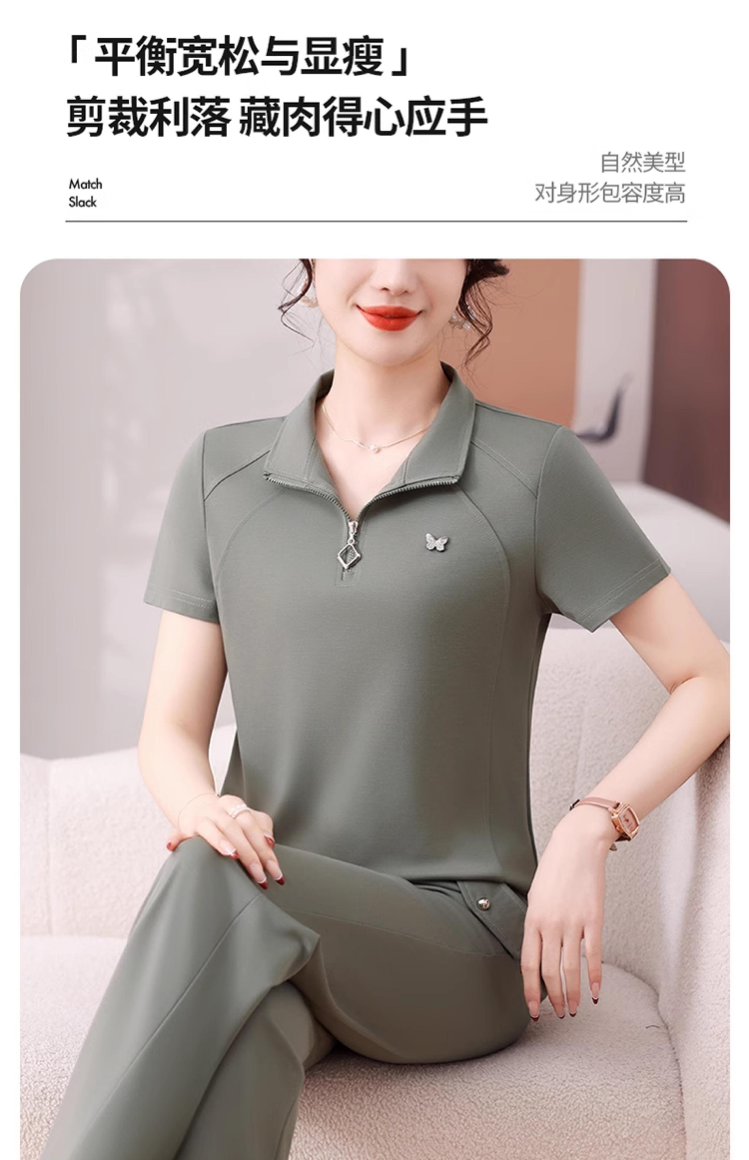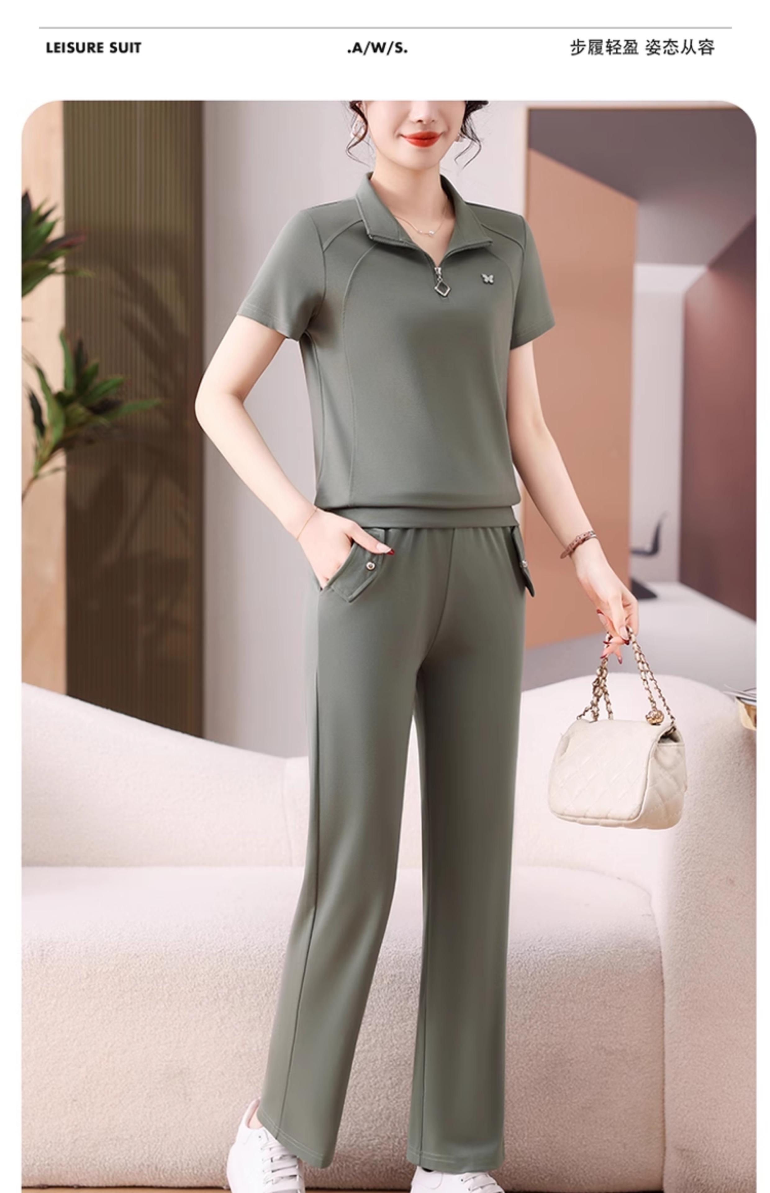 Traje deportivo para mujer 2025 Nuevo Verano Seda de Hielo Adelgazante Moda Traje para Correr Reductor de Edad Elegante Casual Conjunto de Dos Piezas Moderno