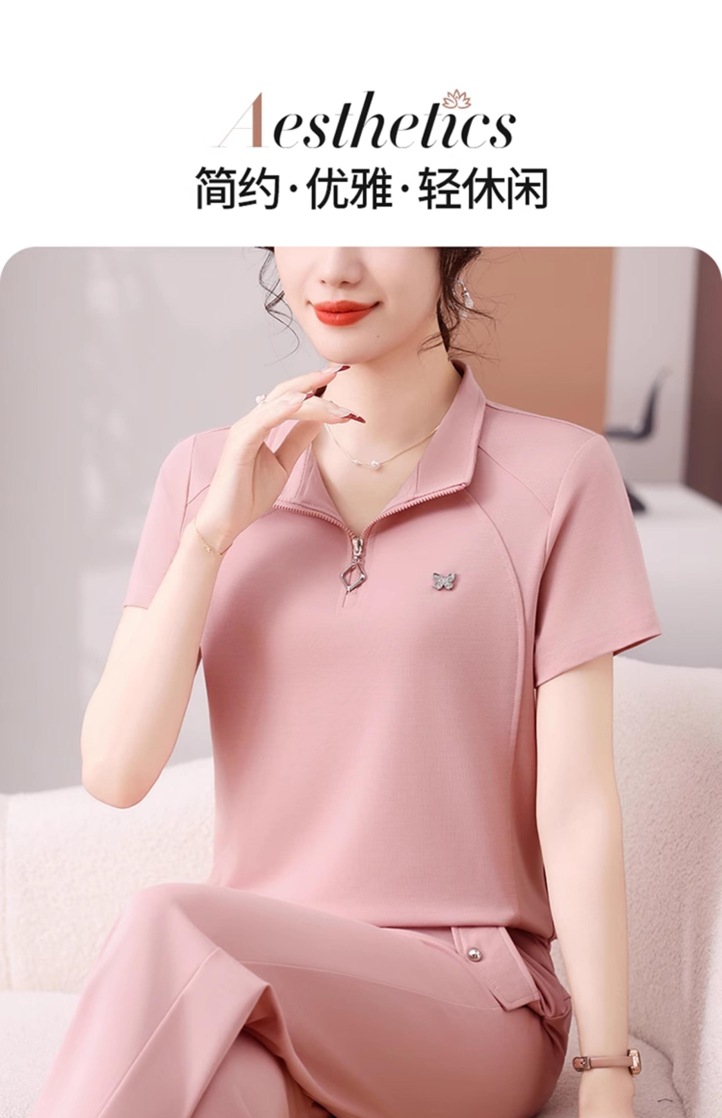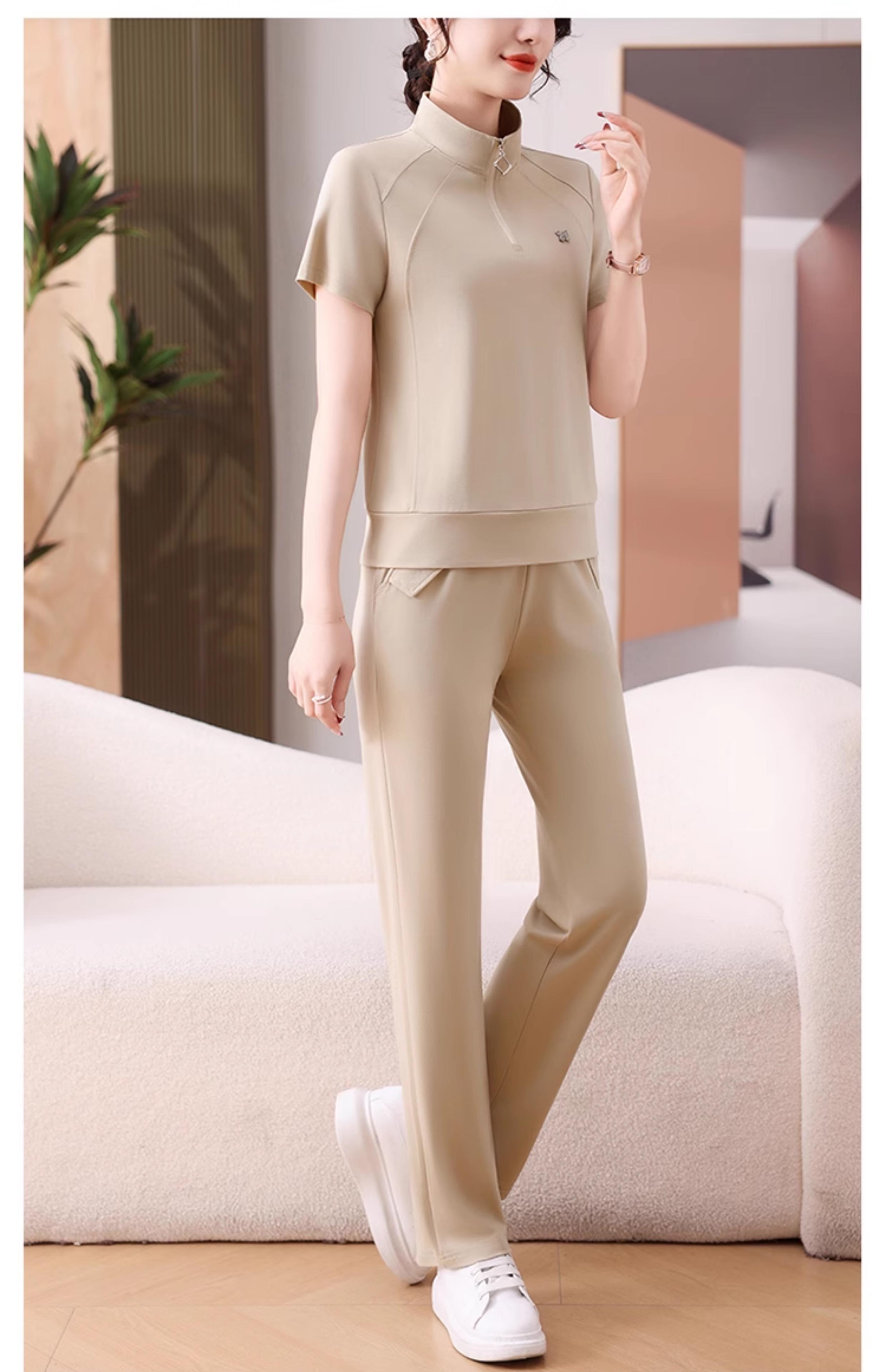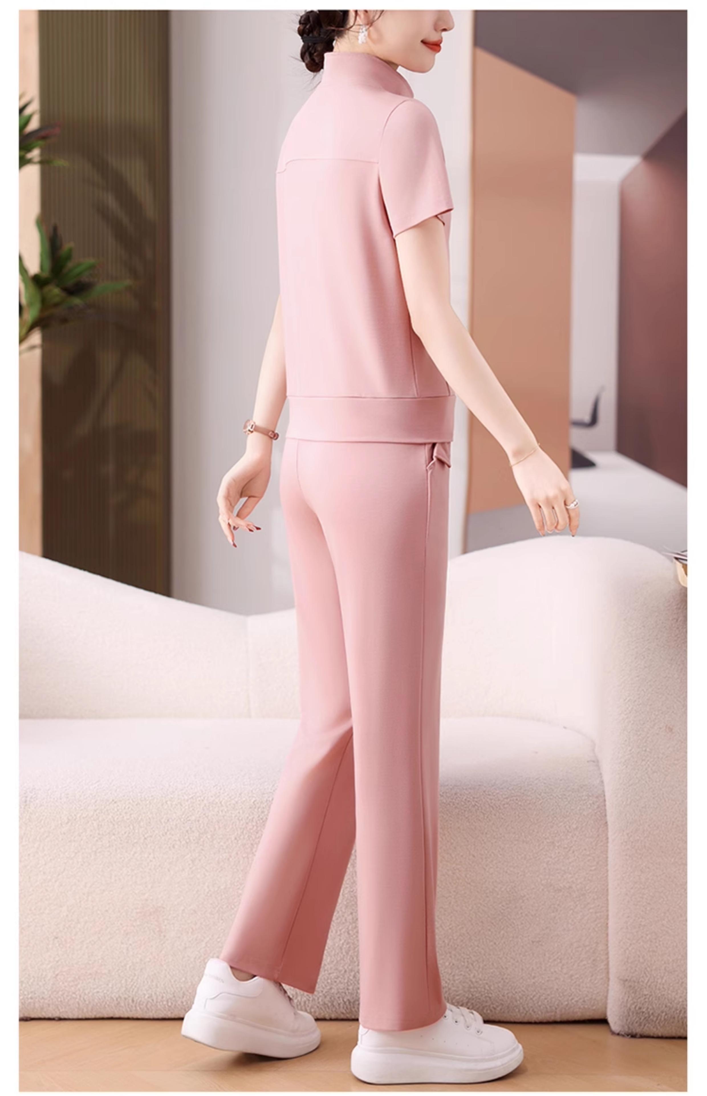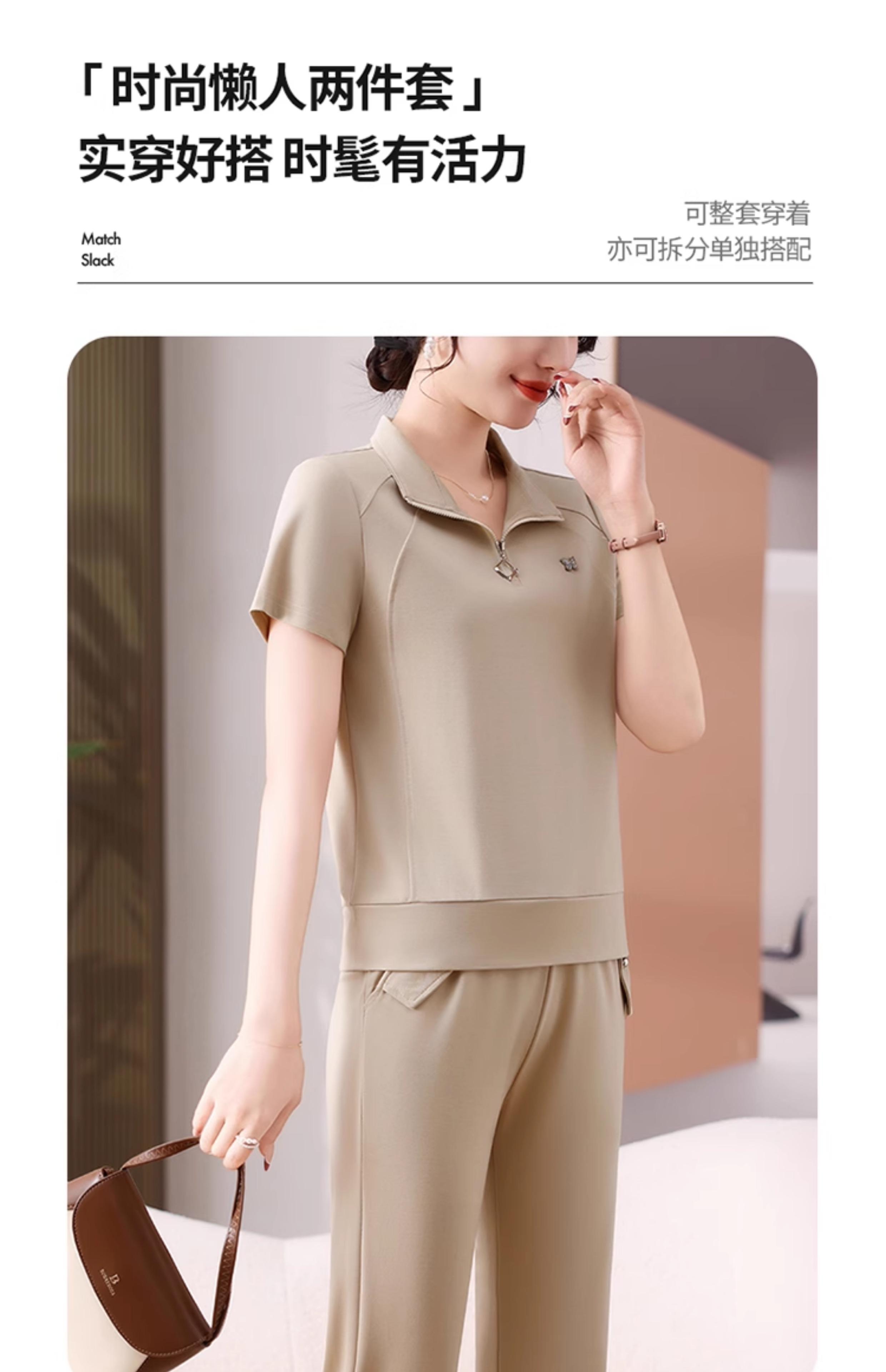 Traje deportivo para mujer 2025 Nuevo Verano Seda de Hielo Adelgazante Moda Traje para Correr Reductor de Edad Elegante Casual Conjunto de Dos Piezas Moderno