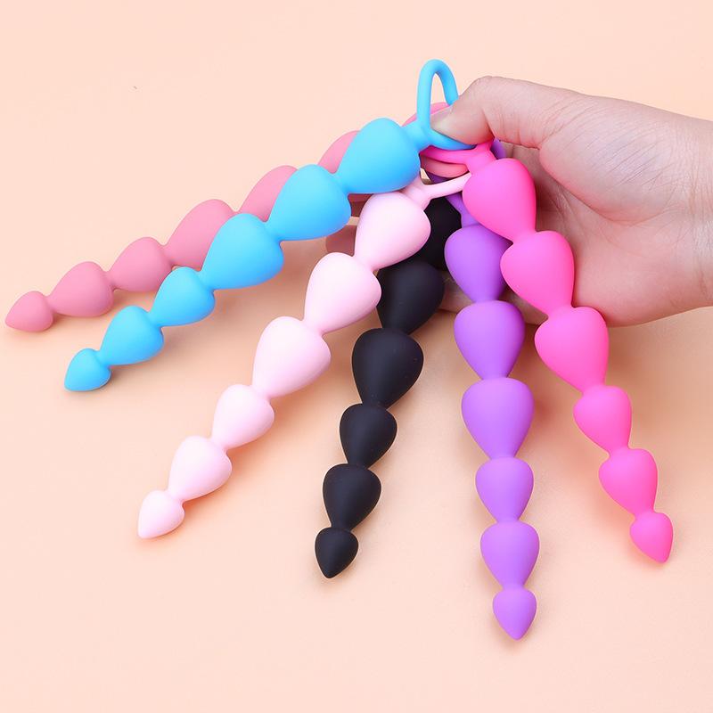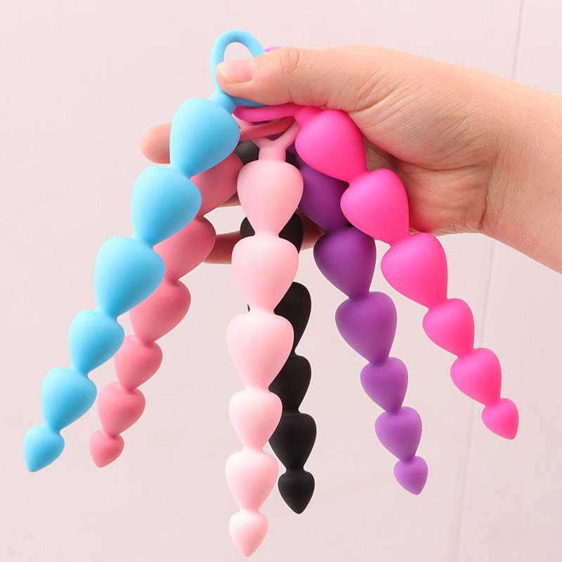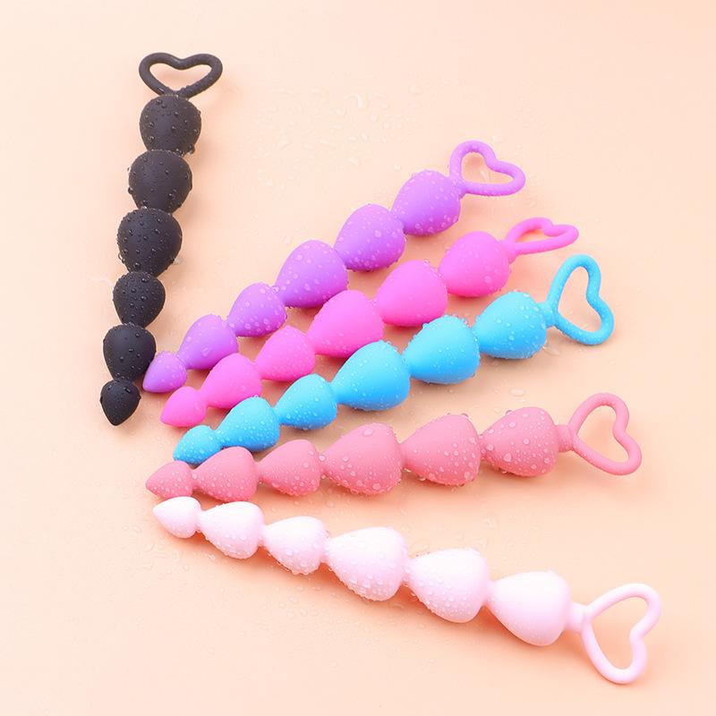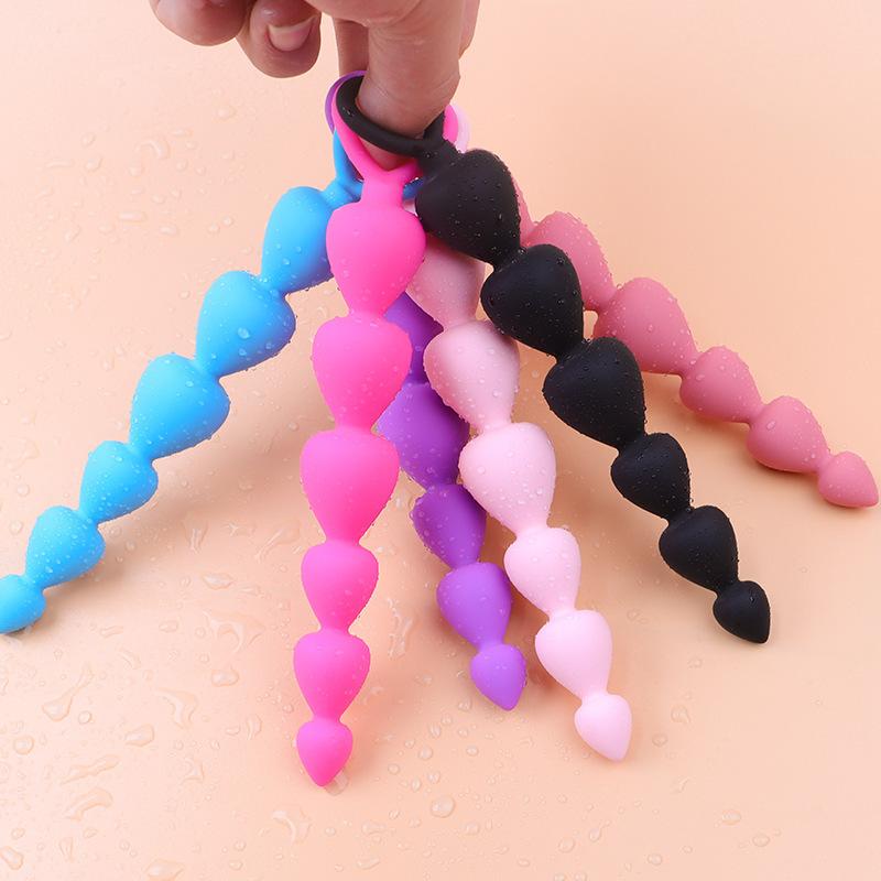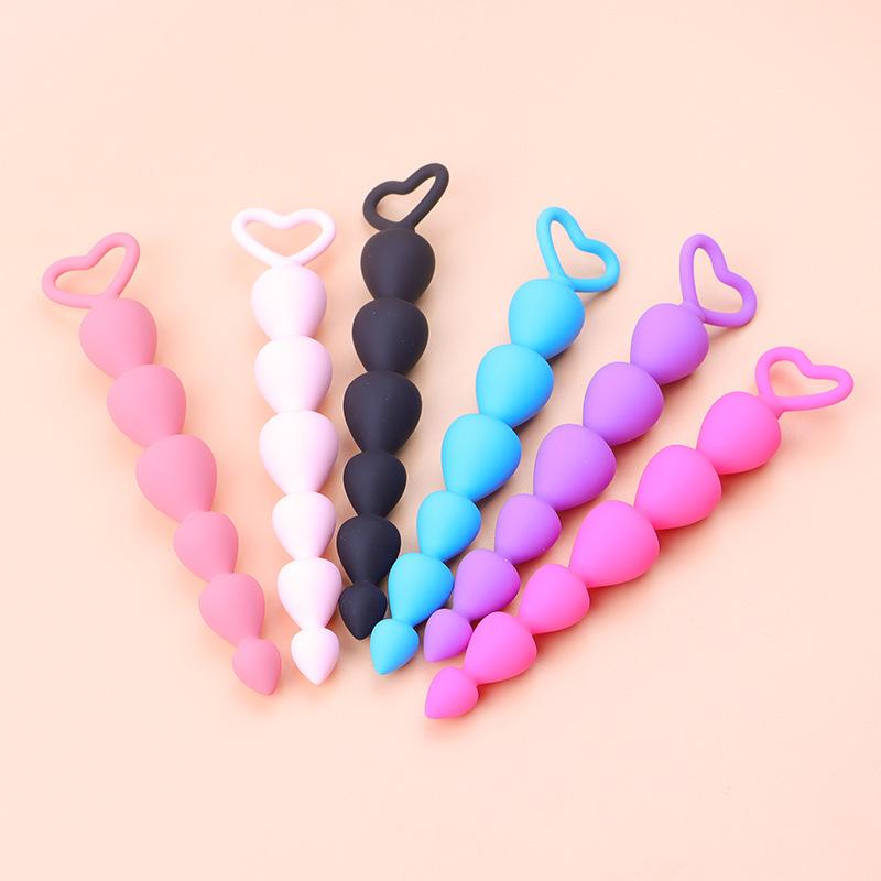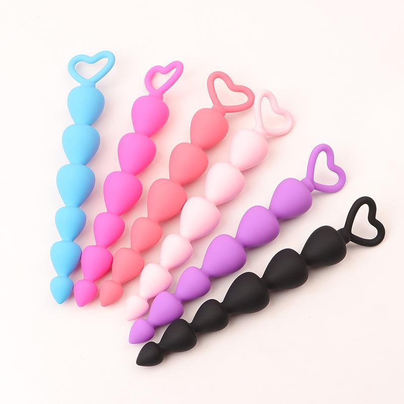 Yingfeini Tapón Anal de Cuentas de Silicona para Hombres y Mujeres, Seis Tapones Anales en Forma de Corazón de Durazno para Parejas, Juguetes Sexuales para Adultos
