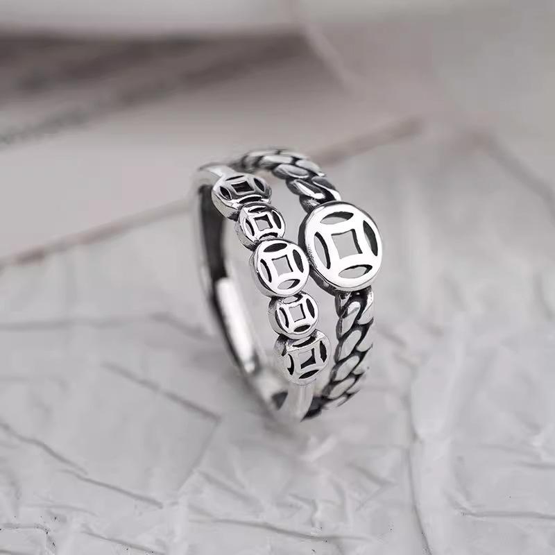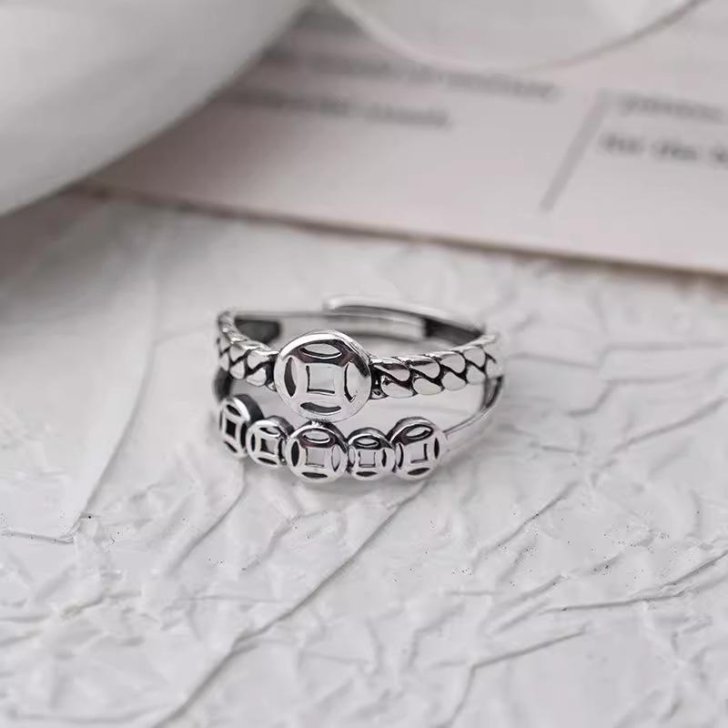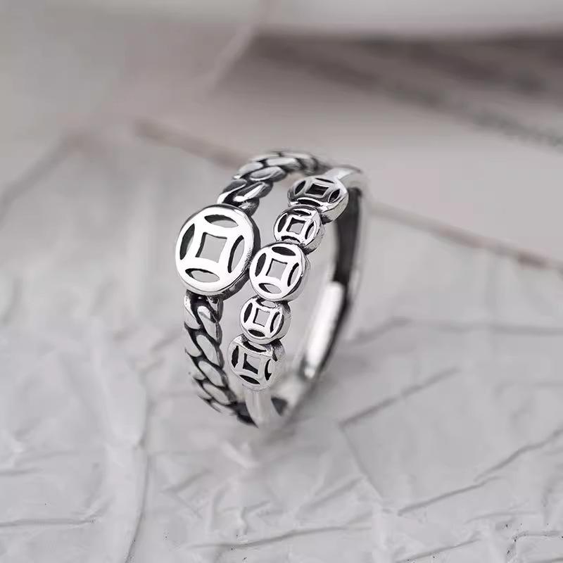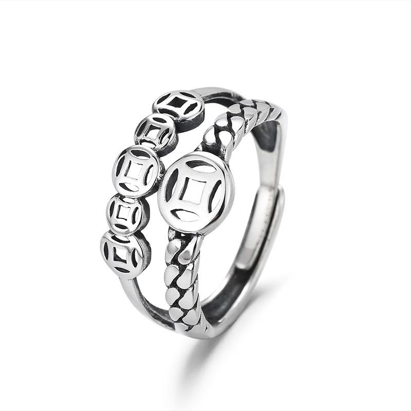 Anillo de Moneda de Doble Capa con una Tendencia Nacional, Estilo Vintage, Anillo Abierto de Moneda de Cobre de la Fortuna de la Suerte, Directo del Fabricante