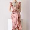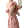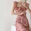 2025 Vestido de Verano para Mujer Estilo Pastoral Francés de Moda Temperamento Gentil con Volantes Ajustado Floral Cuello Cuadrado