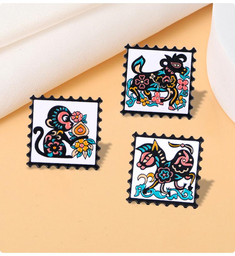 Broche Zodíaco Chino Original Dibujos Animados Tendencia Nacional Arte Sello Insignia Conmemorativa Ropa Metal Esmalte Pin Insignia Caballo