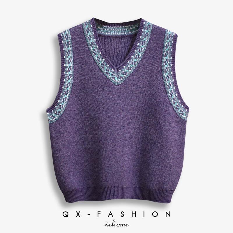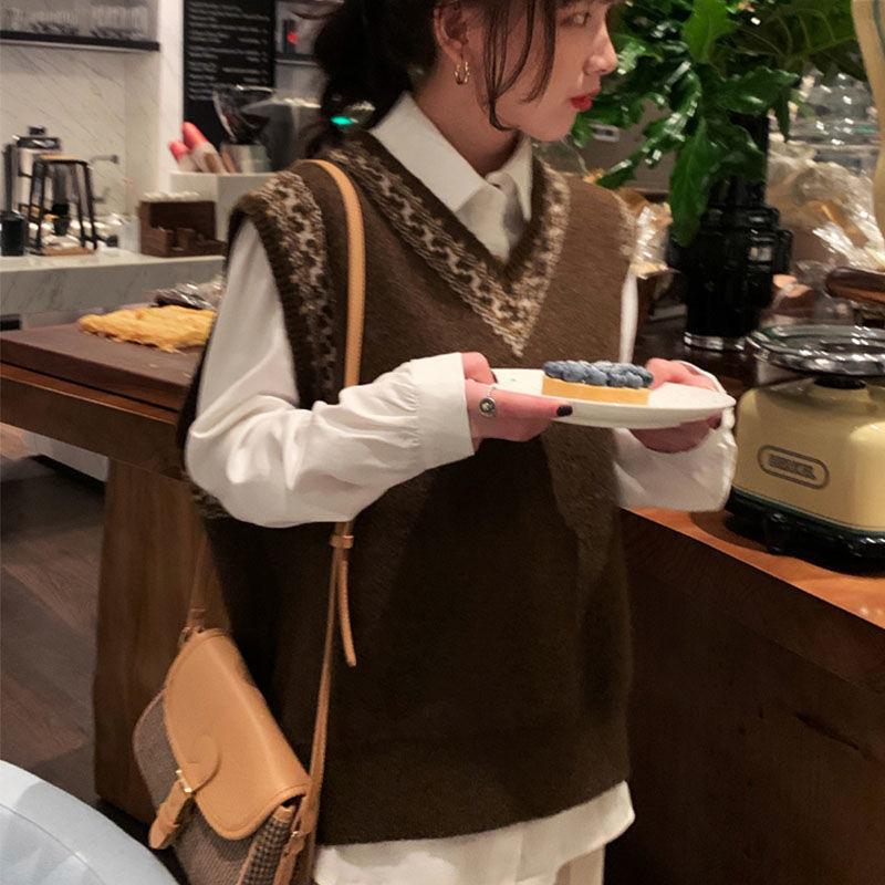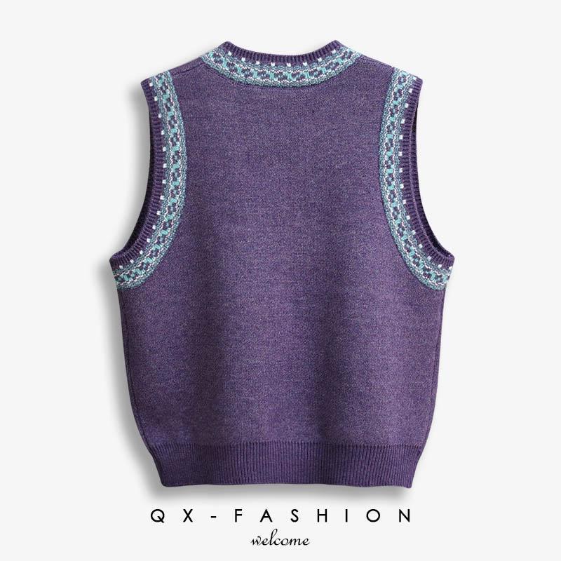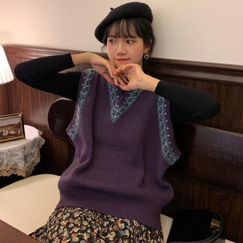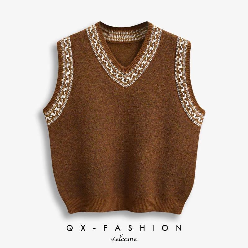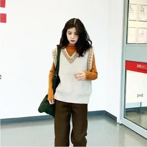 2023 Otoño e Invierno Nuevo Chaleco Suéter Mori Ganchillo Vintage Cuello en V Tejido Chaleco de Mujer Holgado Chaleco