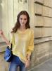 Europeo y Americano 2025 Primavera y Verano Nuevo Tejido de Punto de Color Puro con Cuello Redondo para Mujer Amazon Camisa de Aire Acondicionado Jacquard Calada de Manga Corta para Mujer