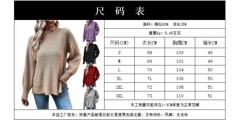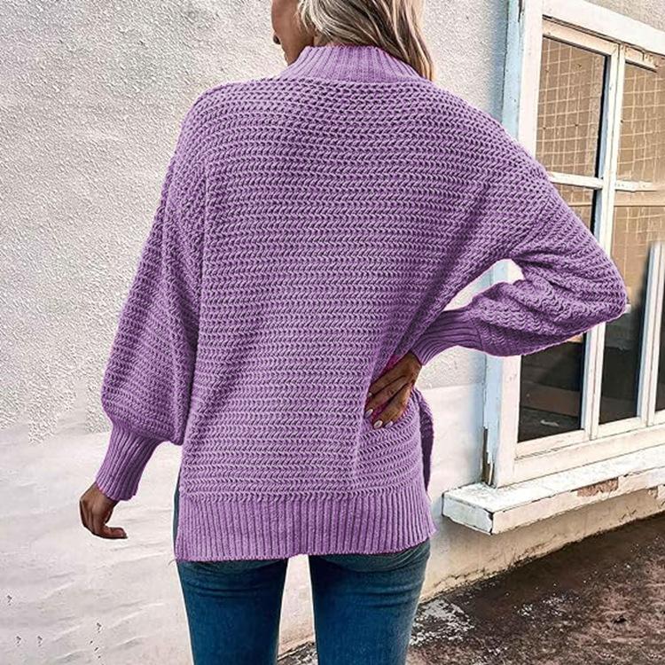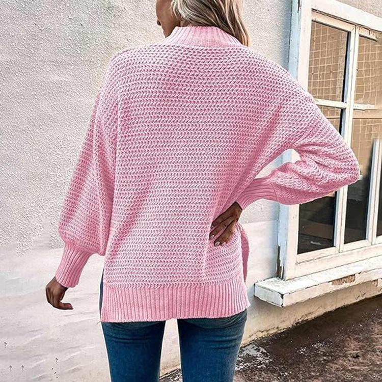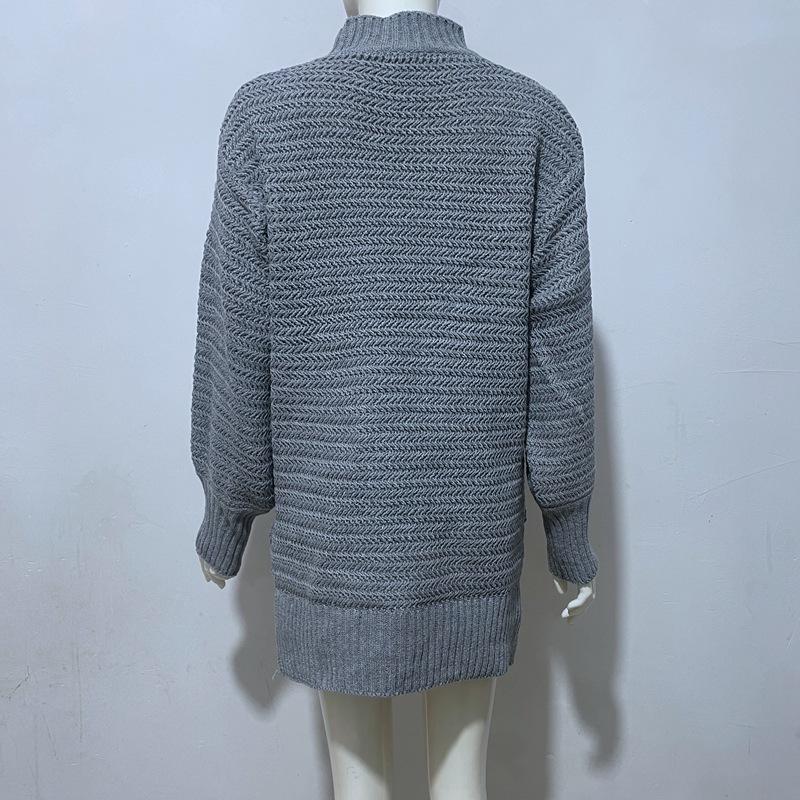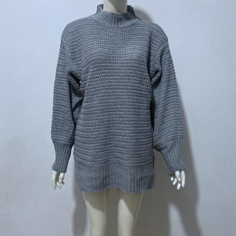 2025 Otoño e Invierno Nueva Ropa de Mujer para Exportación Amazon Nueva Ropa de Punto Cuello Alto Medio Abertura Suéter Holgado Tejido para Mujer
